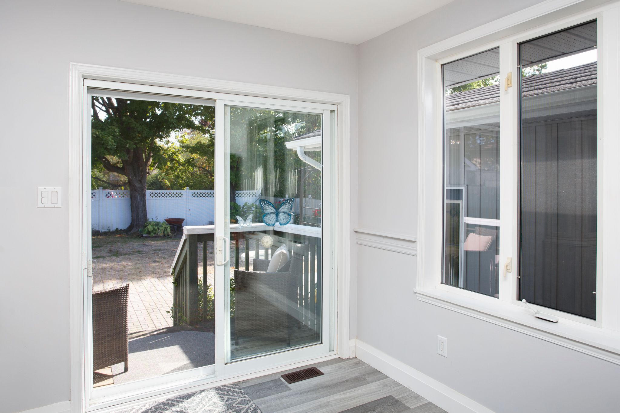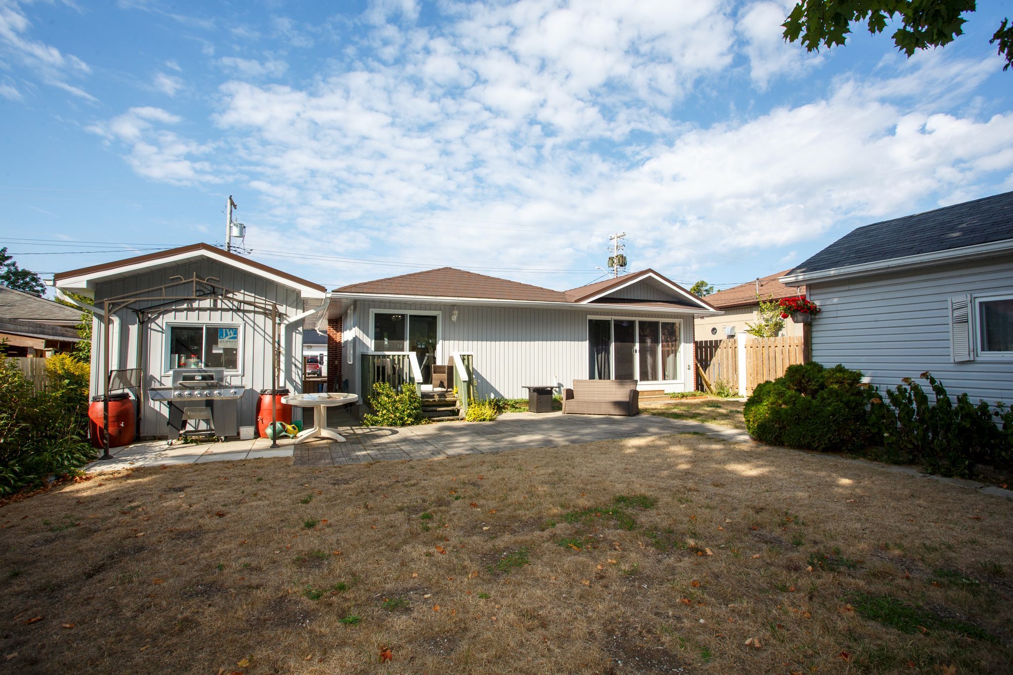 • Fully fenced backyard with two sets of patio doors for outdoor living.