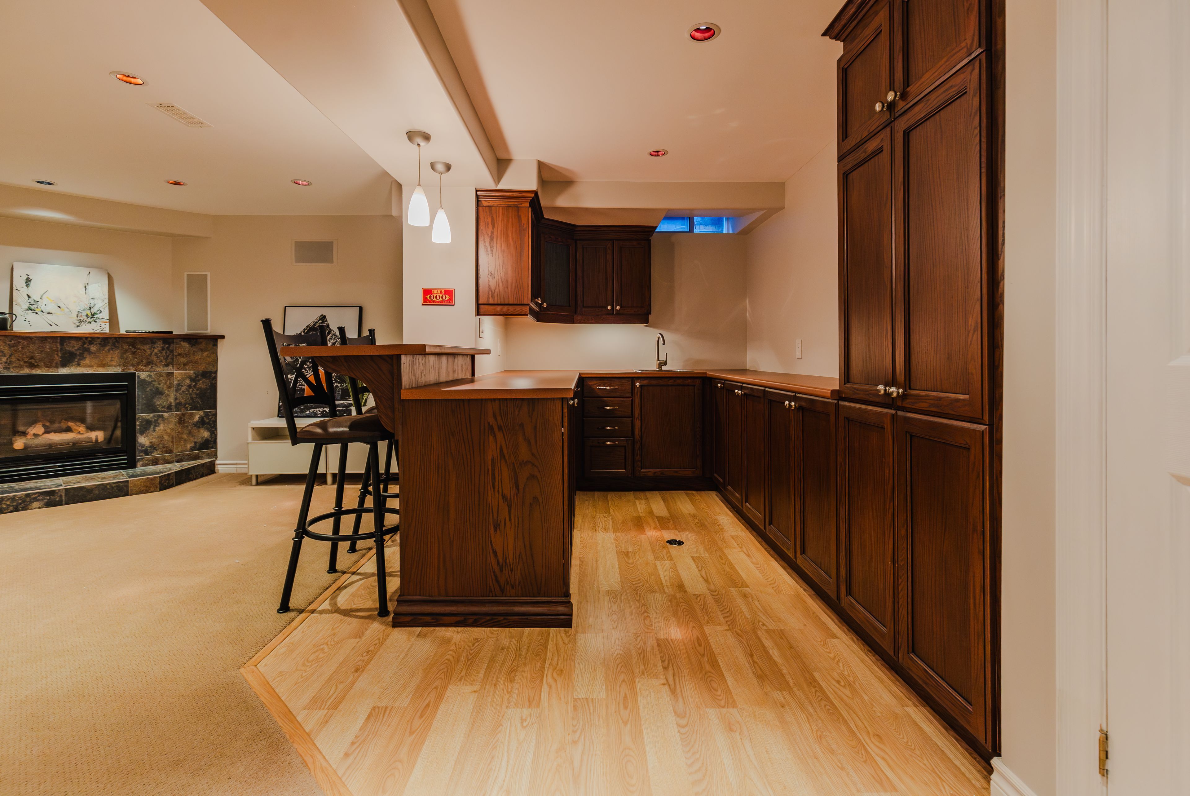 • Finished basement designed for fun, with a fireplace and versatile areas.