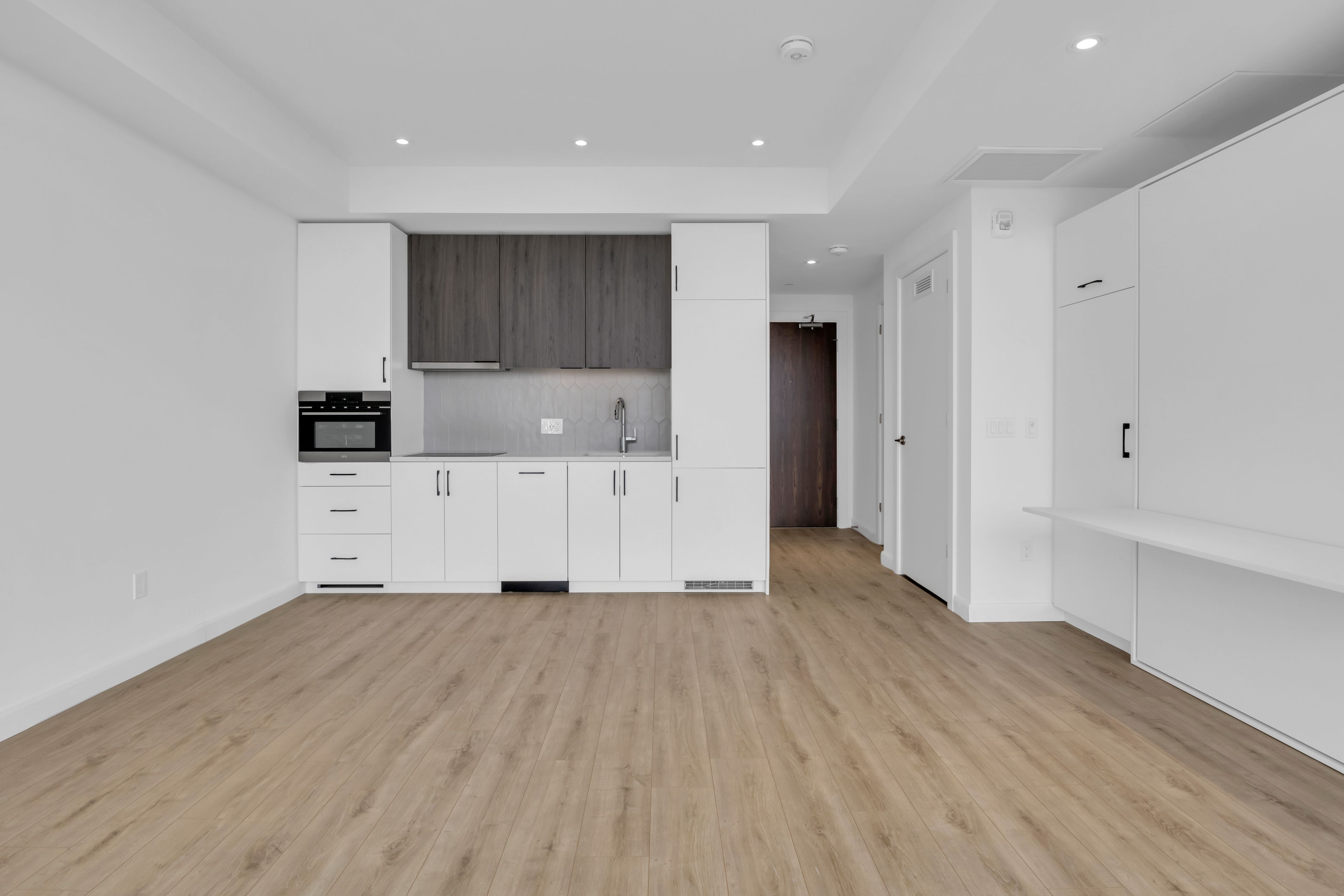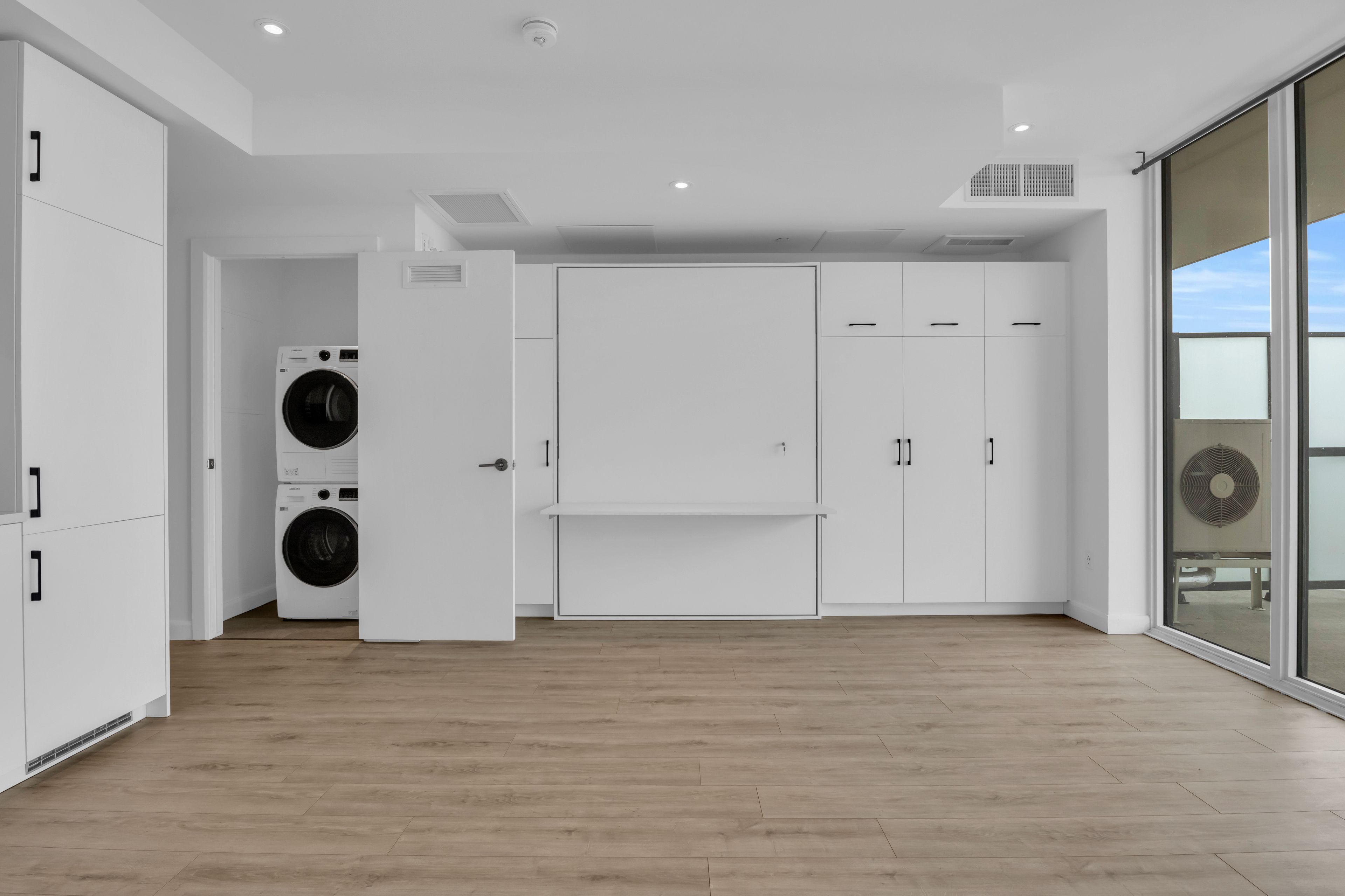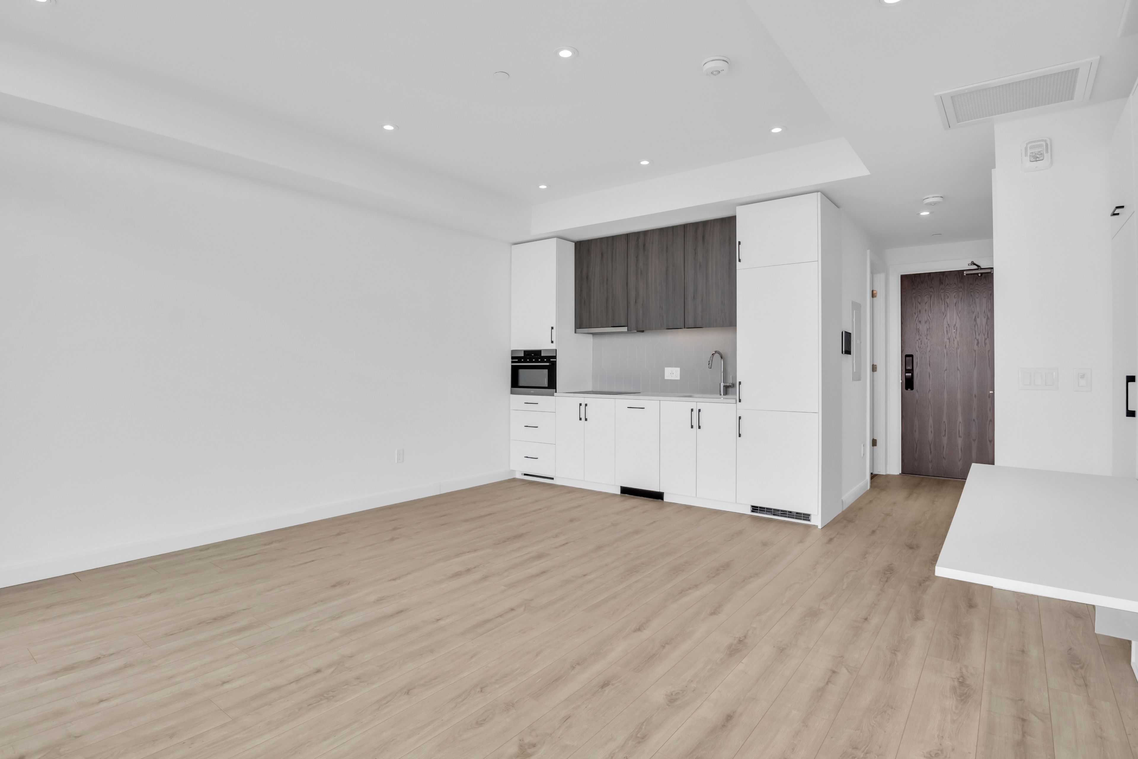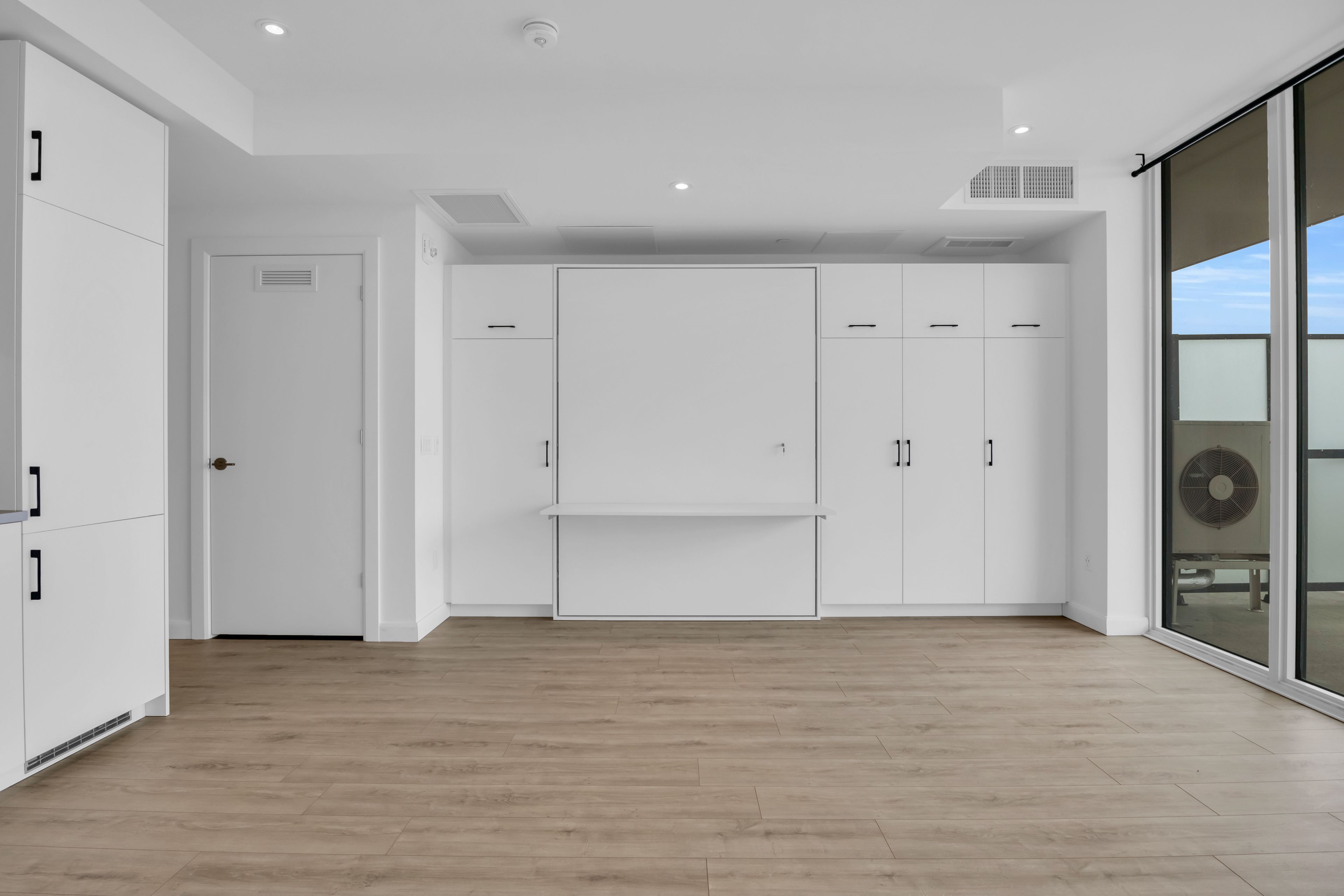 • Bright studio with open-concept layout and expansive windows for natural light.