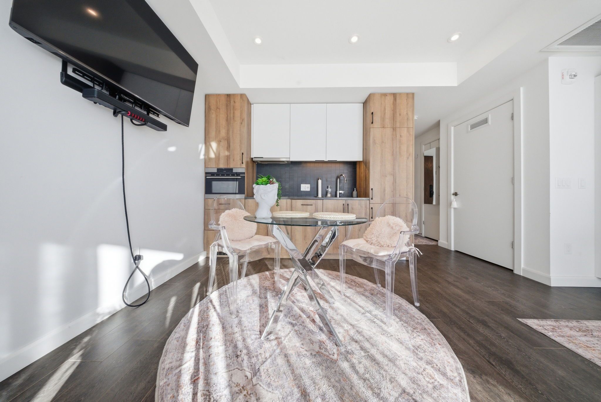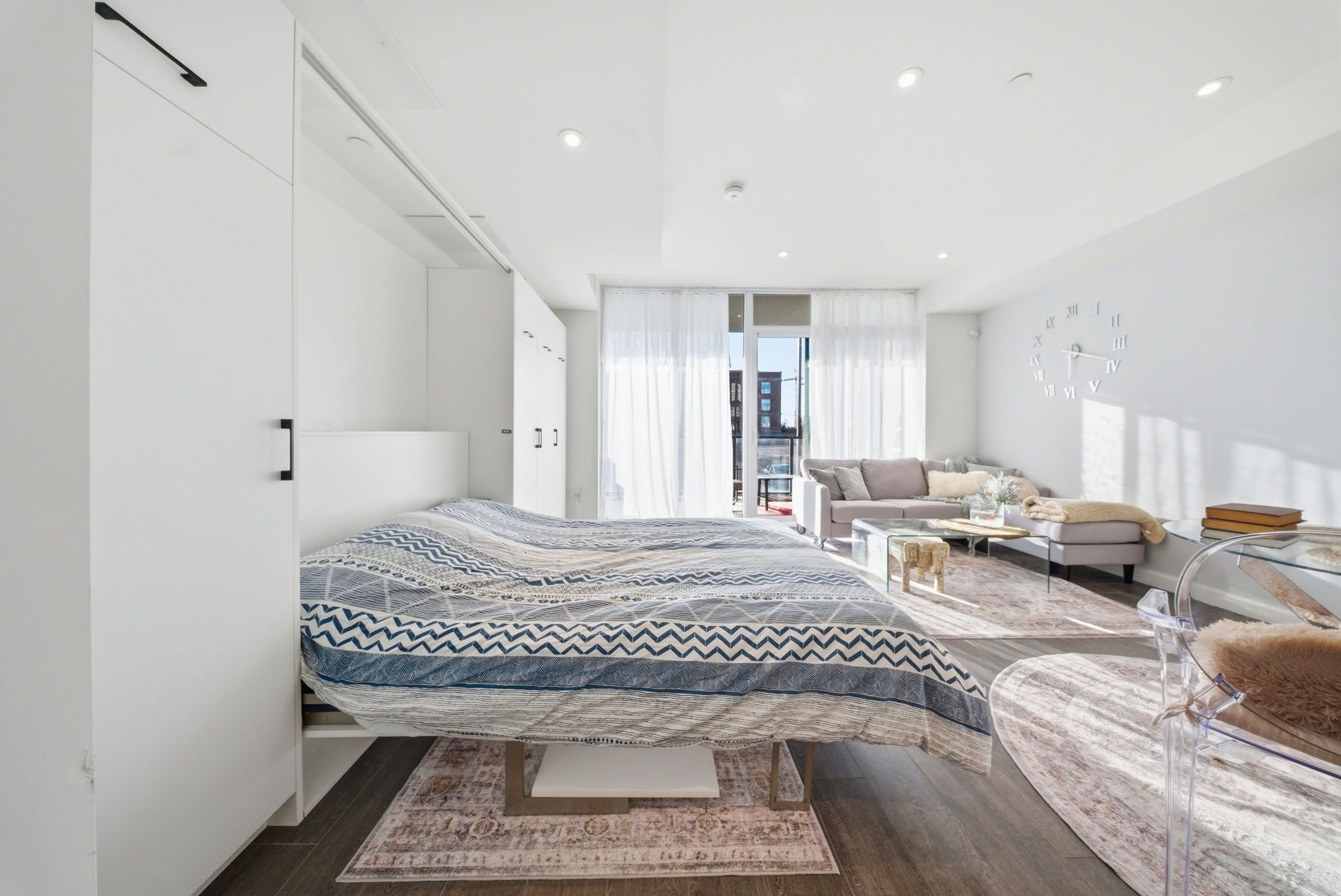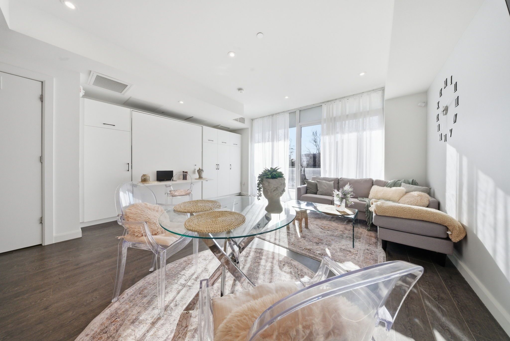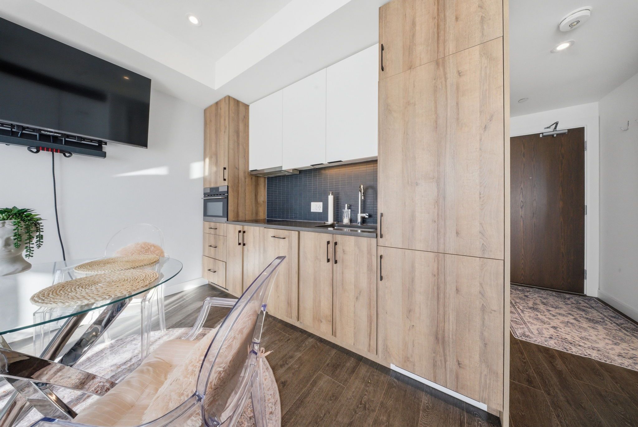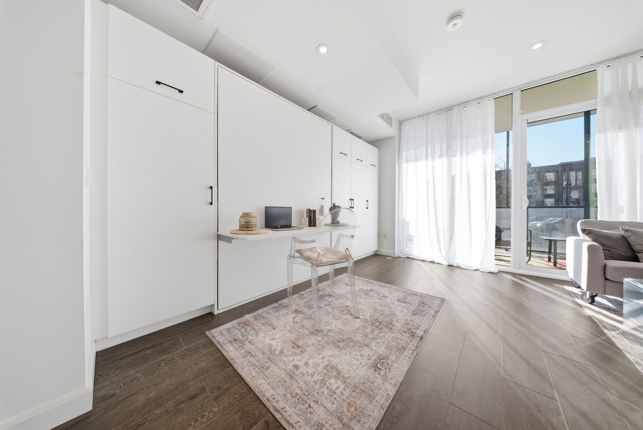 Steps from the university, shops, restaurants, and nightlife along king street, this location makes day-to-day living easy and convenient. This 475 sq ft studio apartment at 741 king st w #107 stands out from the others in the building thanks to its main floor position, higher ceilings, and west-facing exposure from the large open balcony. The extra ceiling height makes the space feel more open, and you'll get great natural light with sunsets right from your unit. The layout is simple and functional, featuring a murphy bed that lets you easily switch between a sleeping area and a more open living space. It's a great setup for making the most of every square foot. This unit features a high end, modern bathroom with a practical layout that fits well with the rest of the unit. The building includes a number of amenities, and with everything close by, it's a solid option for students, professionals, or investors looking for something a bit different from the typical units in the building.