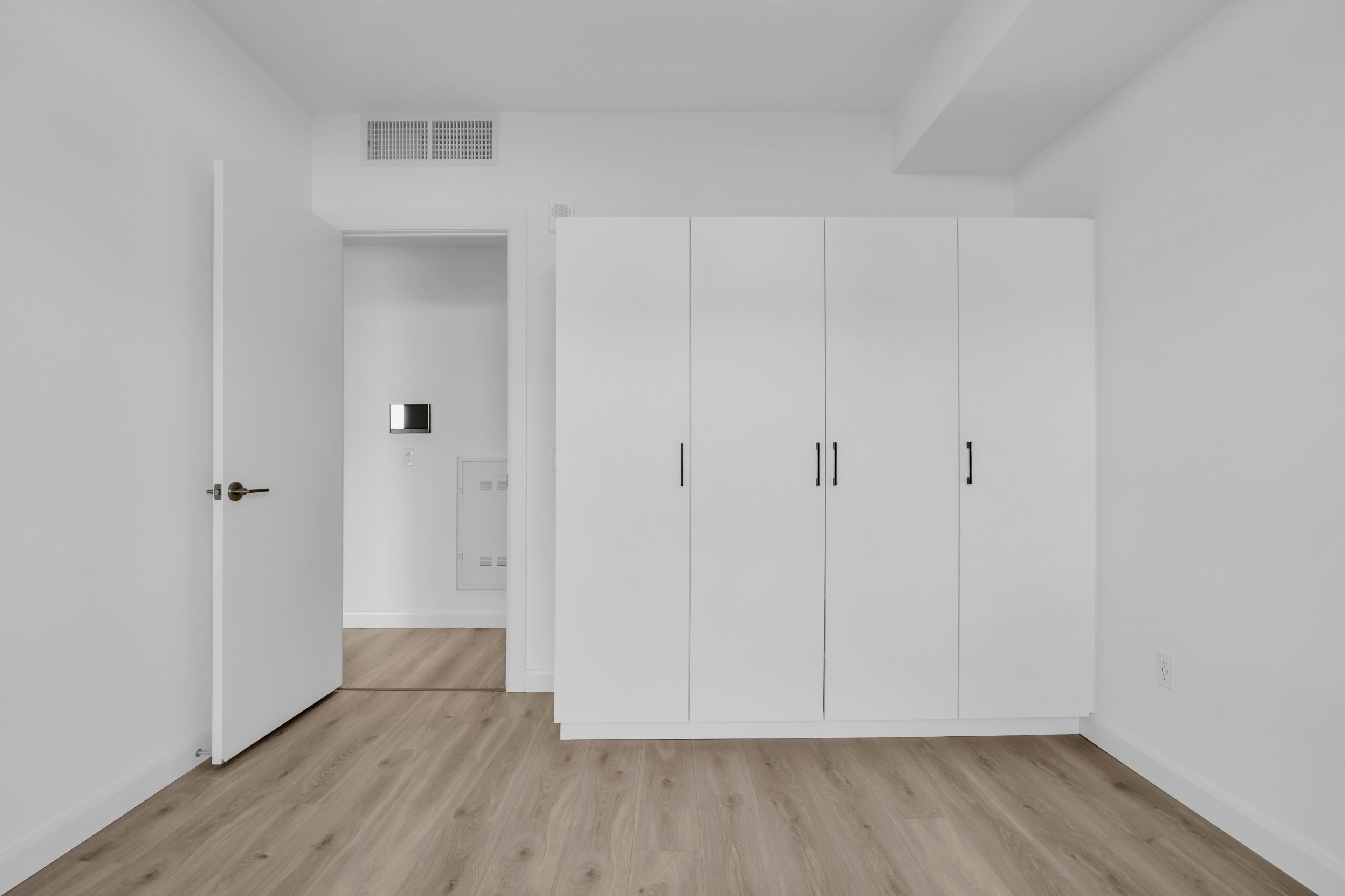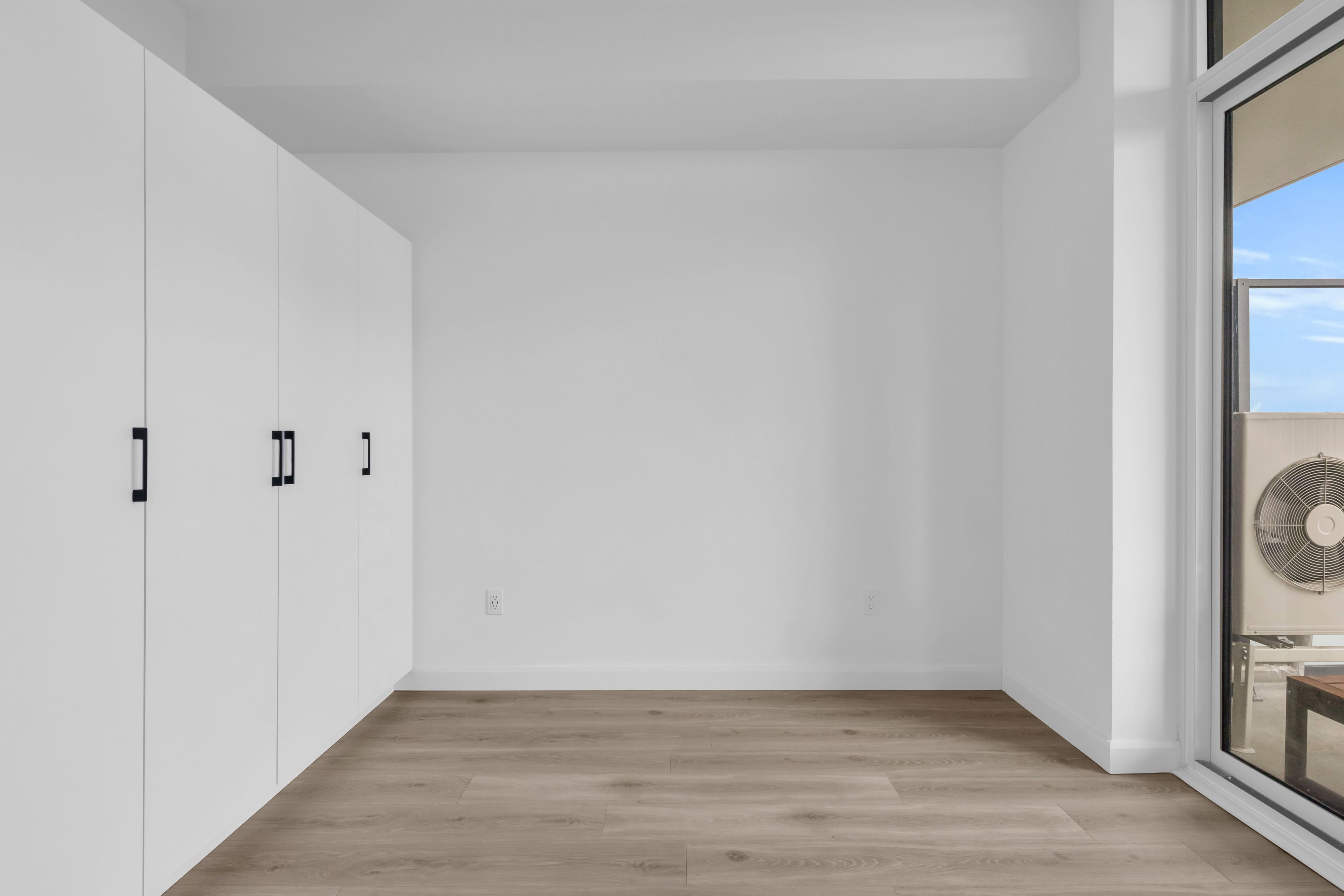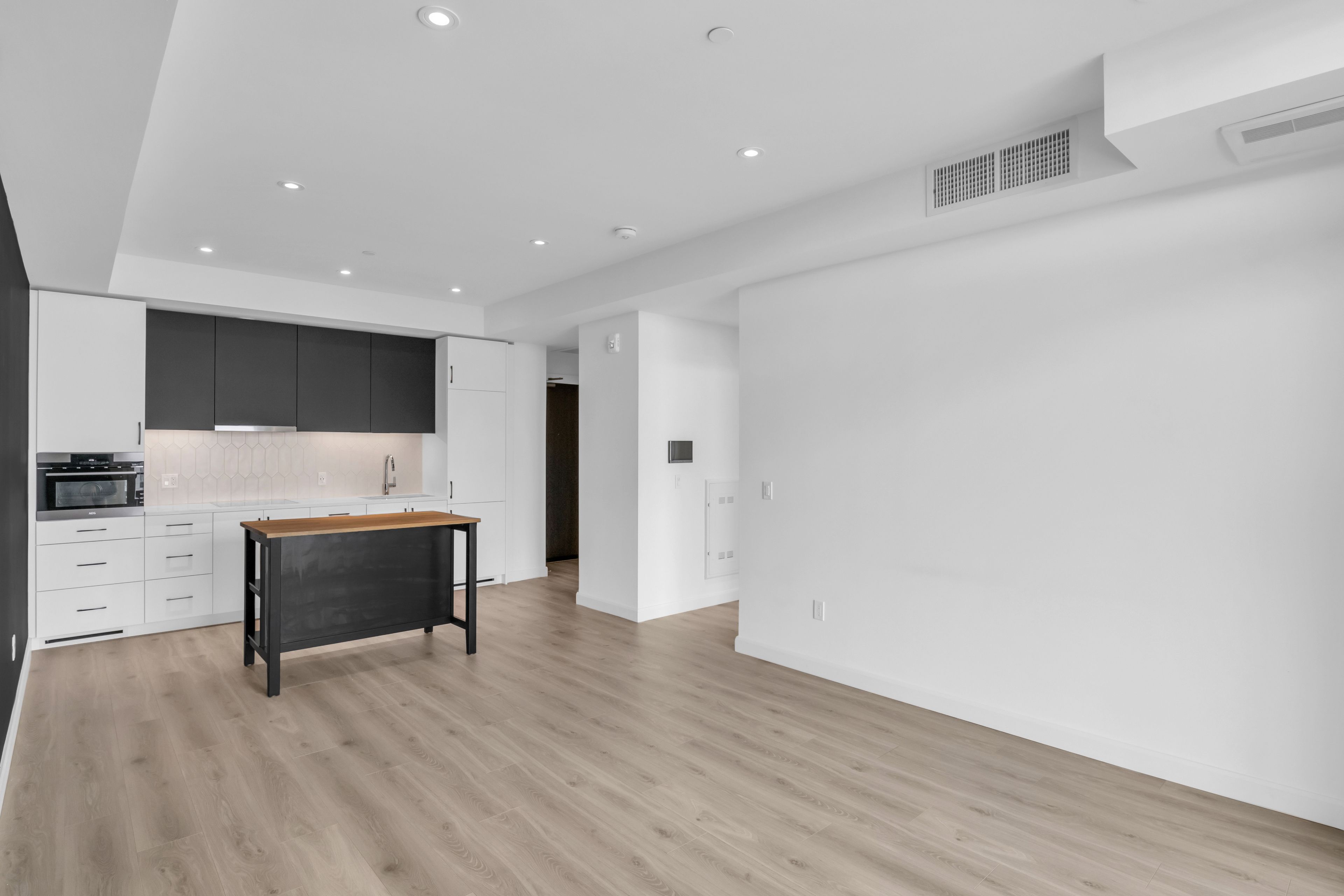 • Bright one-bedroom unit with high ceilings and large windows for natural light.