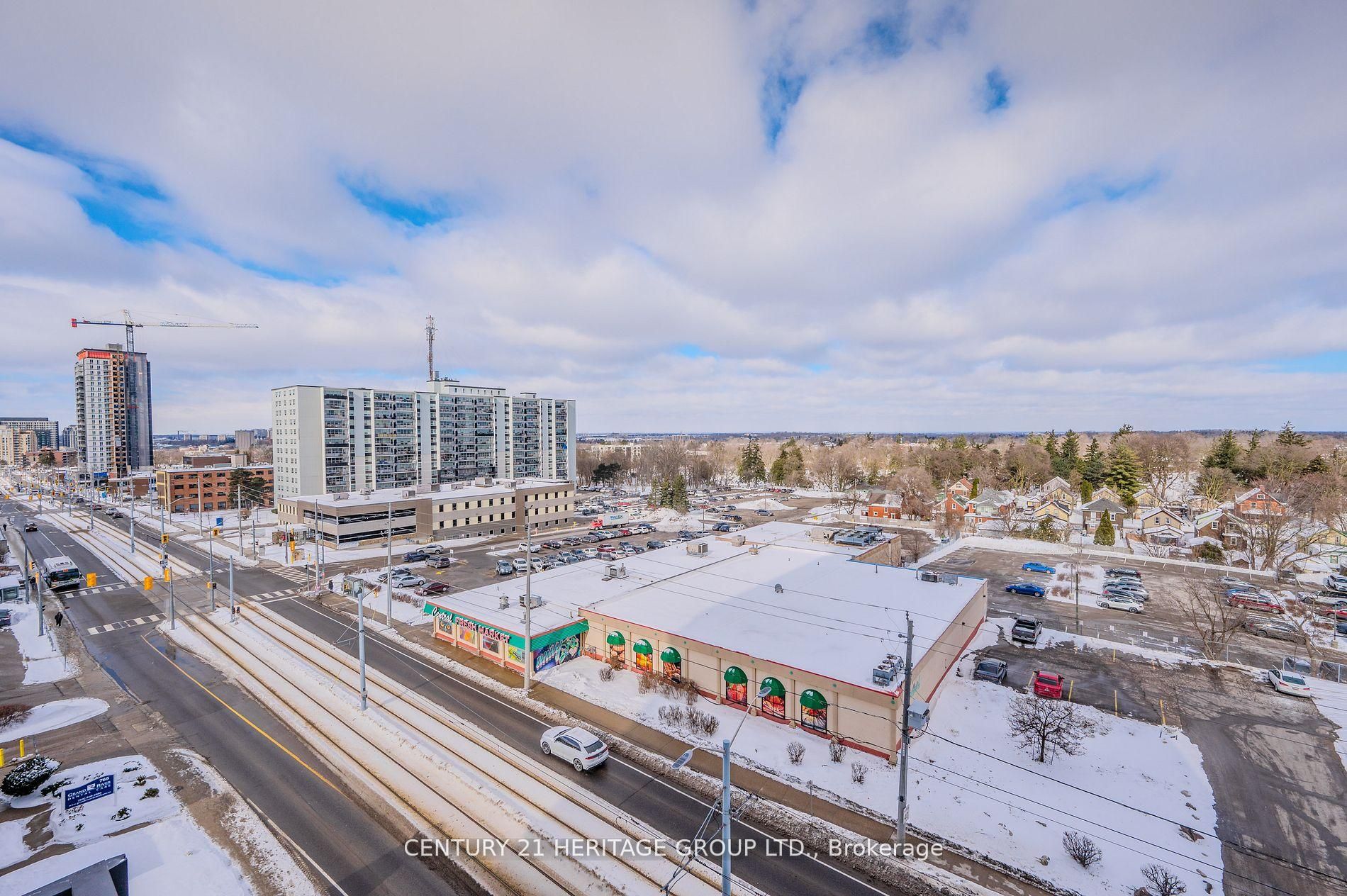 Welcome to this stylish 1-bedroom, 1-bath condo featuring a massive 200 sq. Ft. Balcony withdual access, overlooking king street while offering excellent privacy with no neighbouringsightlines into the living space. Floor-to-ceiling doors and windows flood thisstate-of-the-art, european-inspired suite with natural light. The open-concept kitchen andliving area showcase modern built-in appliances, quartz countertops, in-suite washer and dryer,and ample space for both entertaining and everyday living. Smart in-home technology isintegrated throughout the unit, allowing control of suite features via mobile app orwall-mounted touchscreen. The bathroom includes a glass shower and in-floor heating. Residentsenjoy premium amenities including sauna, lounge, rooftop deck, bbq area, and party room, alongwith abundant visitor parking, bike storage, and expansive outdoor terrace with communal diningand lounge areas. Ideally located in the heart of kitchener, steps to shopping, dining, andentertainment. Easy transit access to the university of waterloo and wilfrid laurieruniversity, situated along the ion lrt line connecting waterloo, kitchener, and cambridge, withquick access to major highways. Immediate possession available. This unit will not last.
