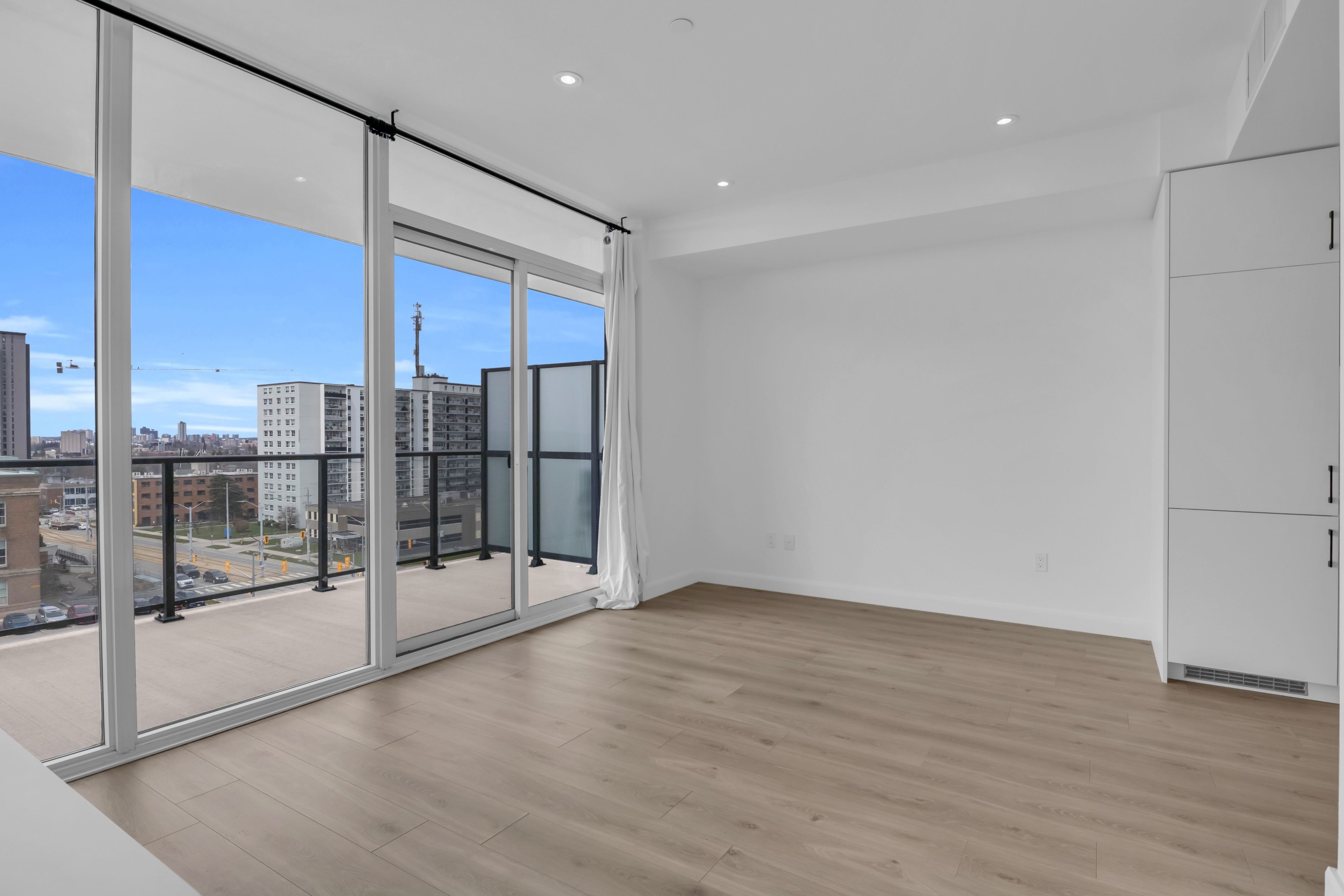 Welcome to this thoughtfully designed studio at 741 king st w, one of kitchener's newest condominium addresses and a genuinely exciting place to call home. From the moment you walk in, the oversized windows make an impression, filling the space with natural light and creating an open airy feel that's hard not to love. The modern kitchen is laid out for real functionality, and in suite laundry adds the everyday convenience you actually want. The heated bathroom floor is a standout touch, and your own large private terrace gives you outdoor space that most studios simply don't offer. The building runs on the incharge system platform, a high tech smart building infrastructure that puts control and efficiency at your fingertips. When it comes to amenities, this one is hard to beat. Residents enjoy the hygge lounge, complete with a library, café, cozy fireplaces, and relaxed seating areas, a space designed for unwinding. The outdoor terrace takes things further with two saunas, a communal dining table, lounge seating, an outdoor kitchen and bar, and trellis shade coverings. Bike storage and a dedicated repair station are on site, and visitor parking is available. Every parking space is ev ready through a partnership with chargepoint, with separate metering. Situated directly along the lrt route, getting around the city is a breeze. Whether you are a first time buyer looking to enter the market, an investor seeking a strong rental opportunity, or a parent looking for a smart housing option for a student attending the university of waterloo or wilfrid laurier, this one checks a lot of boxes. Parking options are available.