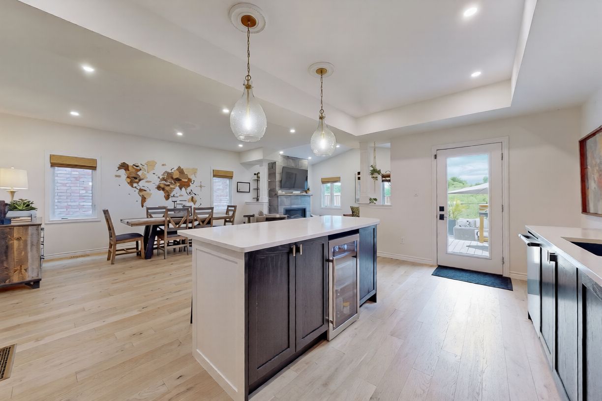 Welcome to 741 sawmill... A beautifully renovated executive two-storey brick home in peterborough's highly sought after heritage park neighbourhood. Immaculate and truly move-in ready, this residence offers modern luxury living in one of the north end's most desirable communities. Over $100k has been invested in premium upgrades throughout. The open concept living and dining area features a vaulted ceiling and a stunning floor-to-ceiling electric fireplace ($20k) that serves as a striking focal point. The designer kitchen is built for entertaining, showcasing an oversized quartz island with built-in beverage fridge, walk-in pantry, and extensive pot lighting throughout the home ($20k). The partially finished basement includes a bedroom and three-piece bathroom, providing flexible space for guests or extendedfamily. Outside, enjoy professionally completed landscaping and a new fully fenced back yard backing onto a peaceful green belt, offering privacy and a beautiful natural setting. Located near excellent schools, parks, and trails. This home reflects exceptional pride of ownership and delivers executive-style living in one of peterborough's finest neighbourhoods.