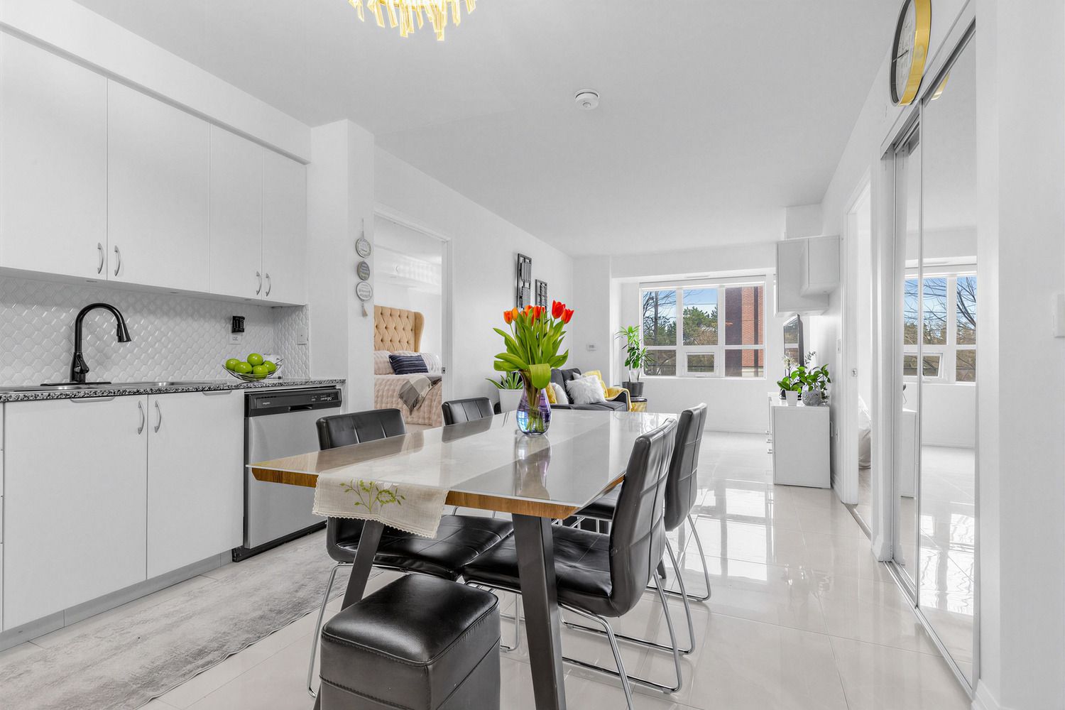 • Modern kitchen with in-suite laundry for convenience.