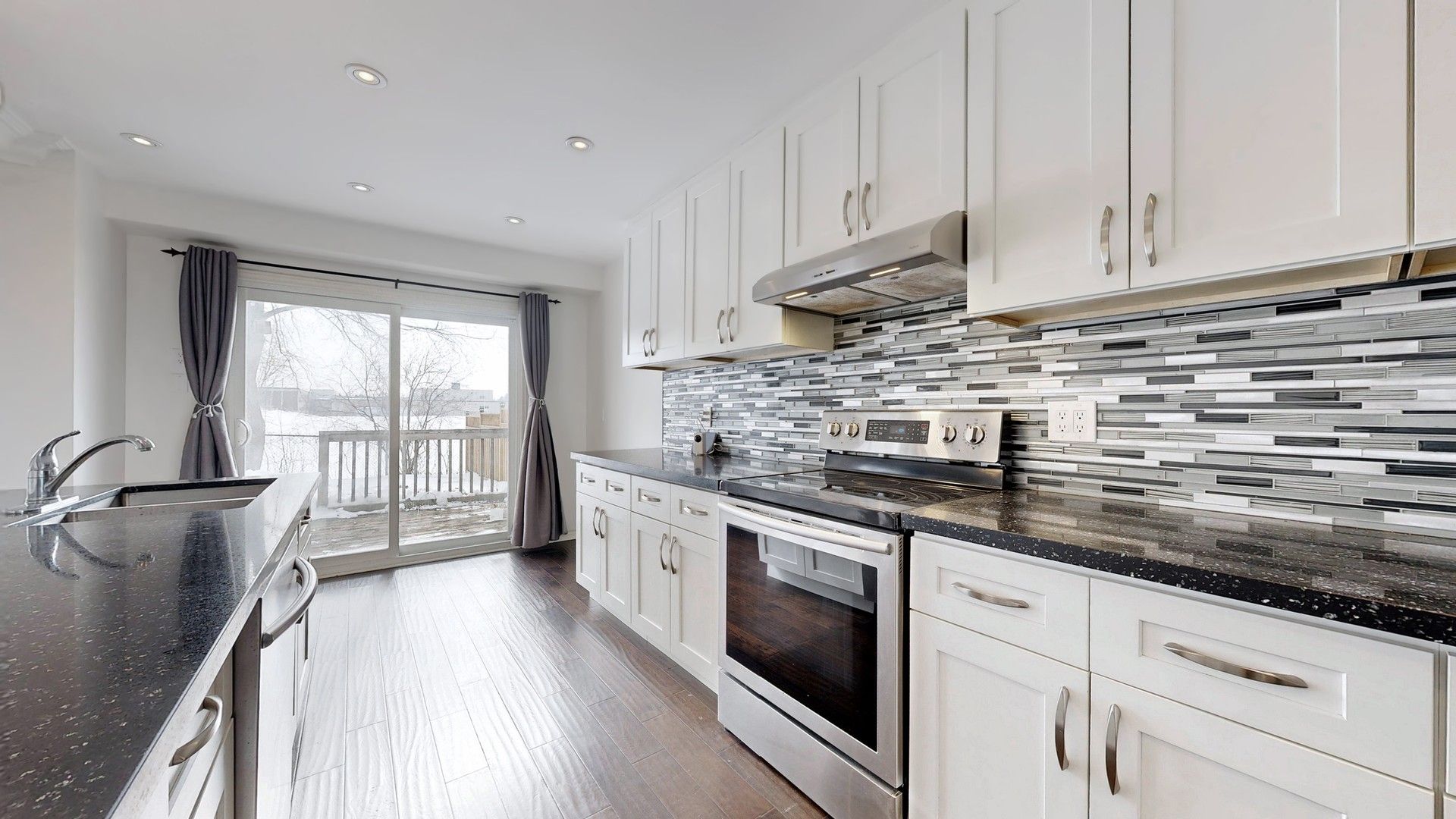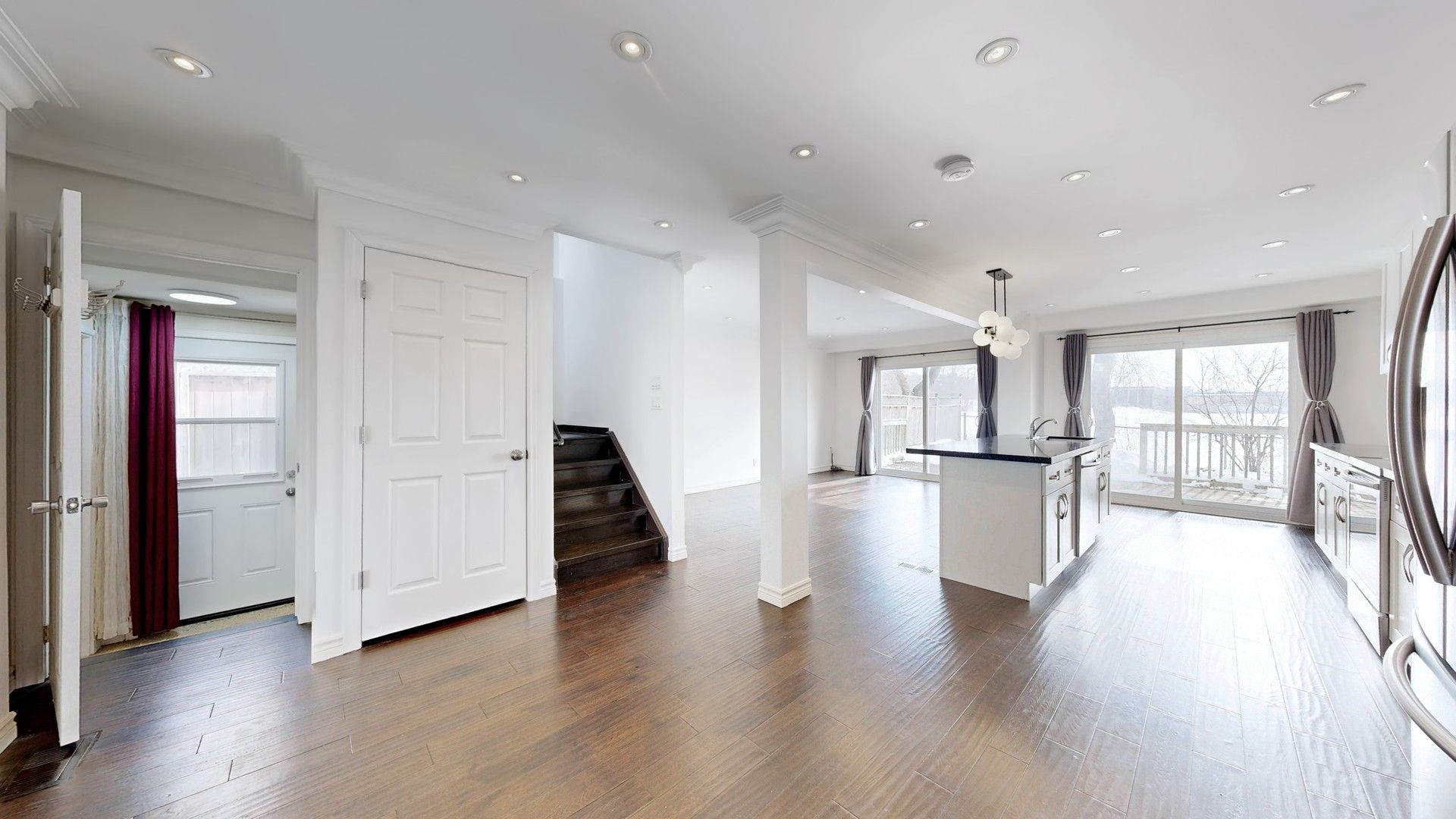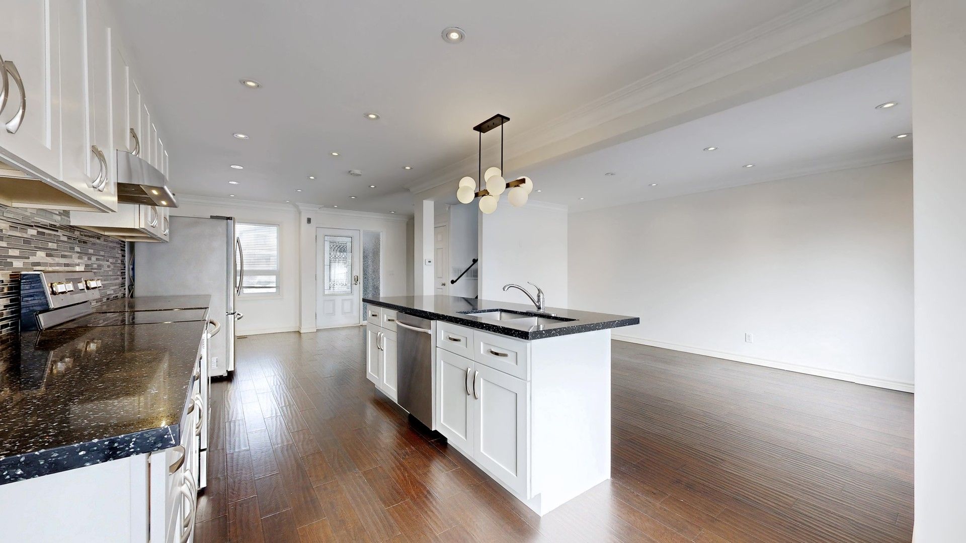 Welcome to 742 beman drive in the heart of newmarket - just minutes to main street's charming restaurants and shops, hwy 404, parks, schools, groceries, and southlake hospital. Set in a family-friendly community, this home offers the perfect blend of convenience, privacy, and move-in ready comfort. With no direct rear neighbours, enjoy open views backing onto the field at huron heights secondary school - offering a rare sense of space and privacy compared to homes that back directly onto other properties. The bright, open-concept main floor (renovated in 19) features crown moulding, smooth ceilings with pot lights, dark engineered hardwood flooring, and an updated 3-piece washroom (22). The modern kitchen is designed for both everyday living and entertaining, complete with a large centre island with breakfast bar, quartz countertops with undermount sink, stylish backsplash, and ample cabinetry including soft-close drawers. Sliding doors from both the kitchen and living area (19) lead to the spacious backyard, creating seamless indoor-outdoor flow. An updated staircase leads to the second level, where wrought iron pickets enhance the upper landing. Upstairs features pot lights, a separate laundry area, and an updated 3-piece washroom with an oversized rainfall shower(19). All bedrooms are generously sized, filled with natural light, and finished with matching hardwood flooring throughout. The basement offers a separate entrance and additional finished living space with flexible potential for extended family use, including laminate flooring (22), a second kitchen, office, living area, and additional laundry in the furnace room. A main-level door provides separation between levels for added privacy beside where main wr is located. Exterior highlights include stucco (22), brick and siding, updated driveway (19) and side interlock (19) with parking for two cars and no sidewalk. Major updates: roof (2019), furnace (18), a/c (19), right-side fence (24) ; water/gas meters (24)