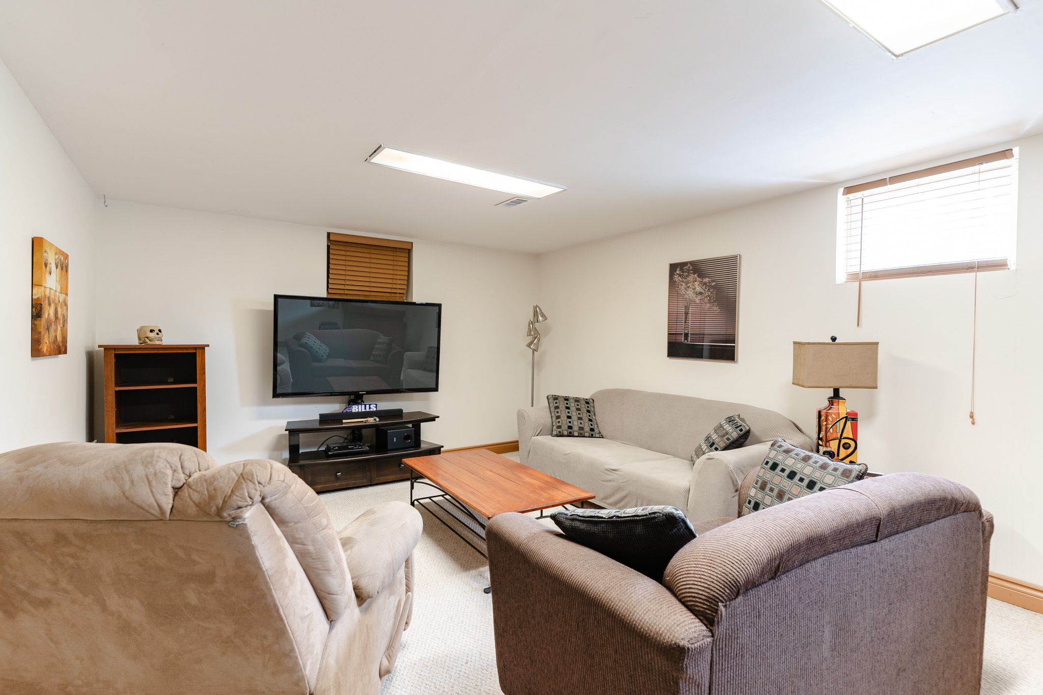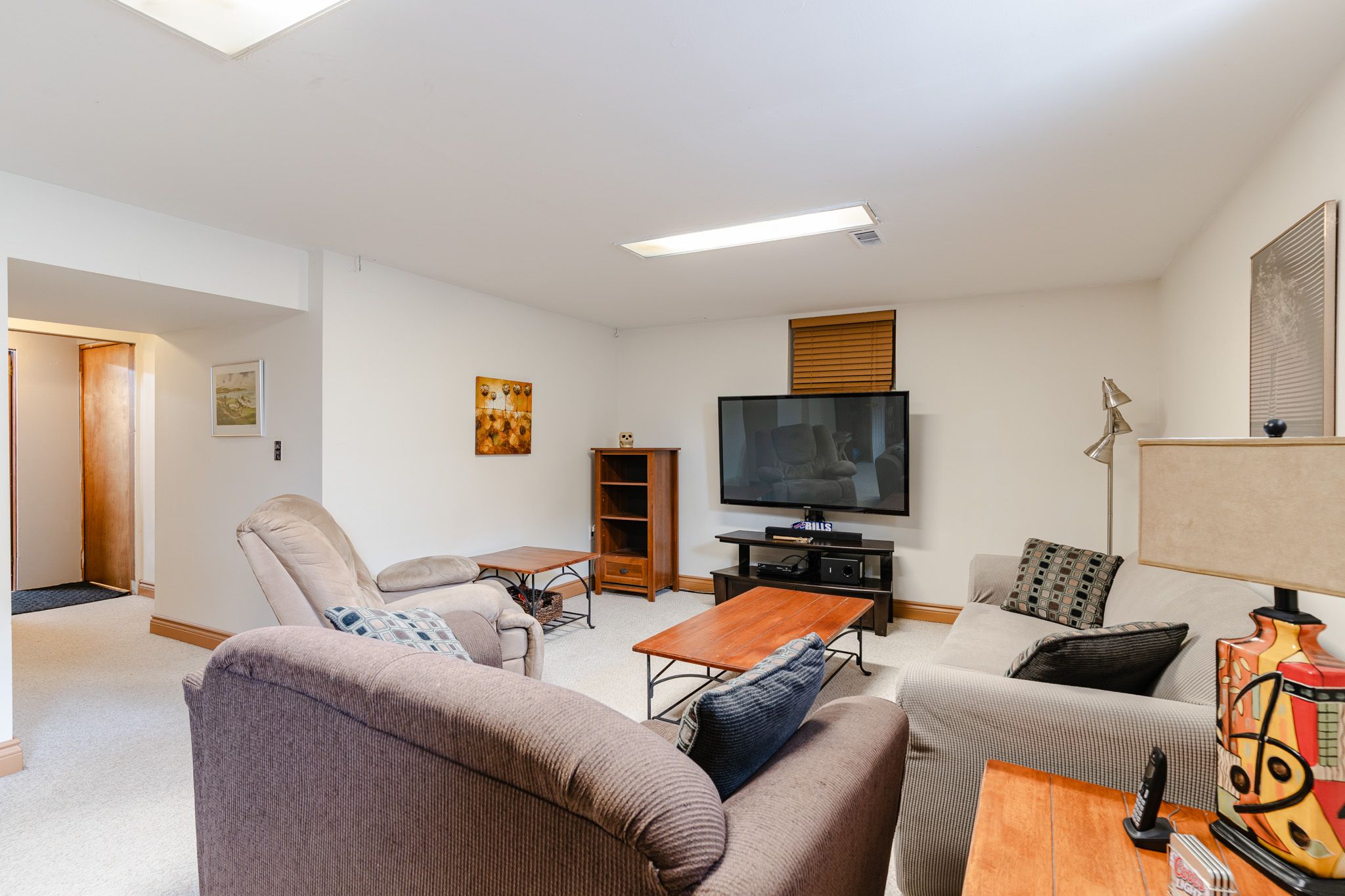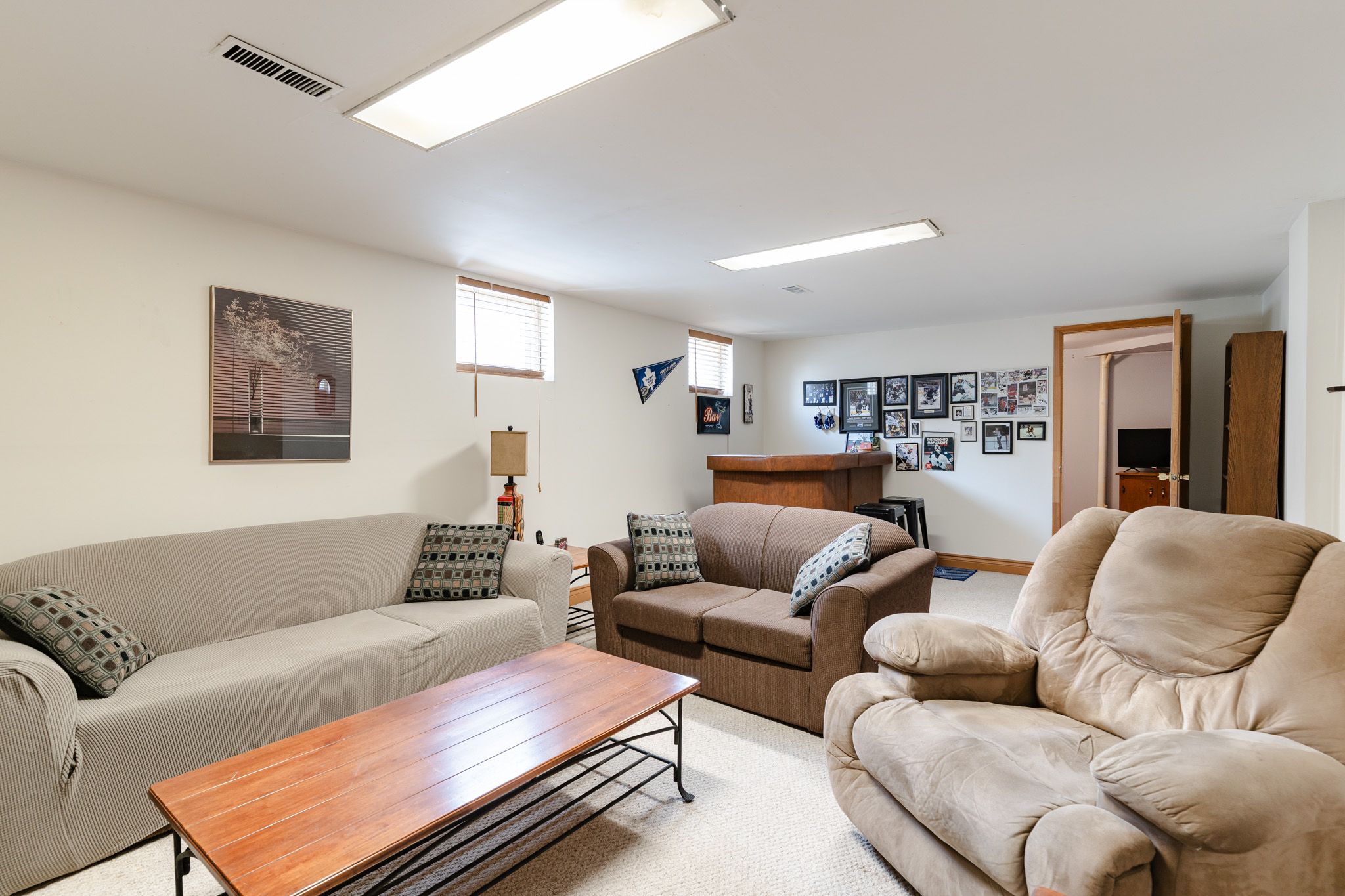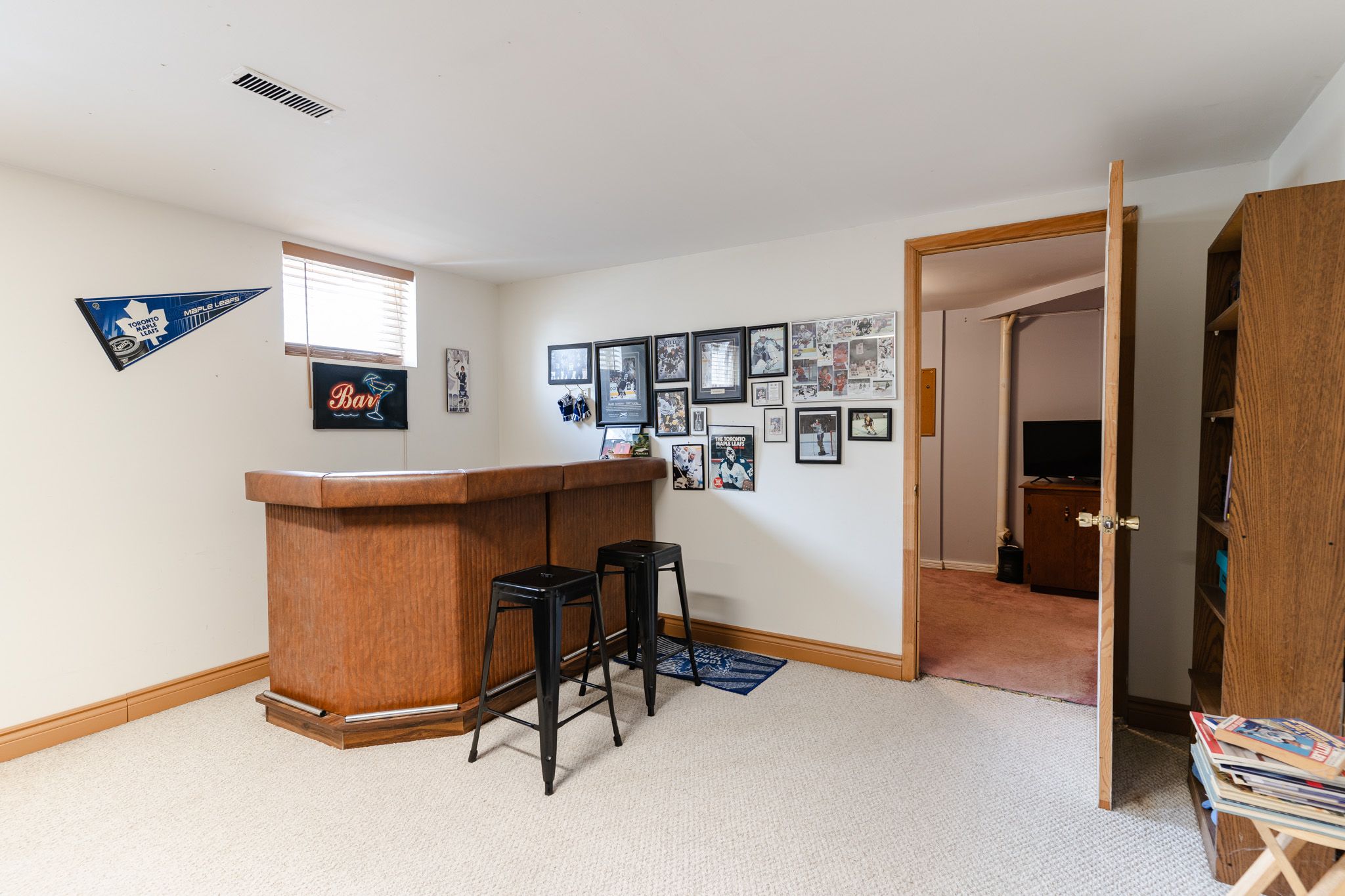 • Finished basement includes a large rec room and dry bar.