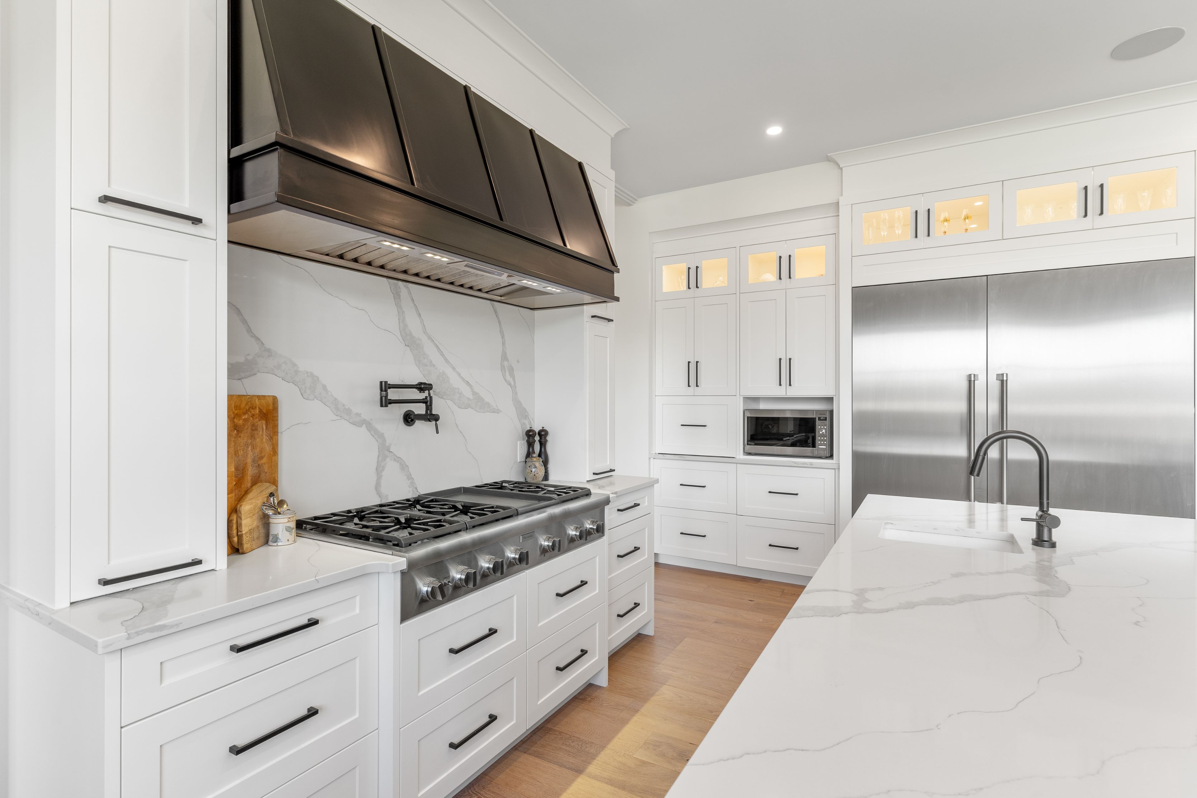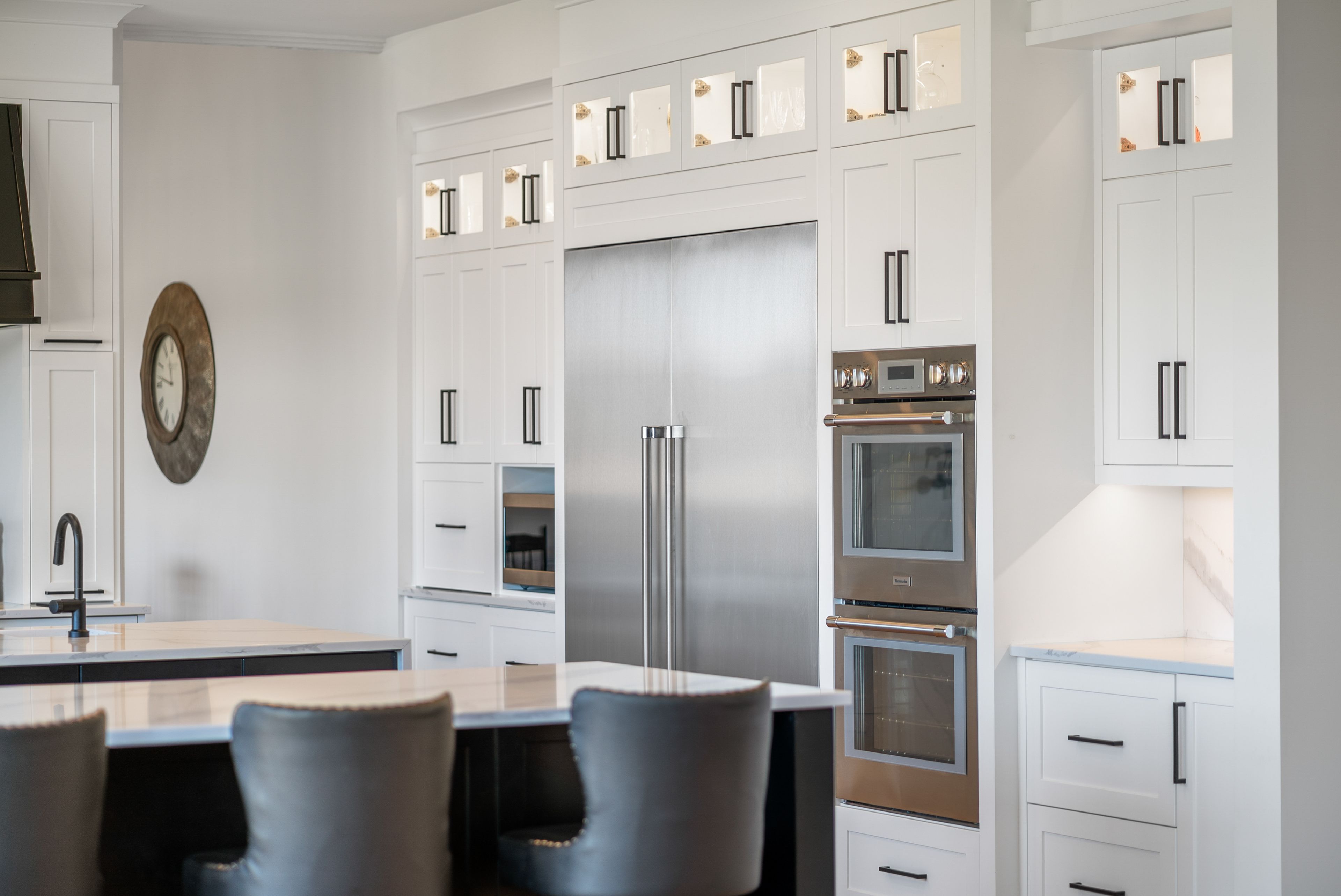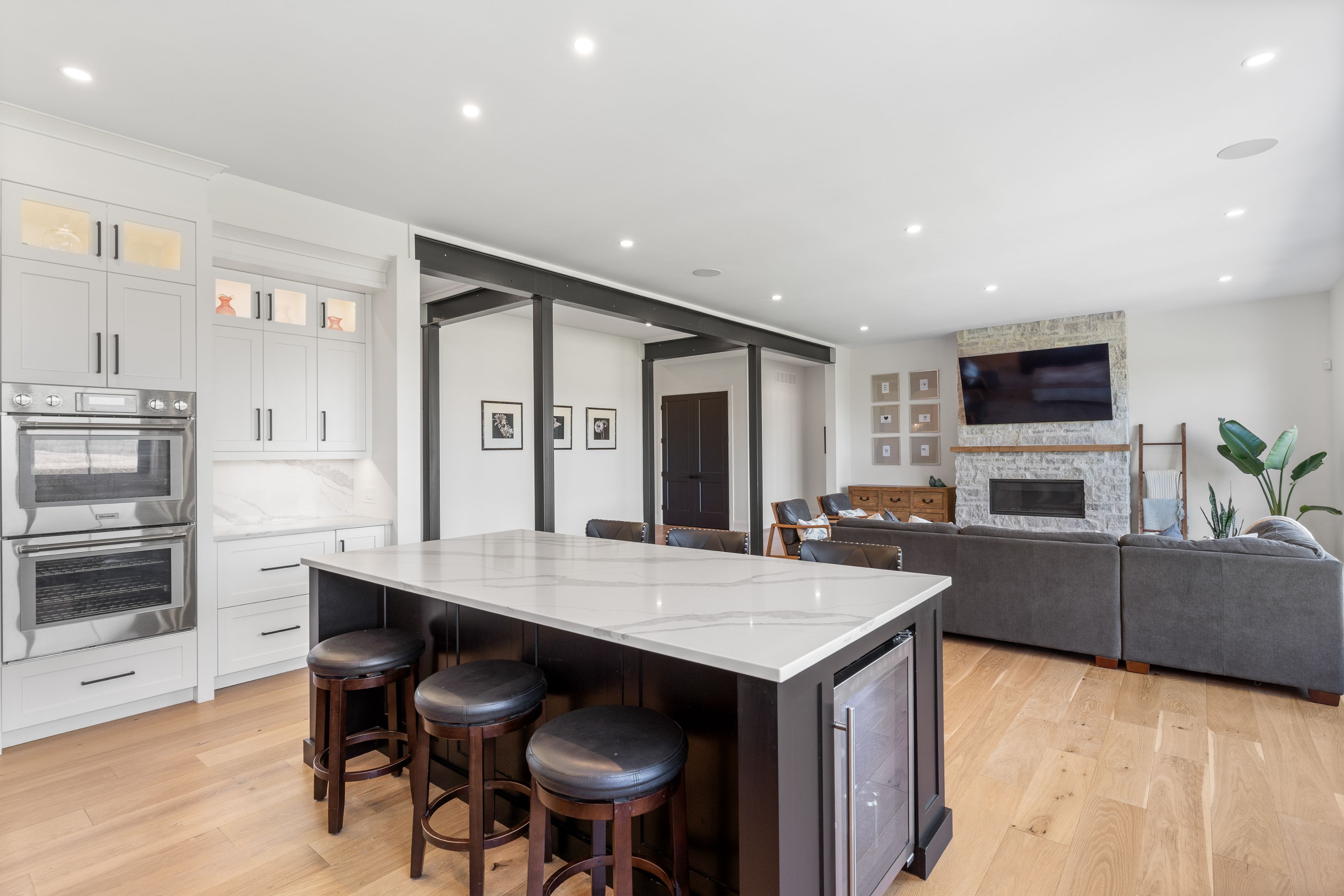 • Inviting gourmet kitchen with double islands and high-end Thermador appliances.