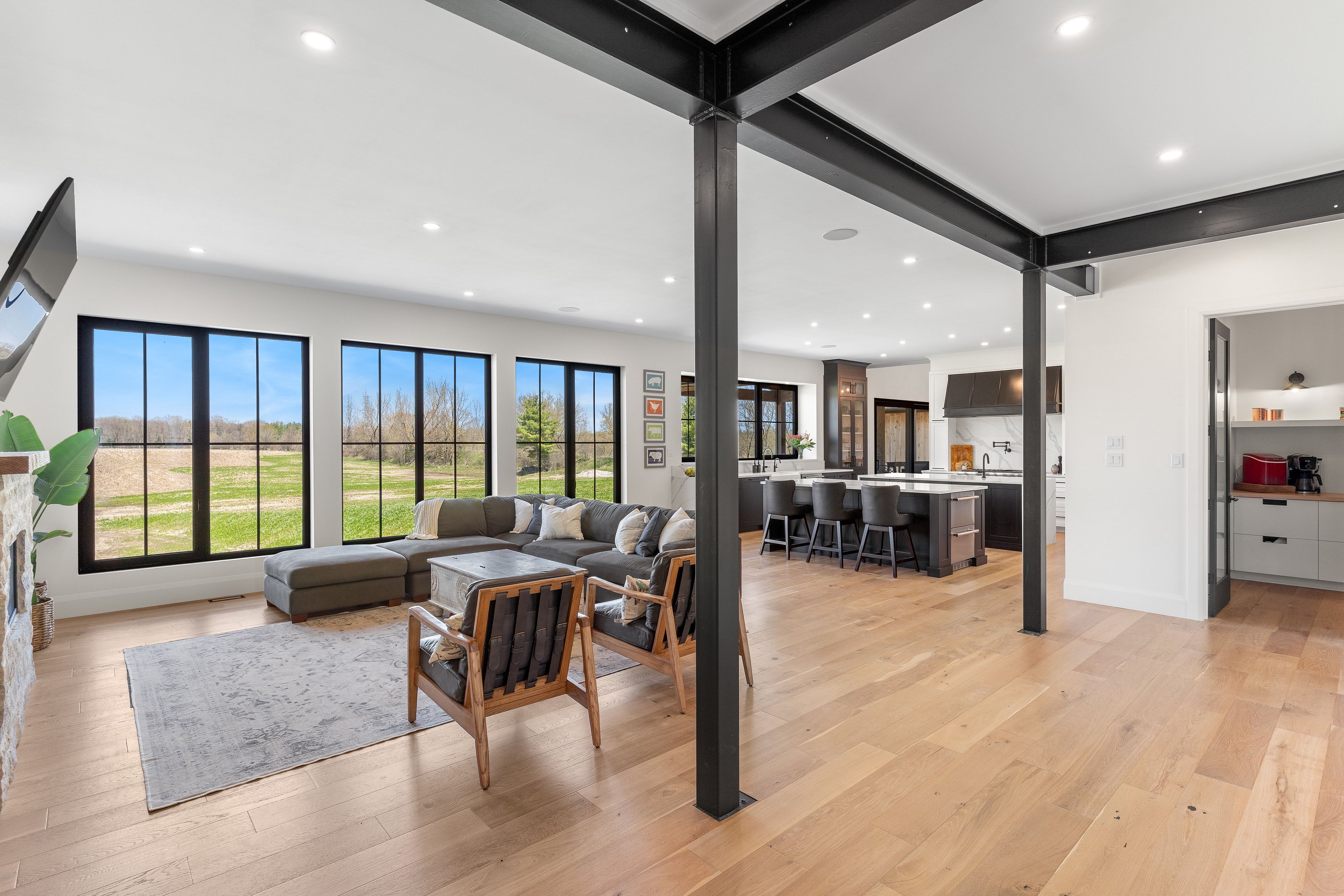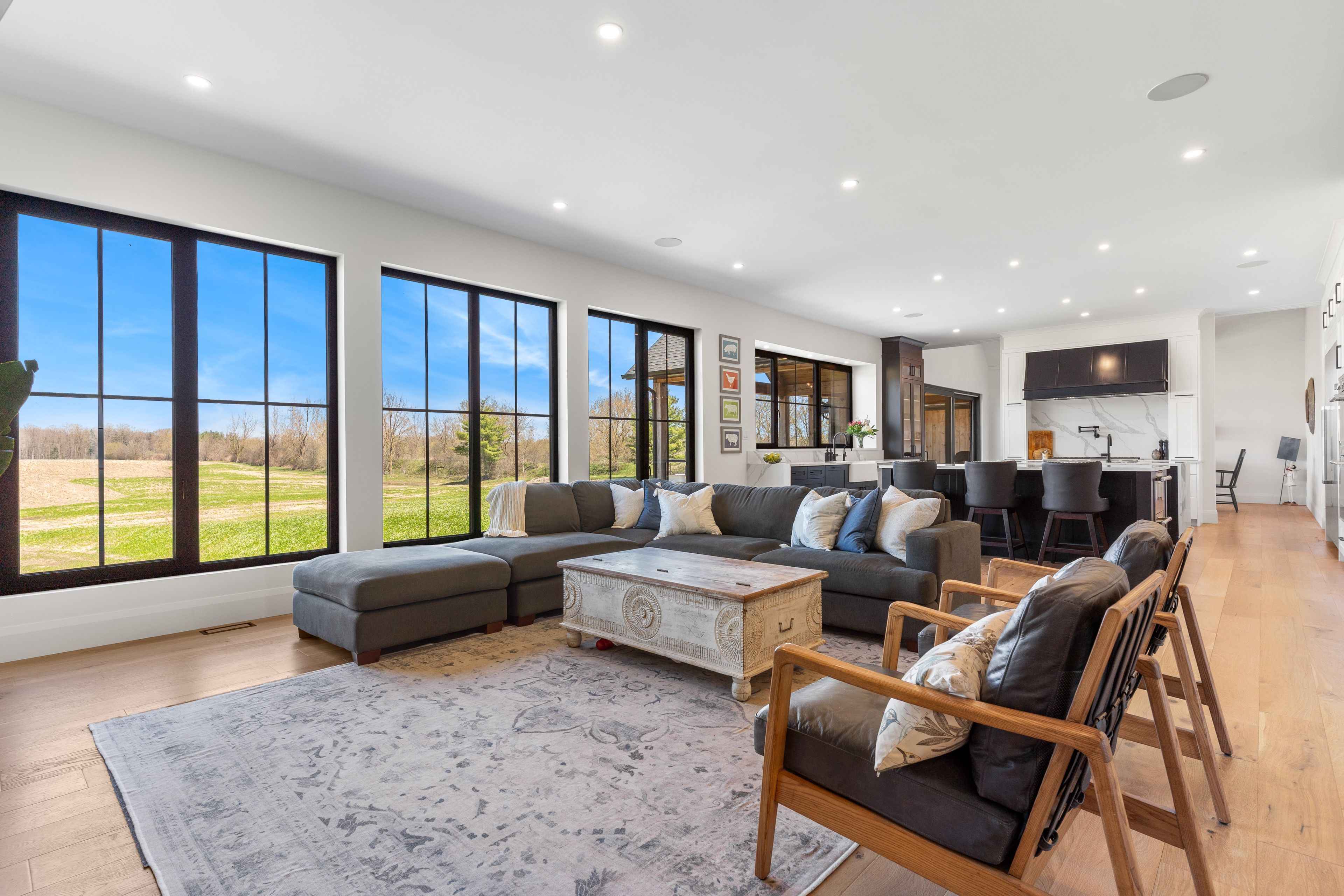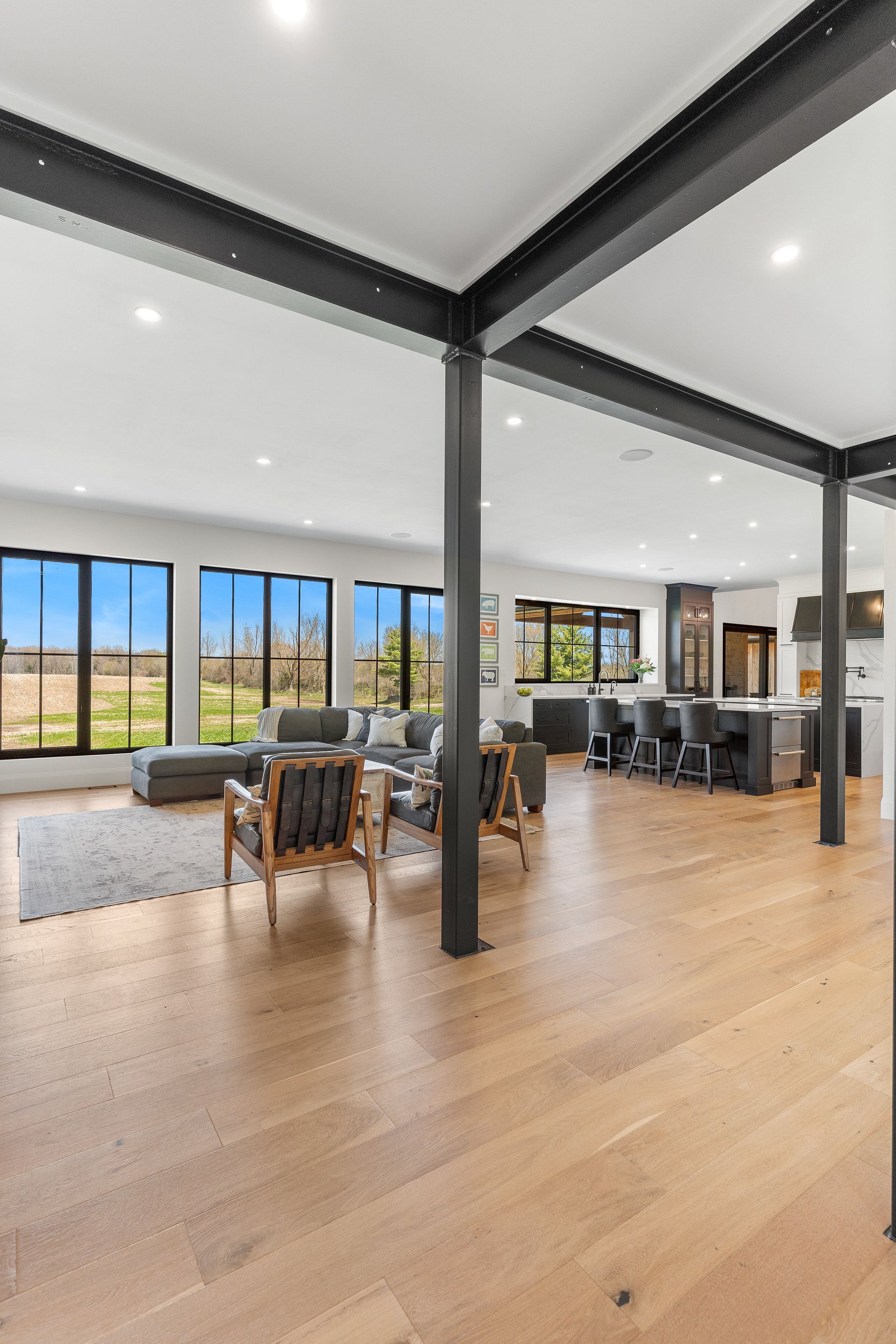• Seamless indoor-outdoor living with expansive views and a timber-framed rear porch.