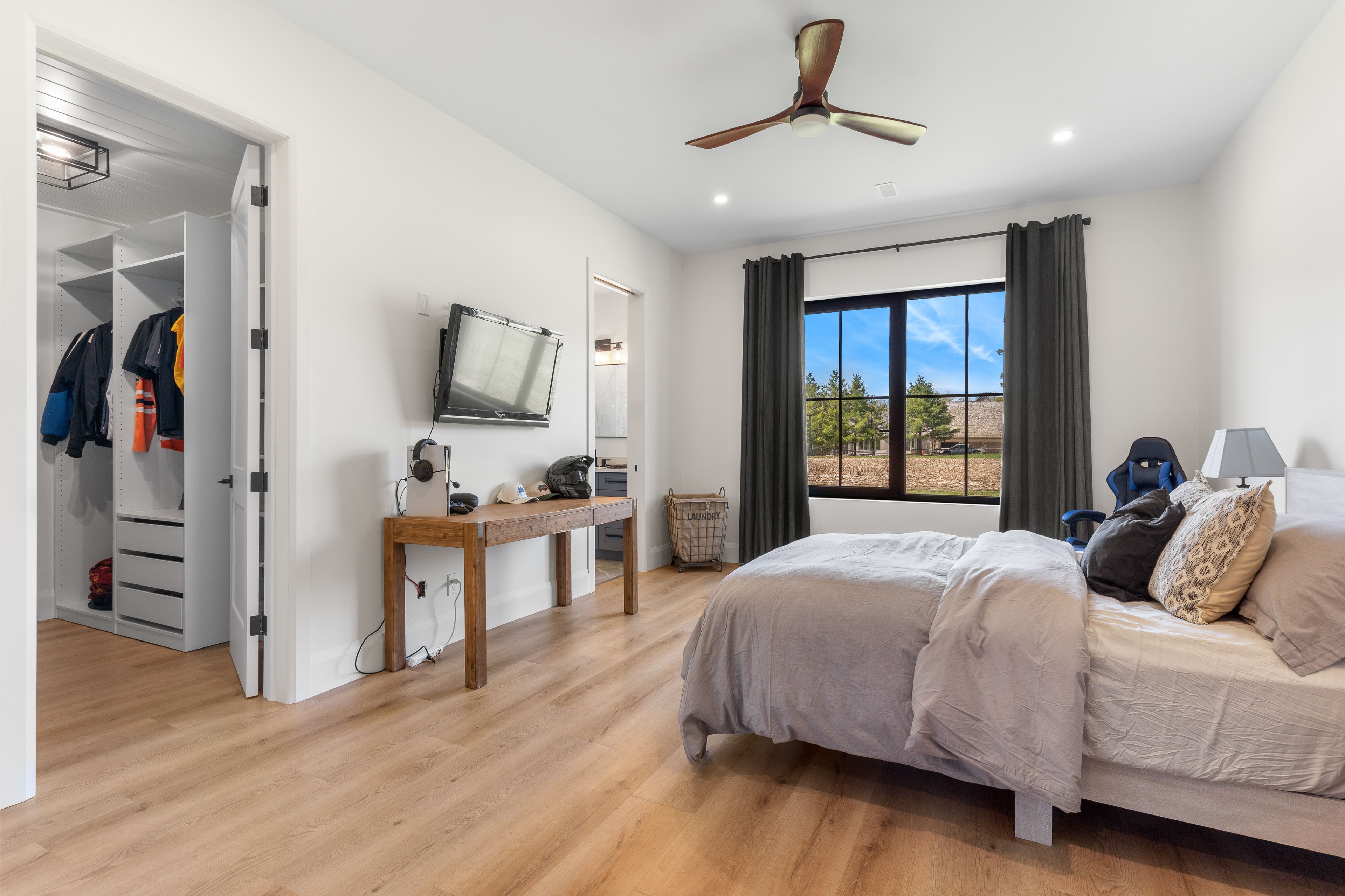 • Luxurious main-floor primary suite with fireplace and spa-like ensuite bathroom.
