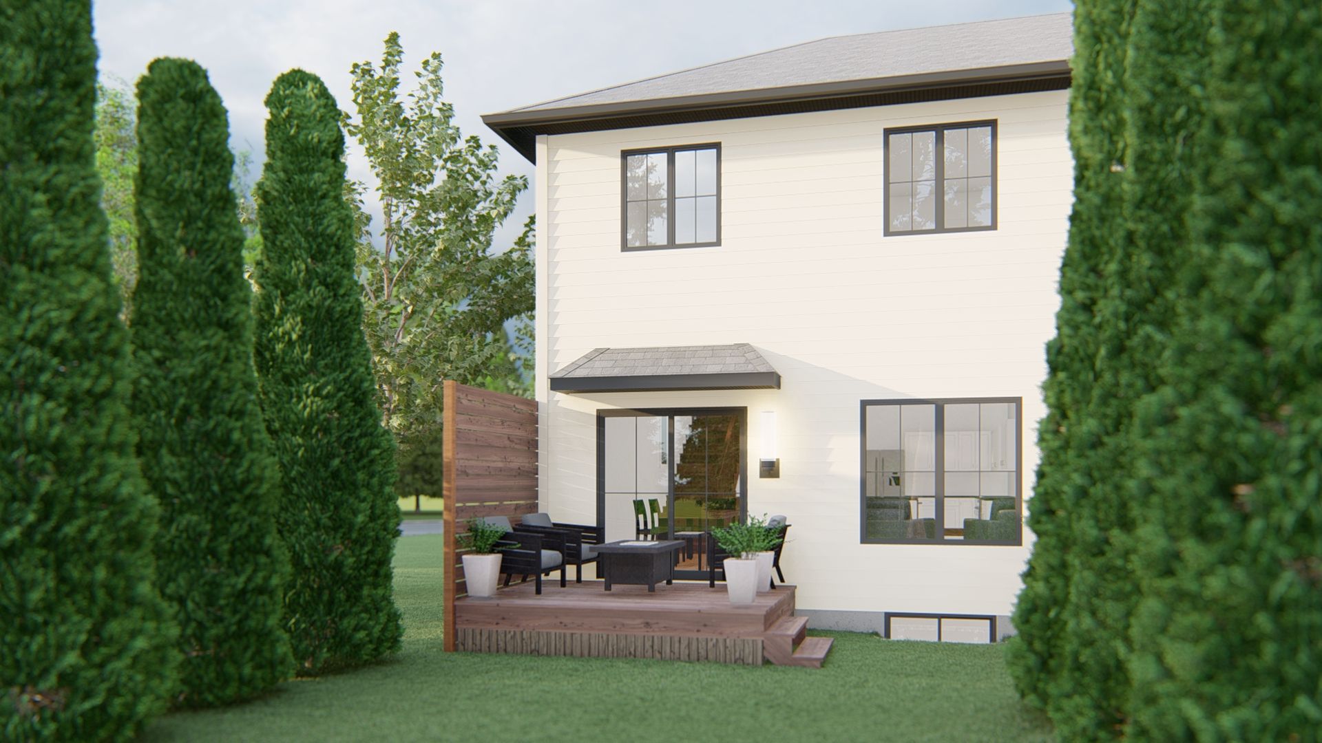 • High-end standard features including wood siding and metal roof accents.
