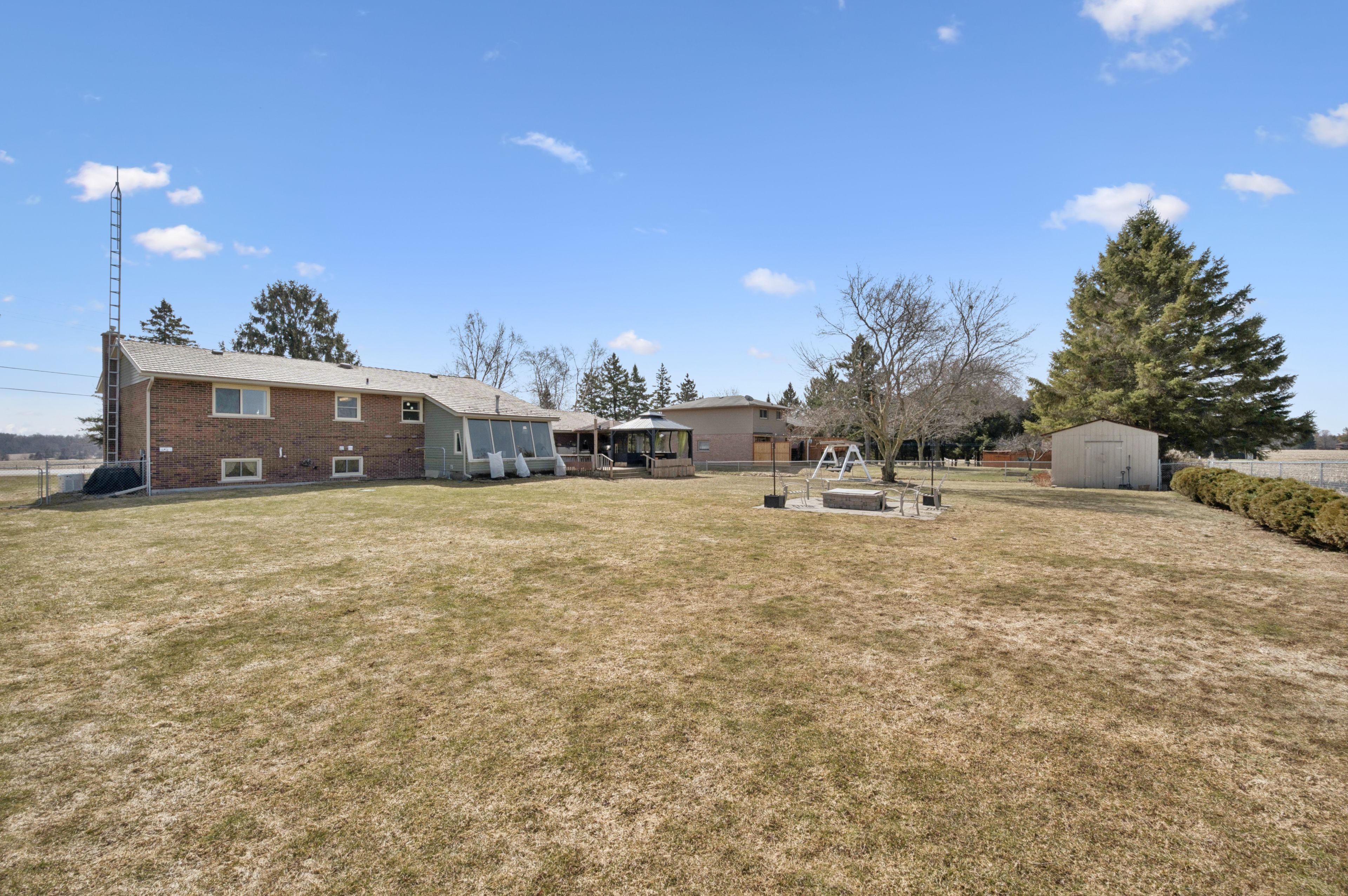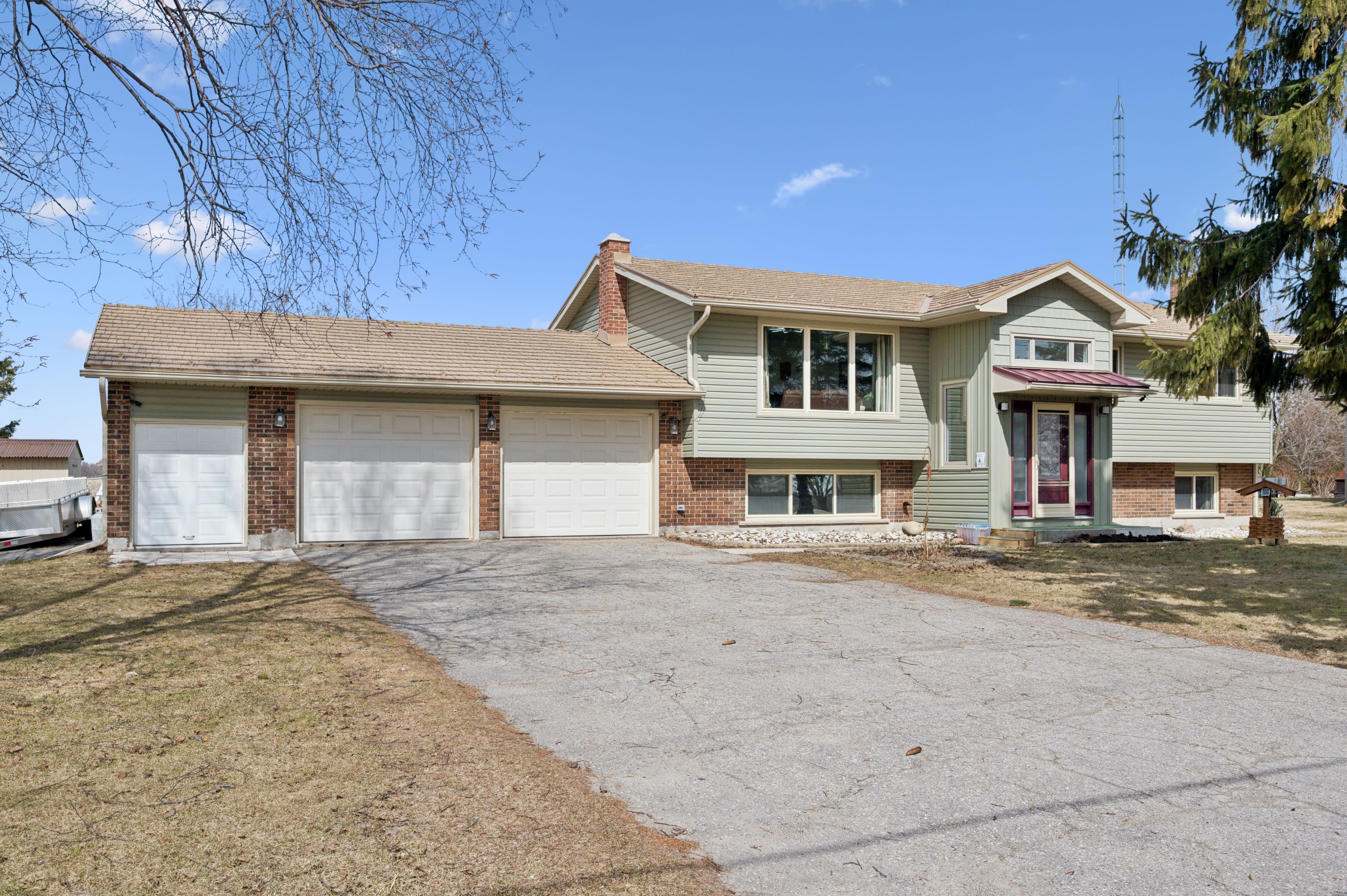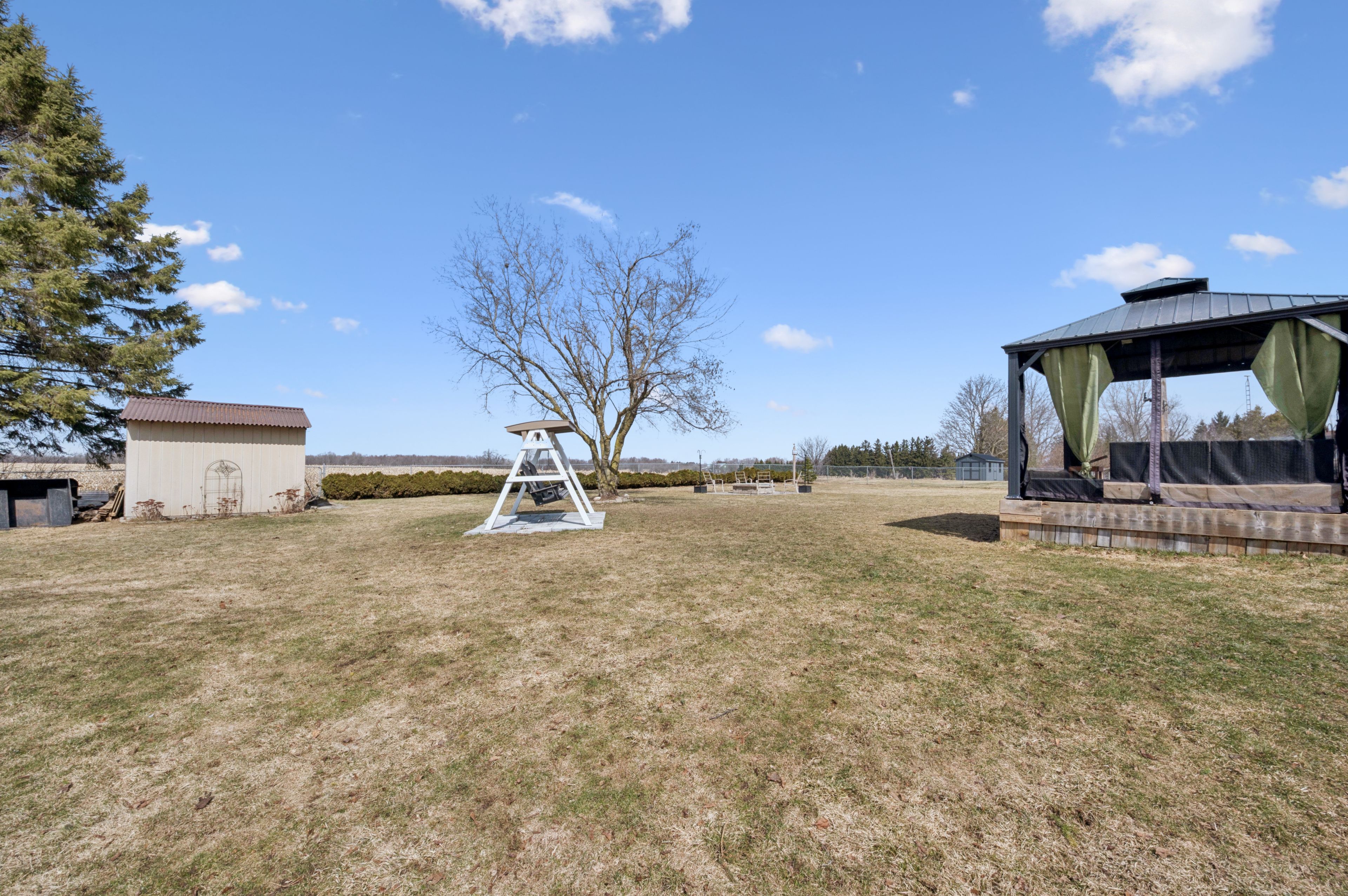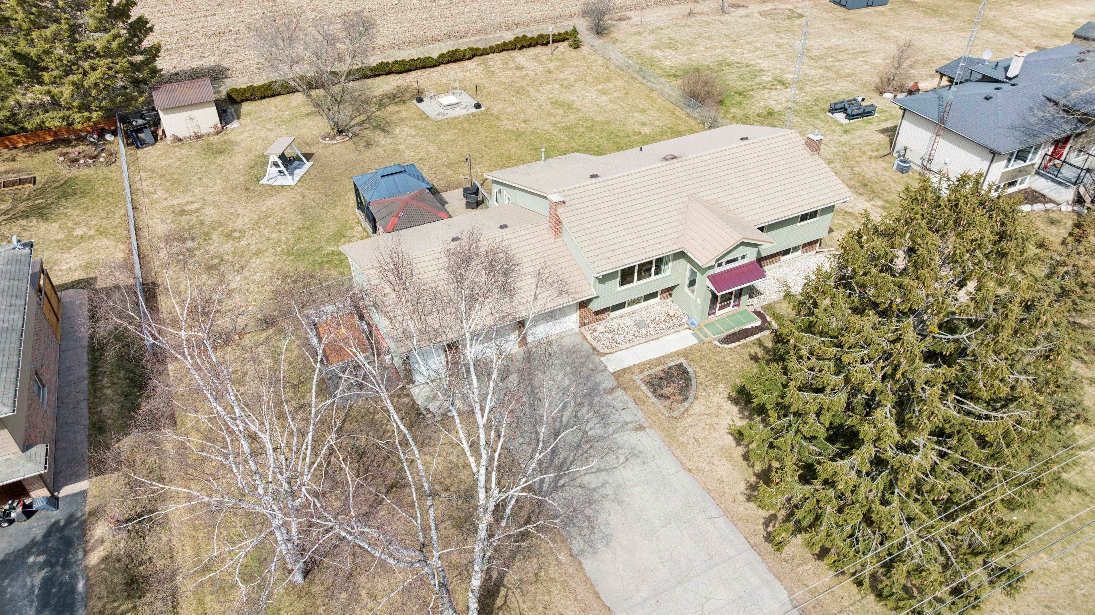 Set on a 0. 52-acre lot in ariss, 7422 wellington road 51 presents country living w/convenience of nearby urban amenities. This fully renovated, 2,756 sqft raised bungalow backs onto open farm fields, offering a serene backdrop of uninterrupted views. The main living area boasts a large window with expansive views of the front yard while the dining room adjacent to the kitchen welcomes guests for daily meals. Thoughtfully updated from top to bottom including a refreshed kitchen w/crisp white cabinetry, corian countertops, new hardware, sink, & modern fixtures. Three spacious bedrooms & renovated family bathroom, a luxurious soaker tub, updated finishes, & double-sink corian vanity. An all year sunroom with views of the backyard is found here. The fully finished lower level extends the living space w/stylish rec room & a cozy gas fireplace, custom built-in cabinetry, a feature wall with mounted 65" tv, & well-appointed bar area. An additional versatile room w/large lookout windows, luxury vinyl plank flooring, and a 2nd full bathroom are on this level with the laundry room. Upgrades include refinished hardwood floors, iron spindles, led lighting, updated trim and doors, & designer paint. A standout feature is the impressive front foyer addition, offering soaring ceiling heights & abundance of natural light. Major mechanical improvements, including a new well pump & system updates, humidifier, & a generac generator and rough-in for laundry upstairs. A fully fenced yard, expansive deck, & covered gazebo w/durable steel roof, updated insulated siding, a 12x12 shed, a rare 2. 5-bay garage, & parking for 6 cars. Enjoy nearby outdoor destinations such as guelph lake conservation area, scenic trails, and local farmers' markets, all while being conveniently connected to major routes for commuting. This is a truly turn-key residence that masterfully blends space, style, and lifestyle-an elevated country retreat without compromise.