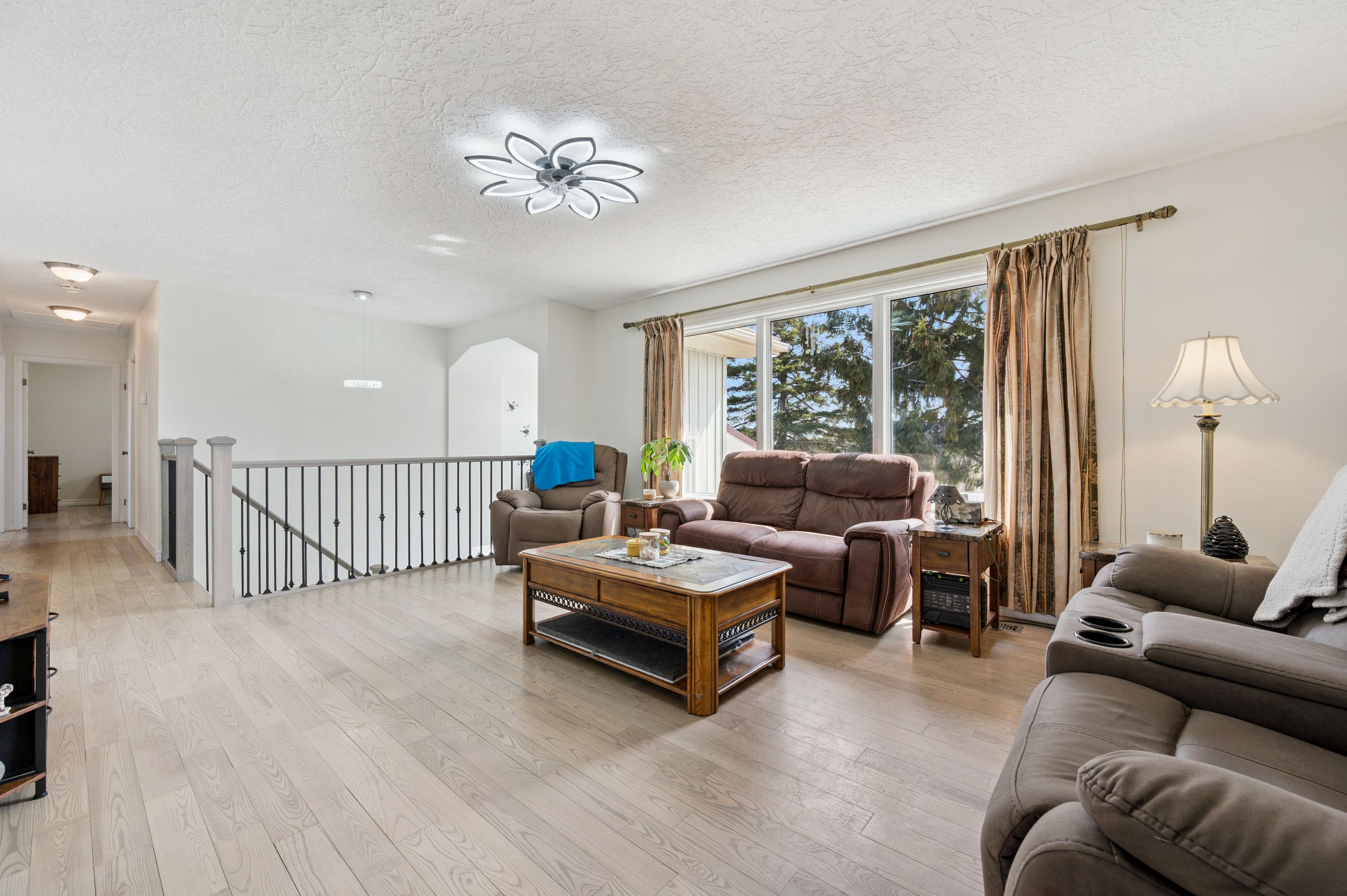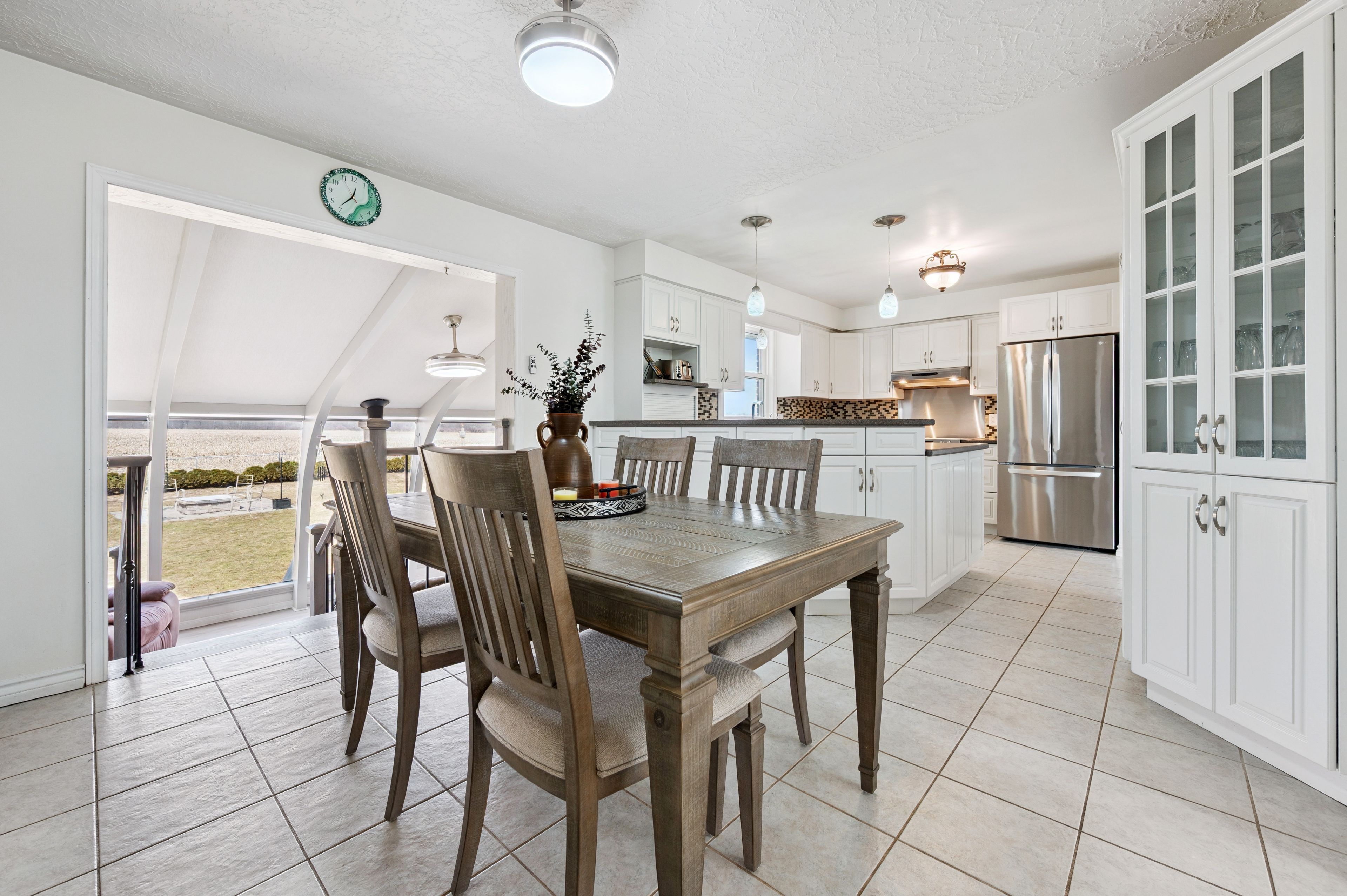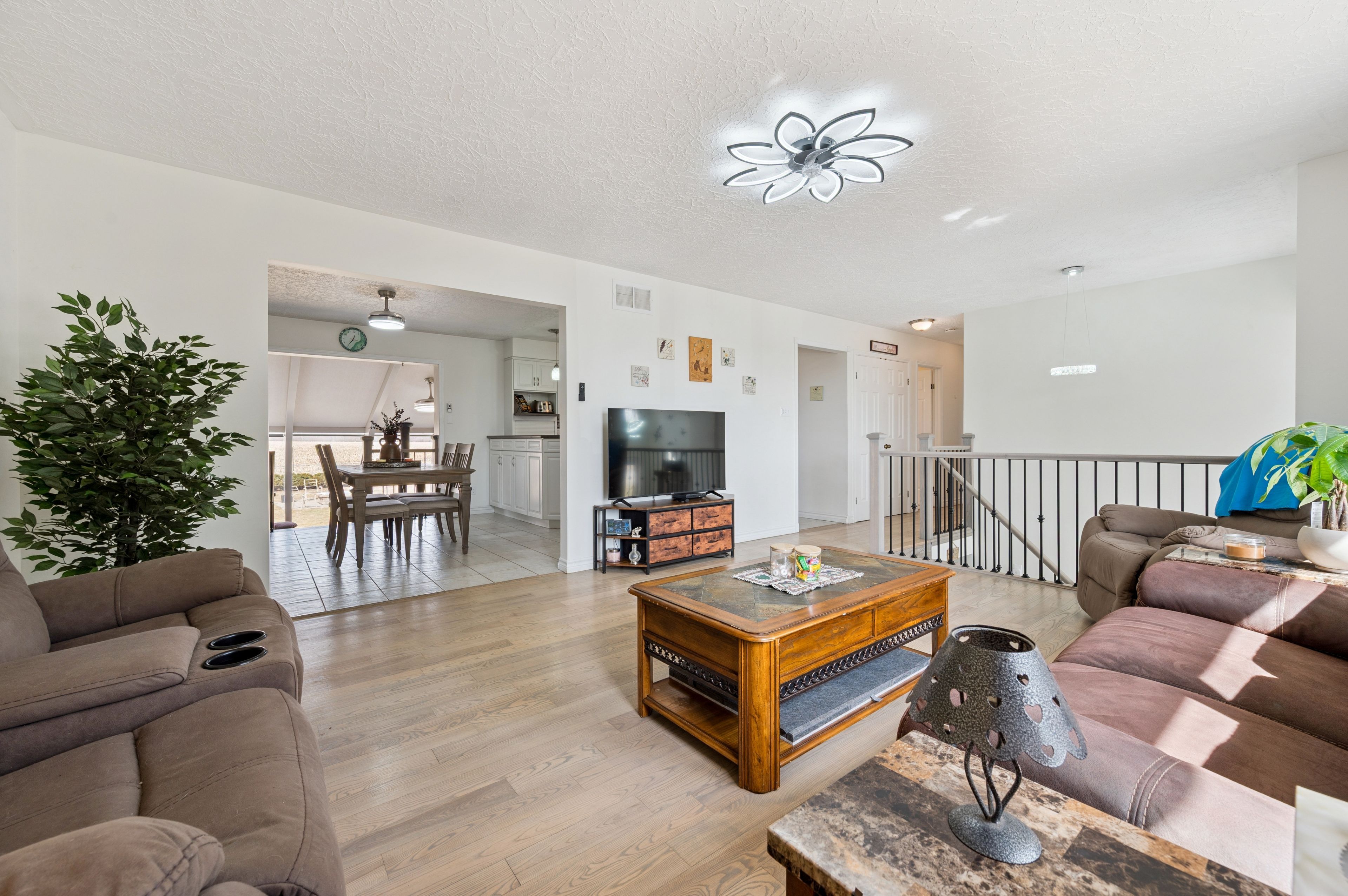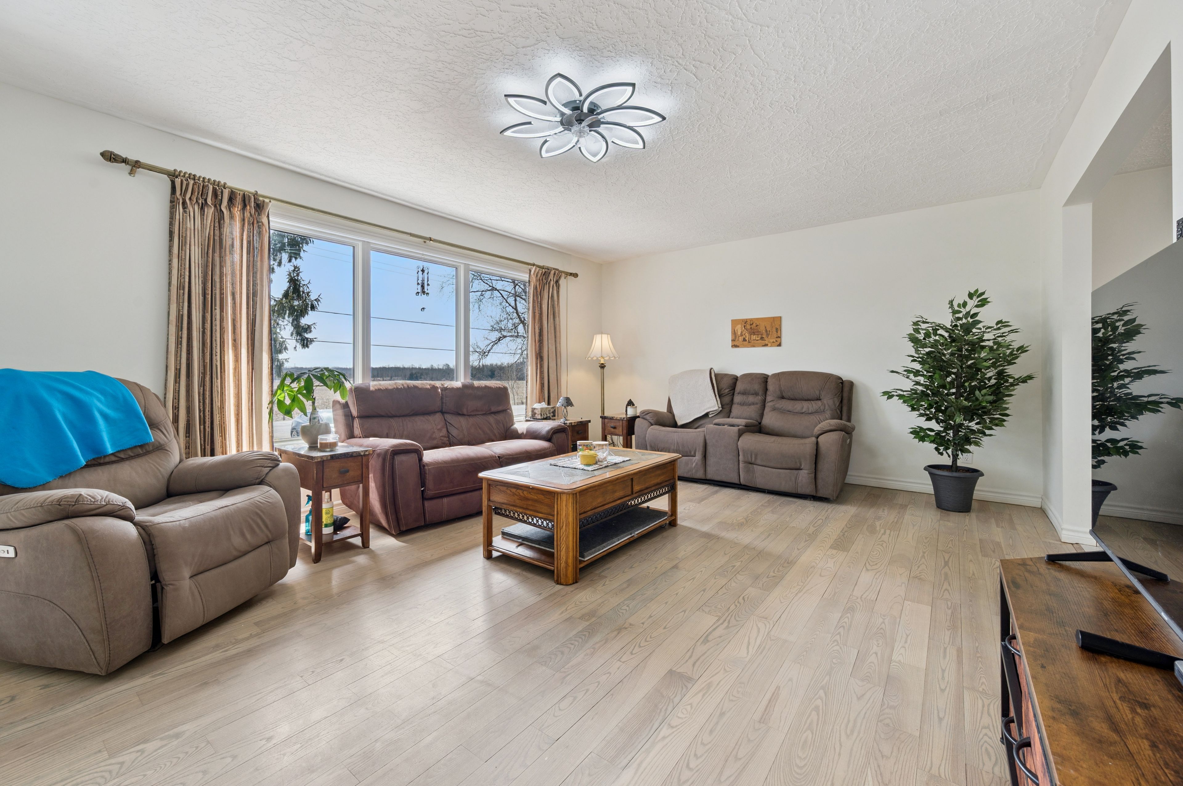Set on a 0. 52-acre lot in ariss, 7422 wellington road 51 presents country living w/convenience of nearby urban amenities. This fully renovated, 2,756 sqft raised bungalow backs onto open farm fields, offering a serene backdrop of uninterrupted views. The main living area boasts a large window with expansive views of the front yard while the dining room adjacent to the kitchen welcomes guests for daily meals. Thoughtfully updated from top to bottom including a refreshed kitchen w/crisp white cabinetry, corian countertops, new hardware, sink, & modern fixtures. Three spacious bedrooms & renovated family bathroom, a luxurious soaker tub, updated finishes, & double-sink corian vanity. An all year sunroom with views of the backyard is found here. The fully finished lower level extends the living space w/stylish rec room & a cozy gas fireplace, custom built-in cabinetry, a feature wall with mounted 65" tv, & well-appointed bar area. An additional versatile room w/large lookout windows, luxury vinyl plank flooring, and a 2nd full bathroom are on this level with the laundry room. Upgrades include refinished hardwood floors, iron spindles, led lighting, updated trim and doors, & designer paint. A standout feature is the impressive front foyer addition, offering soaring ceiling heights & abundance of natural light. Major mechanical improvements, including a new well pump & system updates, humidifier, & a generac generator and rough-in for laundry upstairs. A fully fenced yard, expansive deck, & covered gazebo w/durable steel roof, updated insulated siding, a 12x12 shed, a rare 2. 5-bay garage, & parking for 6 cars. Enjoy nearby outdoor destinations such as guelph lake conservation area, scenic trails, and local farmers' markets, all while being conveniently connected to major routes for commuting. This is a truly turn-key residence that masterfully blends space, style, and lifestyle-an elevated country retreat without compromise.