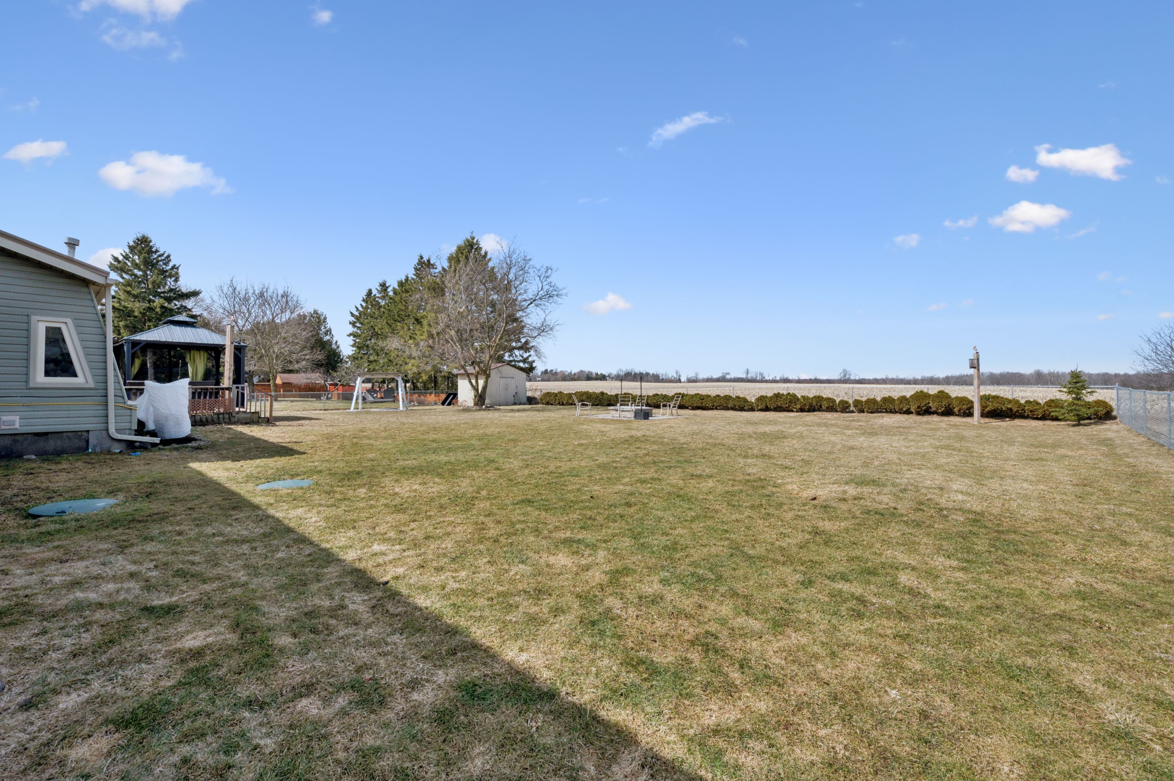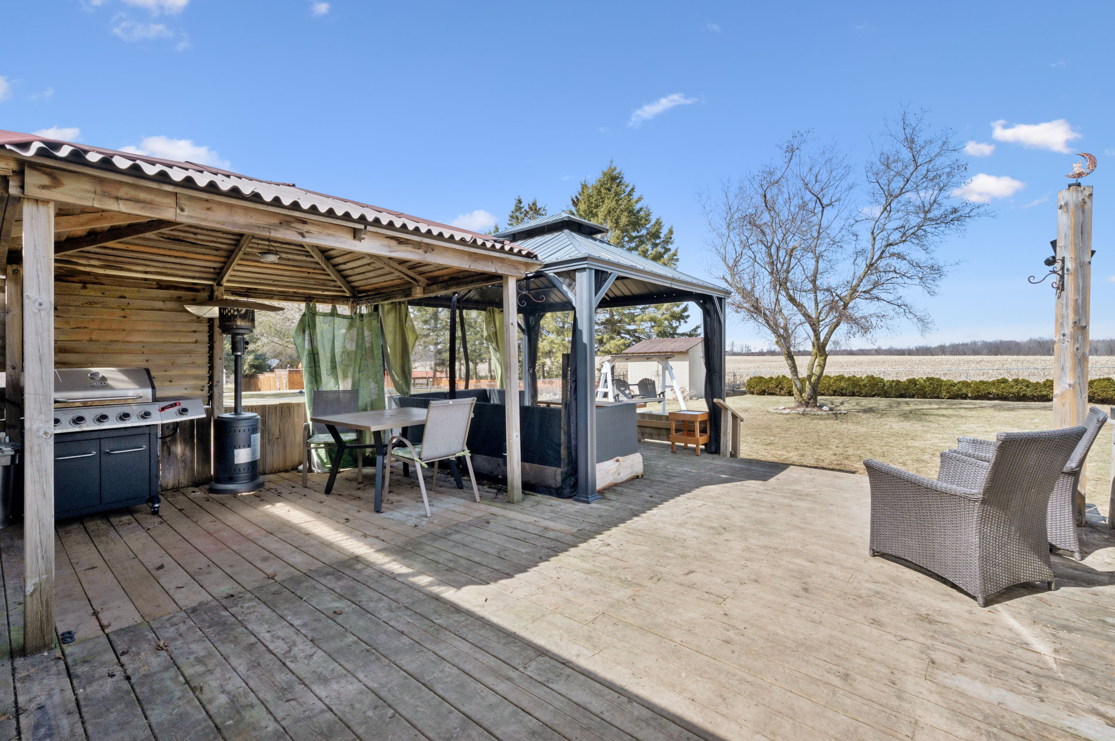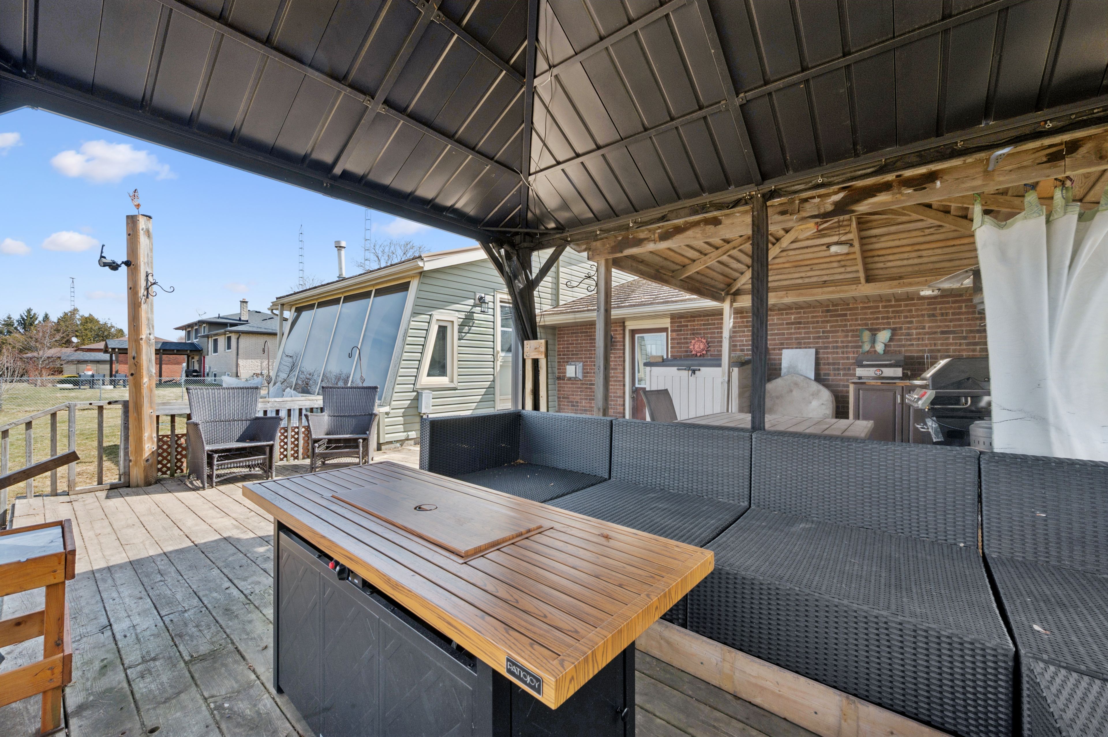 • Large fully fenced yard, expansive deck, and covered gazebo.