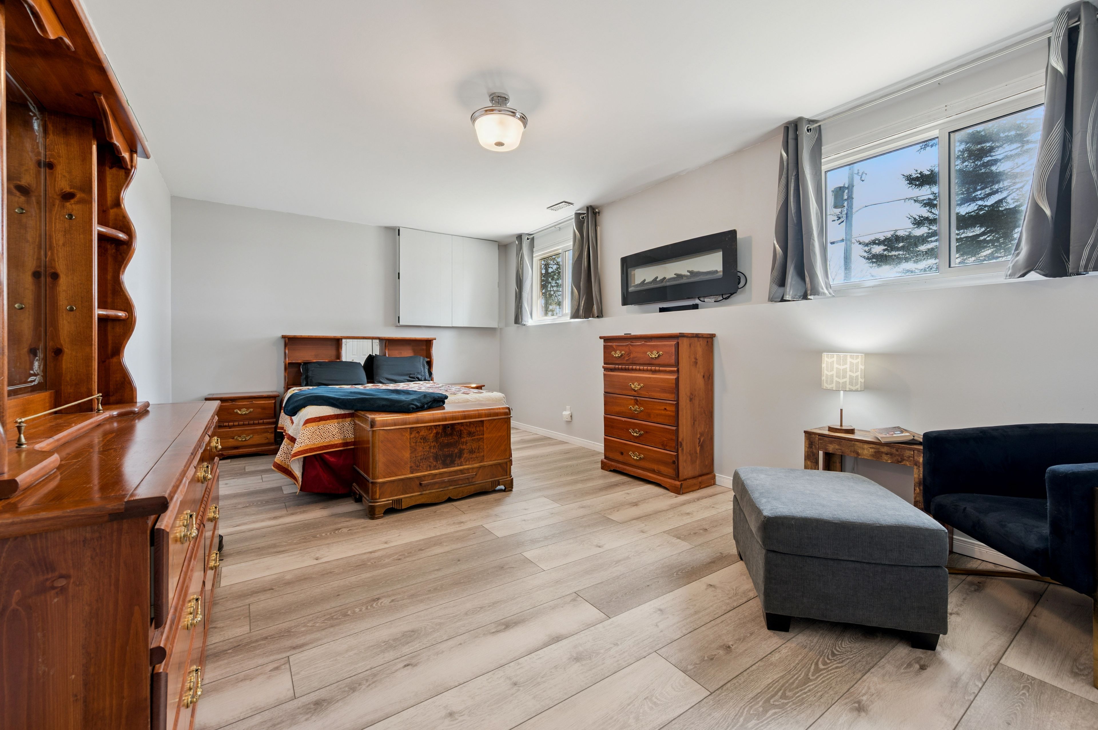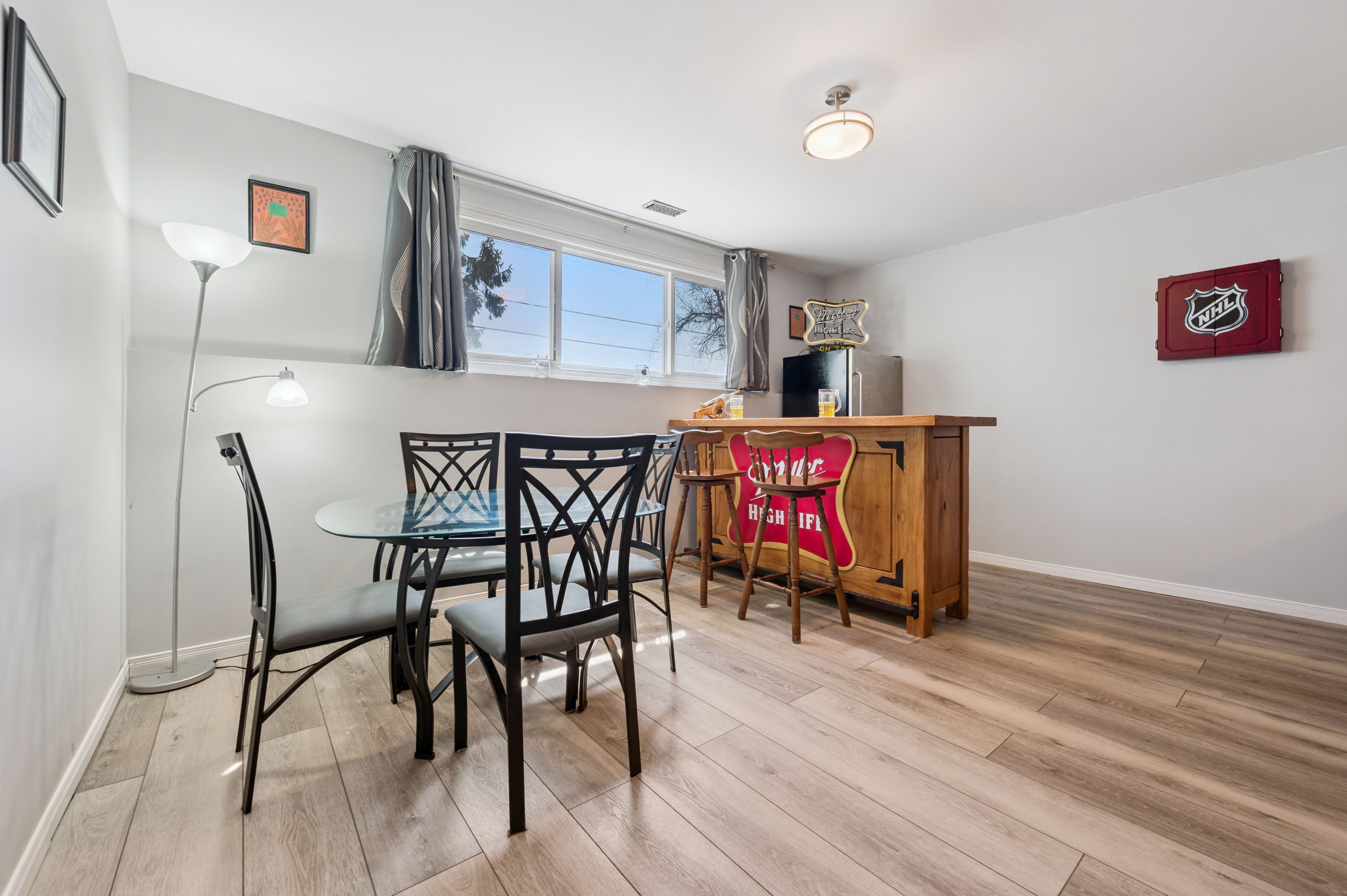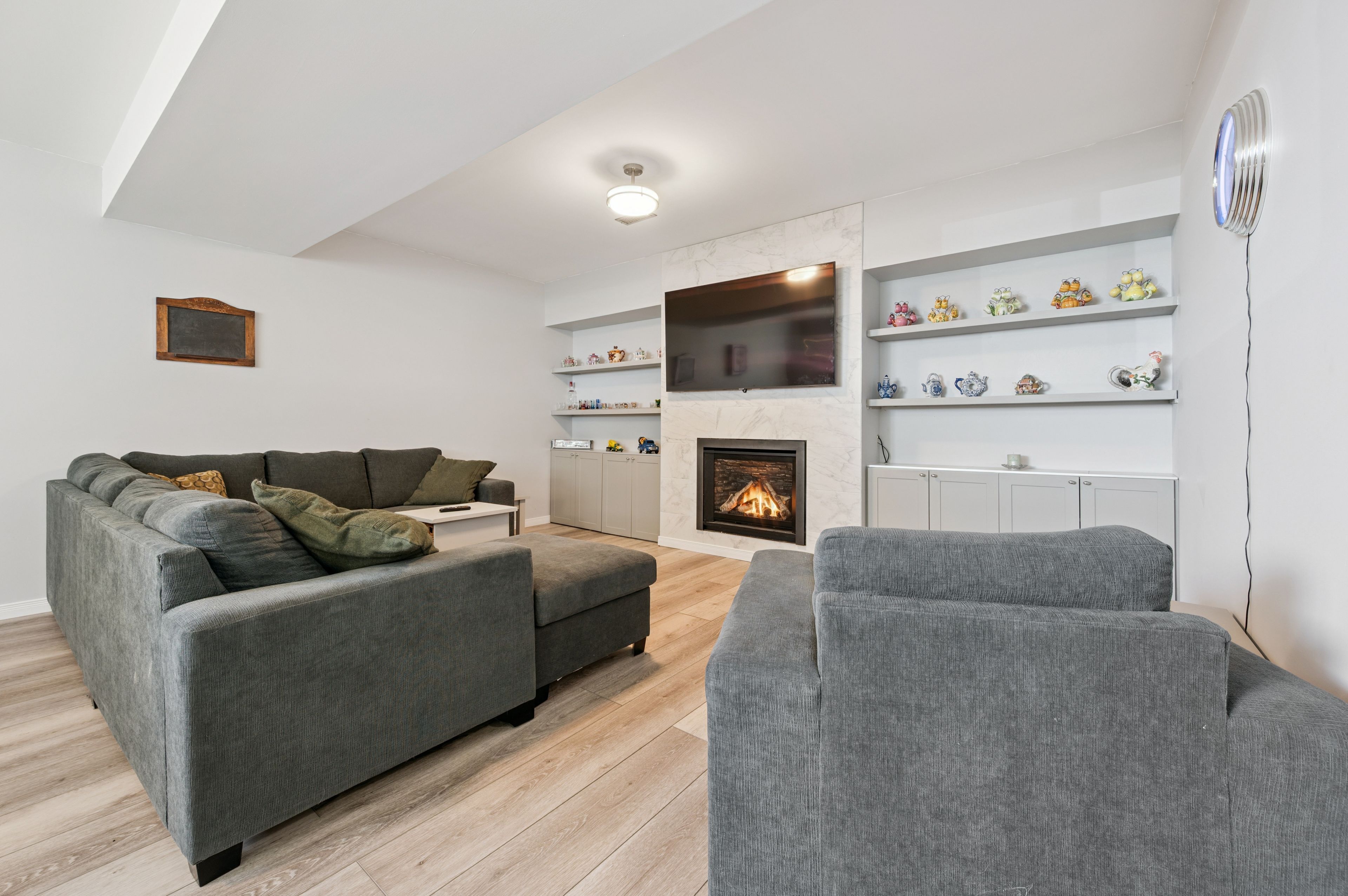 • Cozy lower level featuring a rec room, gas fireplace, and bar area.