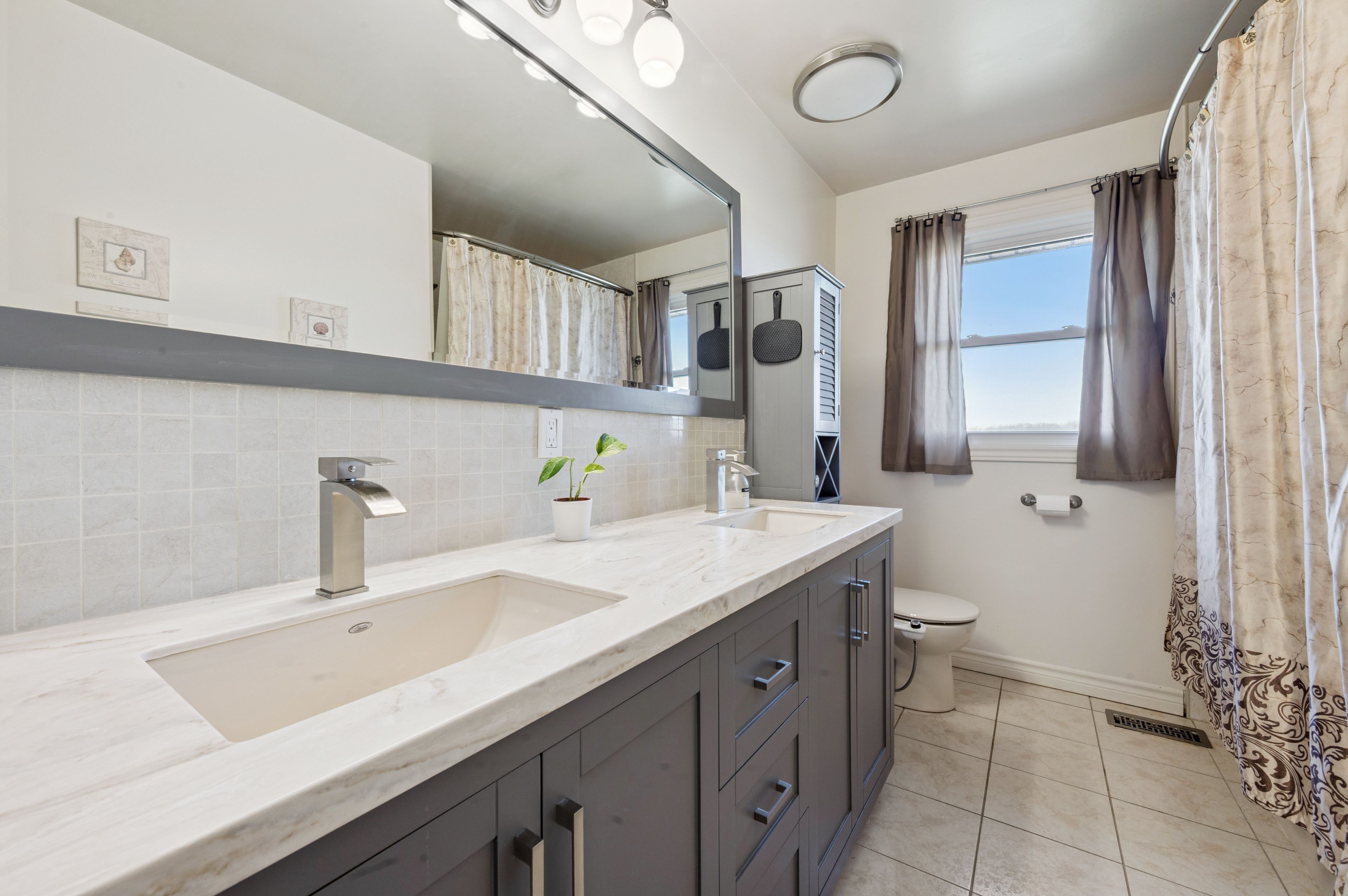 • Fully renovated raised bungalow with modern kitchen and finishes.
