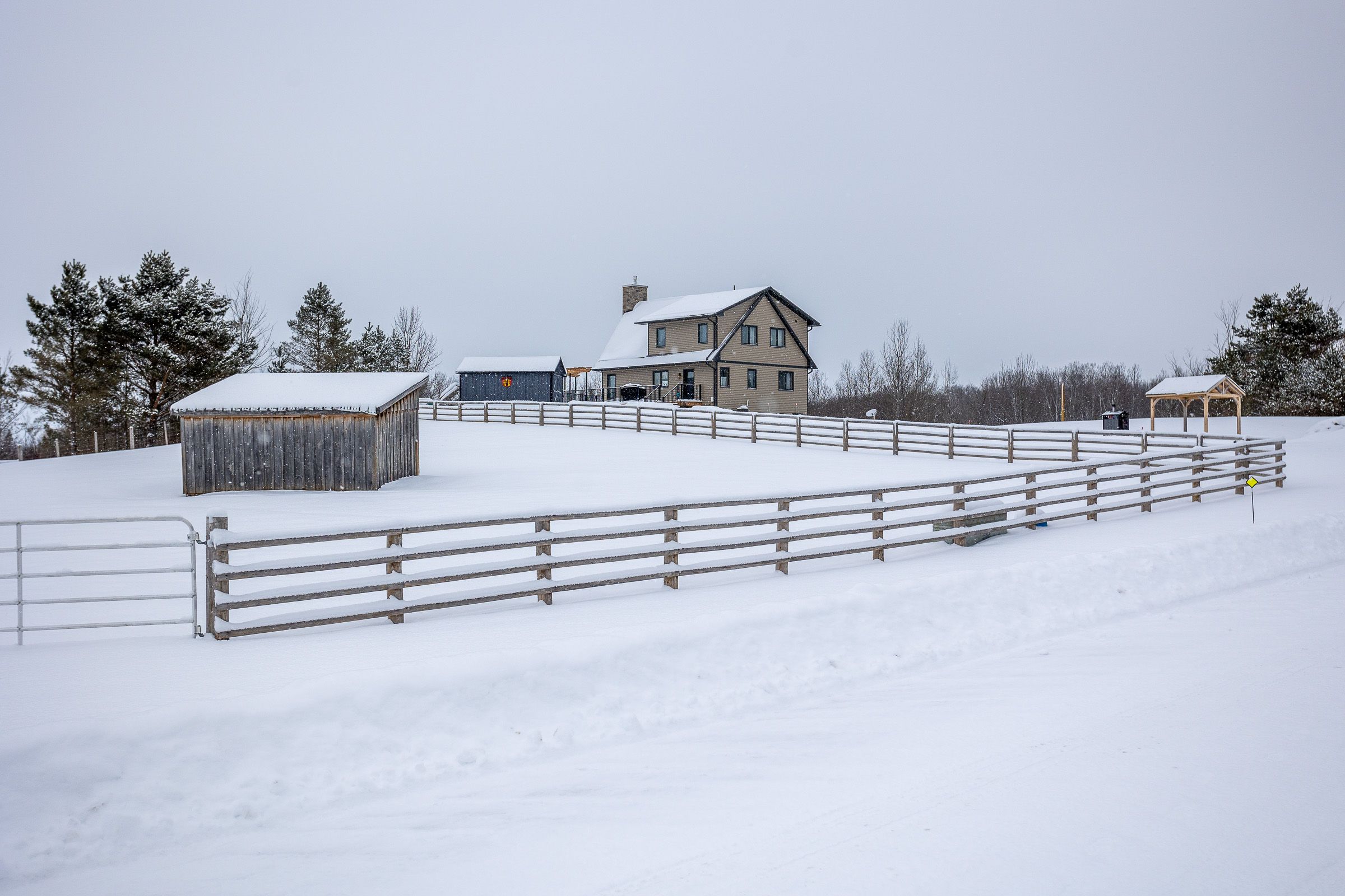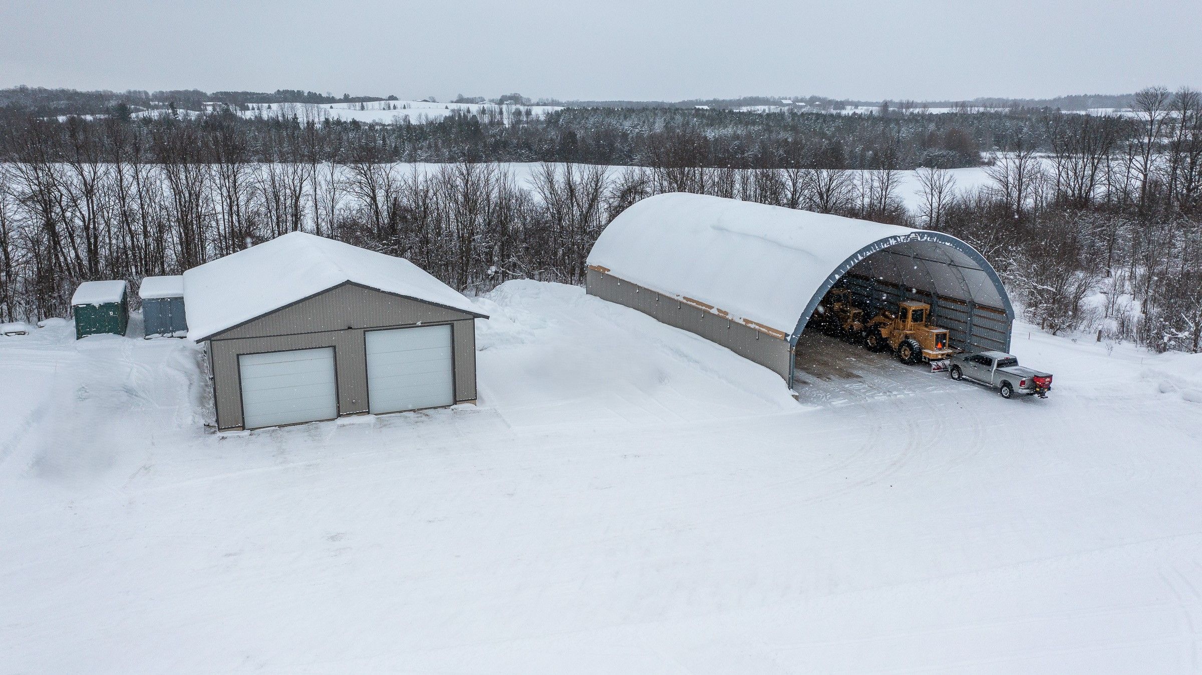 27 acre farm with a shop, storage building and home. Substantial driveway and gravel yard at the 40x60 shop (in-floor heat, 2 roll up doors, steel lined, floor drains, office area, mechanical room) brightspan building is 60x90 (closed back wall, 10' steel frame walls on a 2 foot concrete base). Approximately 20 acres in pasture with fenced fields and paddocks. Home was built in 2023 with the best for country living in mind. Over 2200 square feet of finished living space on 3 levels, including the full walkout basement. All high end finishes. Main level master suite, 2 bedrooms in the upper loft and a 4th bedroom in the basement. Exceptional heating systems include outdoor wood fired furnace and boiler system for forced air and radiant heat with propane backup. Gbtel internet in the house and shop. A1 zoning.