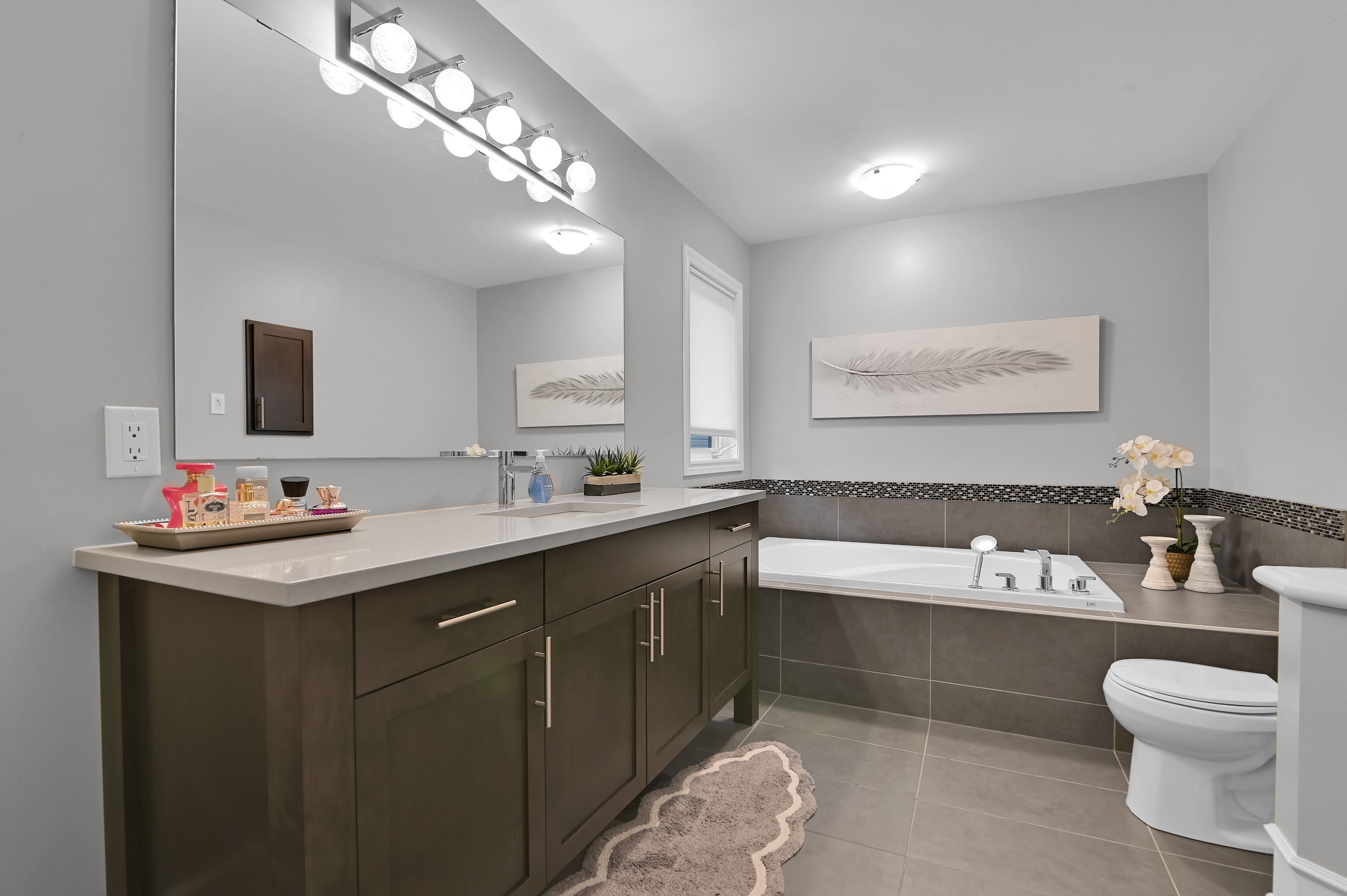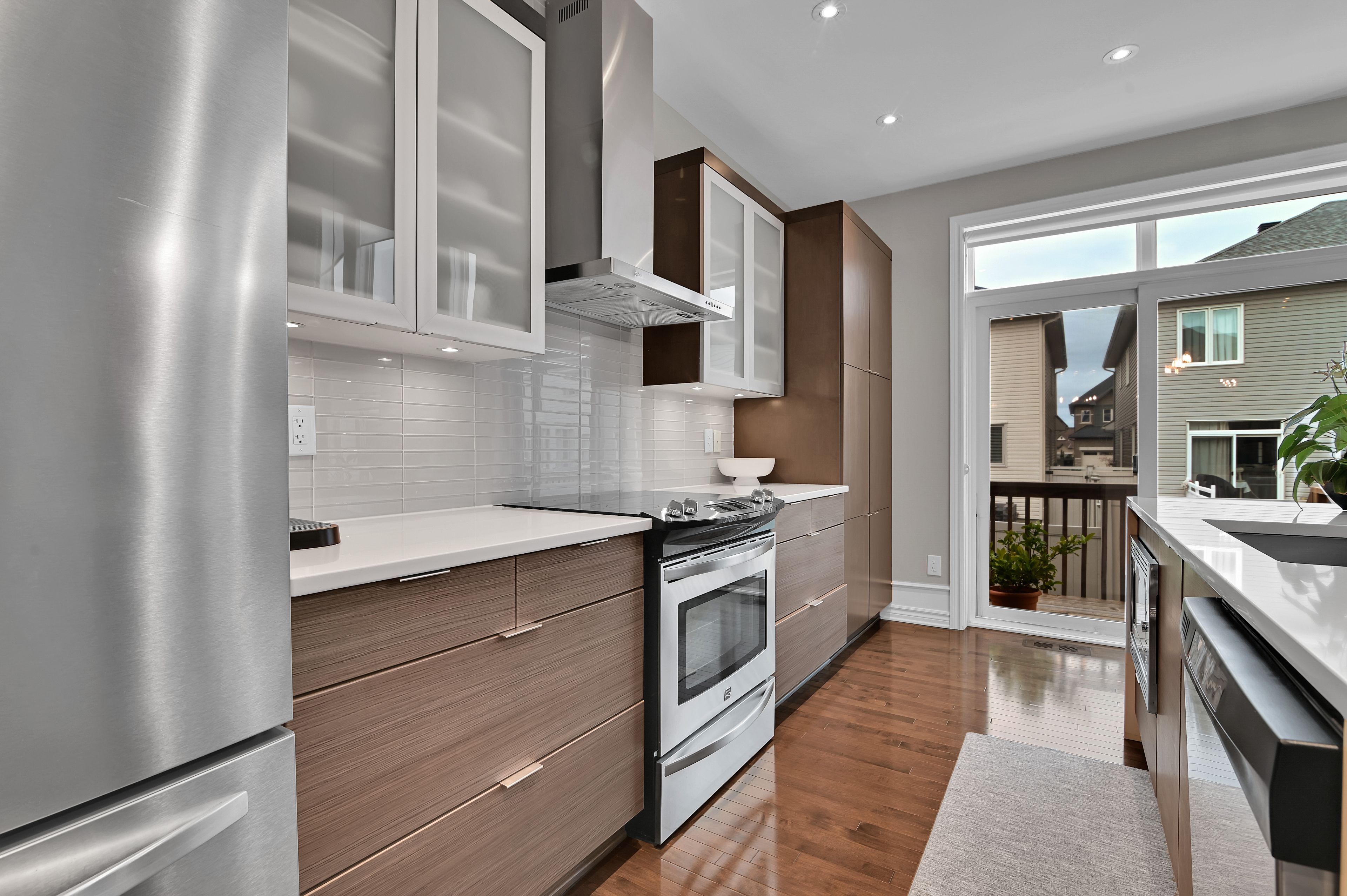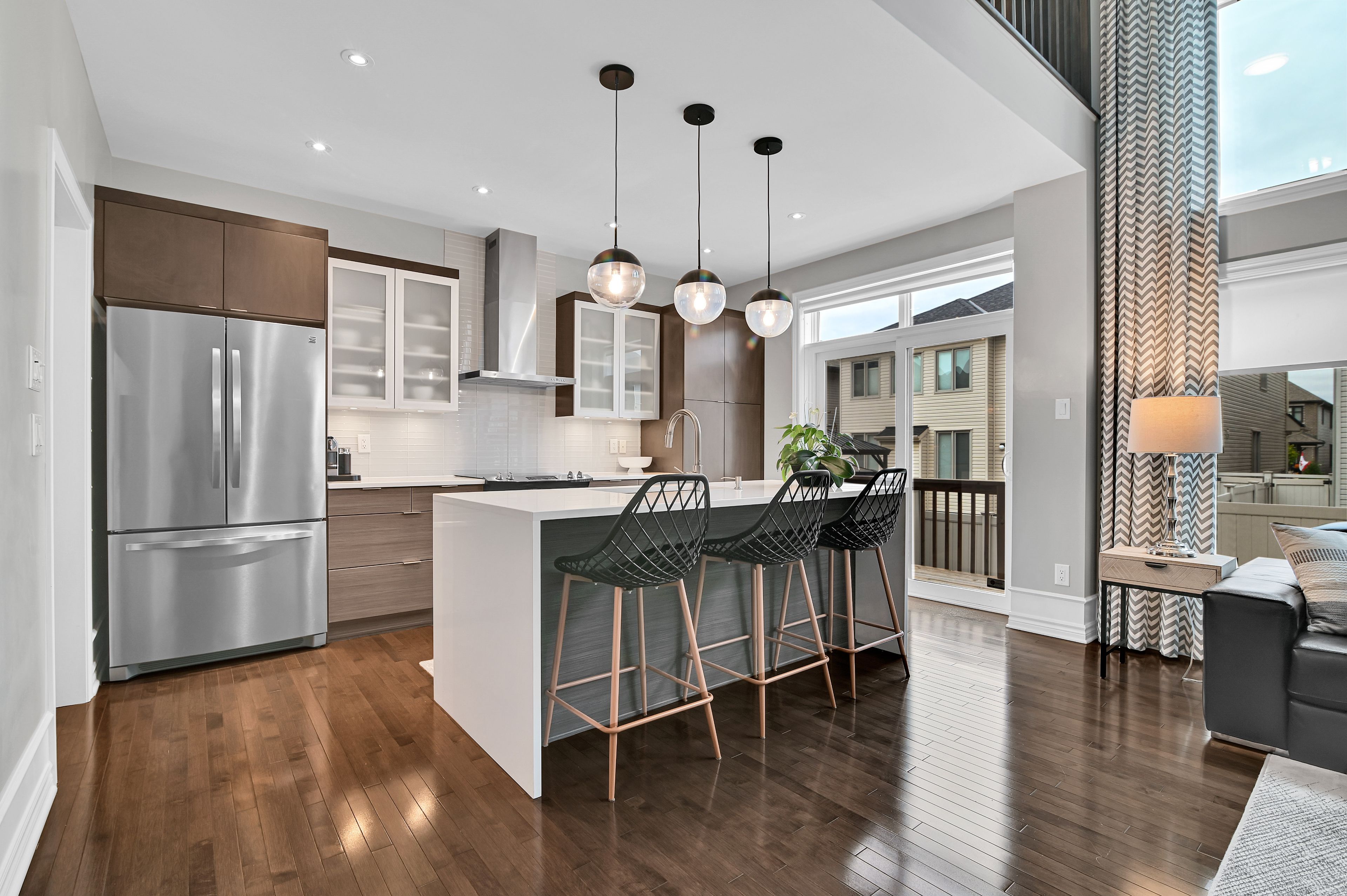 This exquisite 3 bedroom + loft, 4 bath, former model home offers a perfect blend of open concept and modern design creating spacious, well connected living areas and clean aesthetics. The combination of the layout and the soaring windows maximize flow and natural light. Elegant finishes are found throughout this home, along with a consistent, calm color palette. The stunning triple-sided fireplace anchors the main level and is enjoyed from every room. You will love the chef's kitchen with euro cabinets, striking waterfall quartz counter on the oversized island, multiple work surfaces and storage that maximizes space and functionality. Adding to the main level is the generous foyer with 2 closets, a 2 piece powder room and a designated mud room with custom built-in cabinetry for keeping things organized. The upper level provides 3 spacious bedrooms including the primary which offers a luxurious spa-like ensuite, walk-in closet and access to a private balcony! There is also a large loft overlooking the family room offering a spacious, airy feel and can be used for a variety of purposes. The laundry room with useful added cabinetry and upgraded main bath complete the second level. The expansive, professionally finished basement offers versatile living space and is complete with a beautifully finished 4 piece bathroom and plenty of storage. On the exterior you will appreciate the welcoming curb appeal, exterior potlights, beautifully landscaped backyard with interlock patio and gas hook-up for bbq. This property is a must see and is sure to please those looking for something truly special! Ideally located close to public transportation, reputable schools, retail and more. Carpeting on stairs to 2nd level replaced in 2025. Some rooms freshly painted.