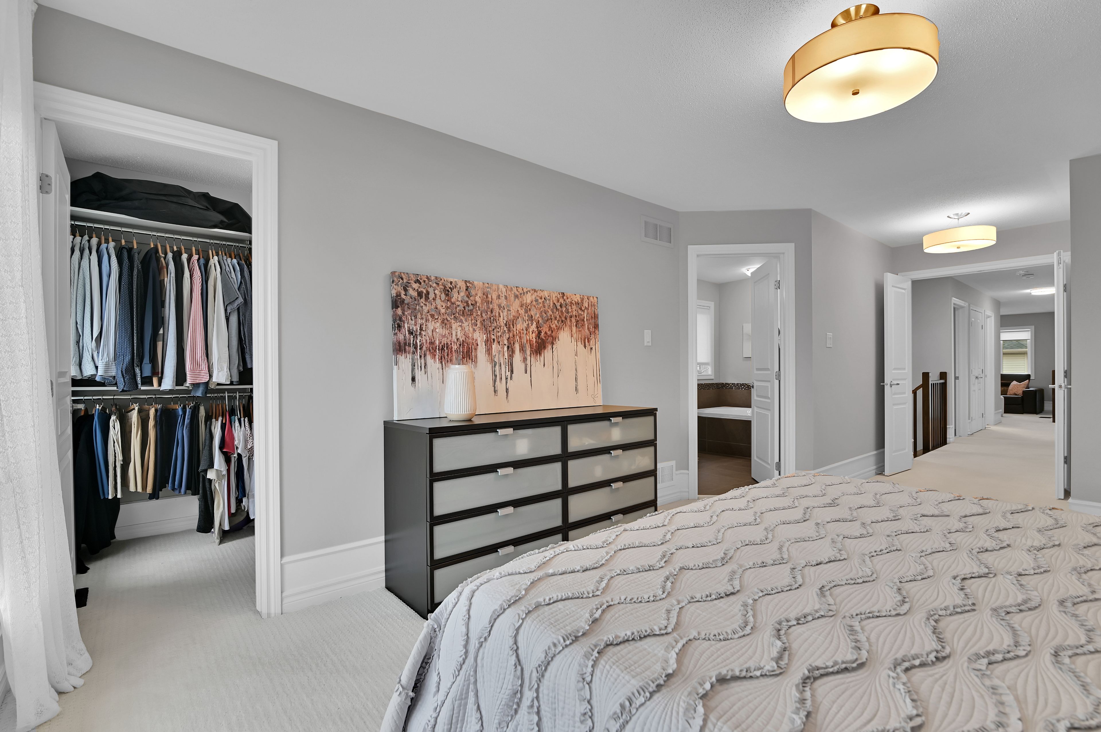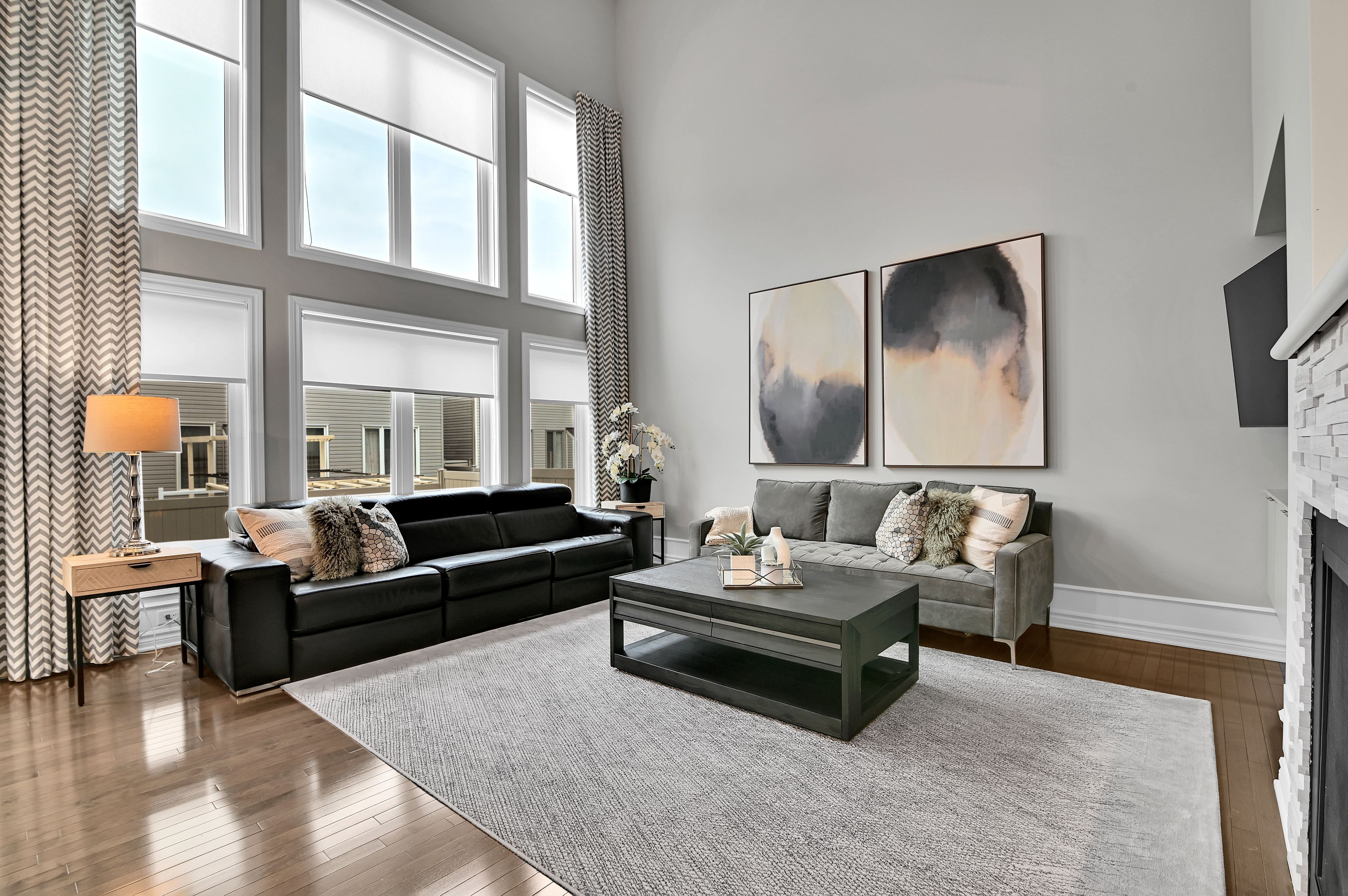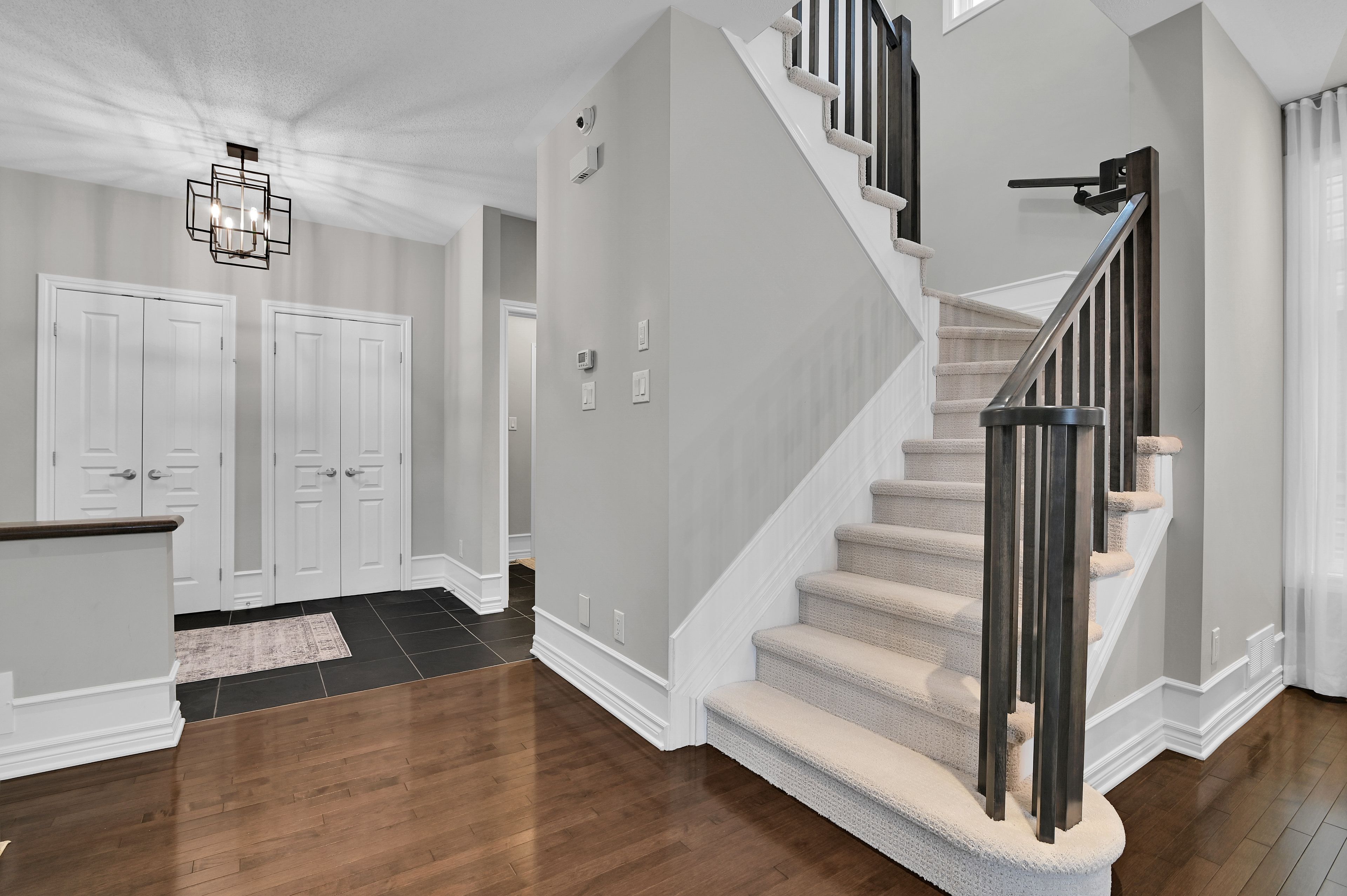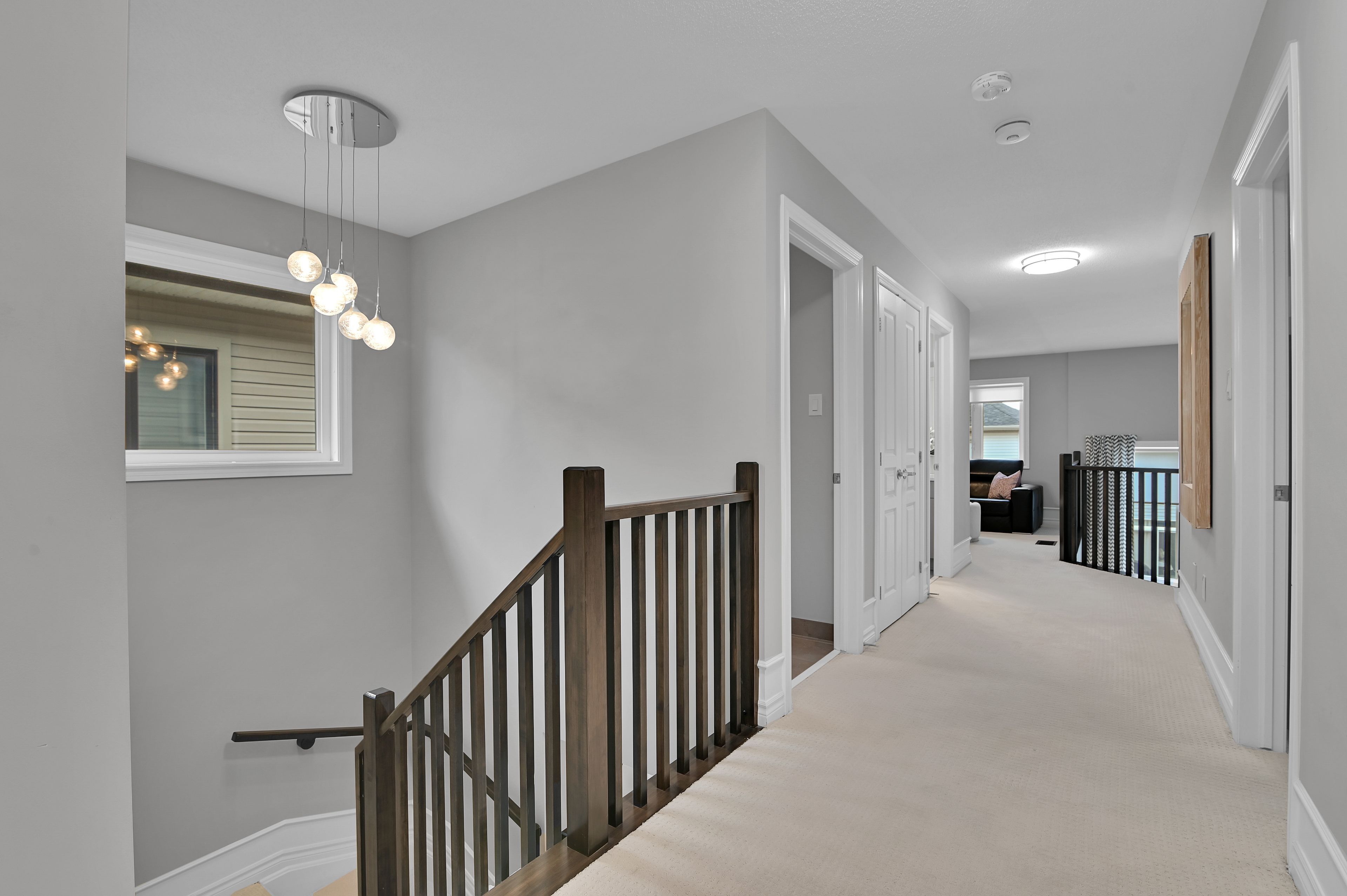 This exquisite 3 bedroom + loft, 4 bath, former model home offers a perfect blend of open concept and modern design creating spacious, well connected living areas and clean aesthetics. The combination of the layout and the soaring windows maximize flow and natural light. Elegant finishes are found throughout this home, along with a consistent, calm color palette. The stunning triple-sided fireplace anchors the main level and is enjoyed from every room. You will love the chef's kitchen with euro cabinets, striking waterfall quartz counter on the oversized island, multiple work surfaces and storage that maximizes space and functionality. Adding to the main level is the generous foyer with 2 closets, a 2 piece powder room and a designated mud room with custom built-in cabinetry for keeping things organized. The upper level provides 3 spacious bedrooms including the primary which offers a luxurious spa-like ensuite, walk-in closet and access to a private balcony! There is also a large loft overlooking the family room offering a spacious, airy feel and can be used for a variety of purposes. The laundry room with useful added cabinetry and upgraded main bath complete the second level. The expansive, professionally finished basement offers versatile living space and is complete with a beautifully finished 4 piece bathroom and plenty of storage. On the exterior you will appreciate the welcoming curb appeal, exterior potlights, beautifully landscaped backyard with interlock patio and gas hook-up for bbq. This property is a must see and is sure to please those looking for something truly special! Ideally located close to public transportation, reputable schools, retail and more. Carpeting on stairs to 2nd level replaced in 2025. Some rooms freshly painted.