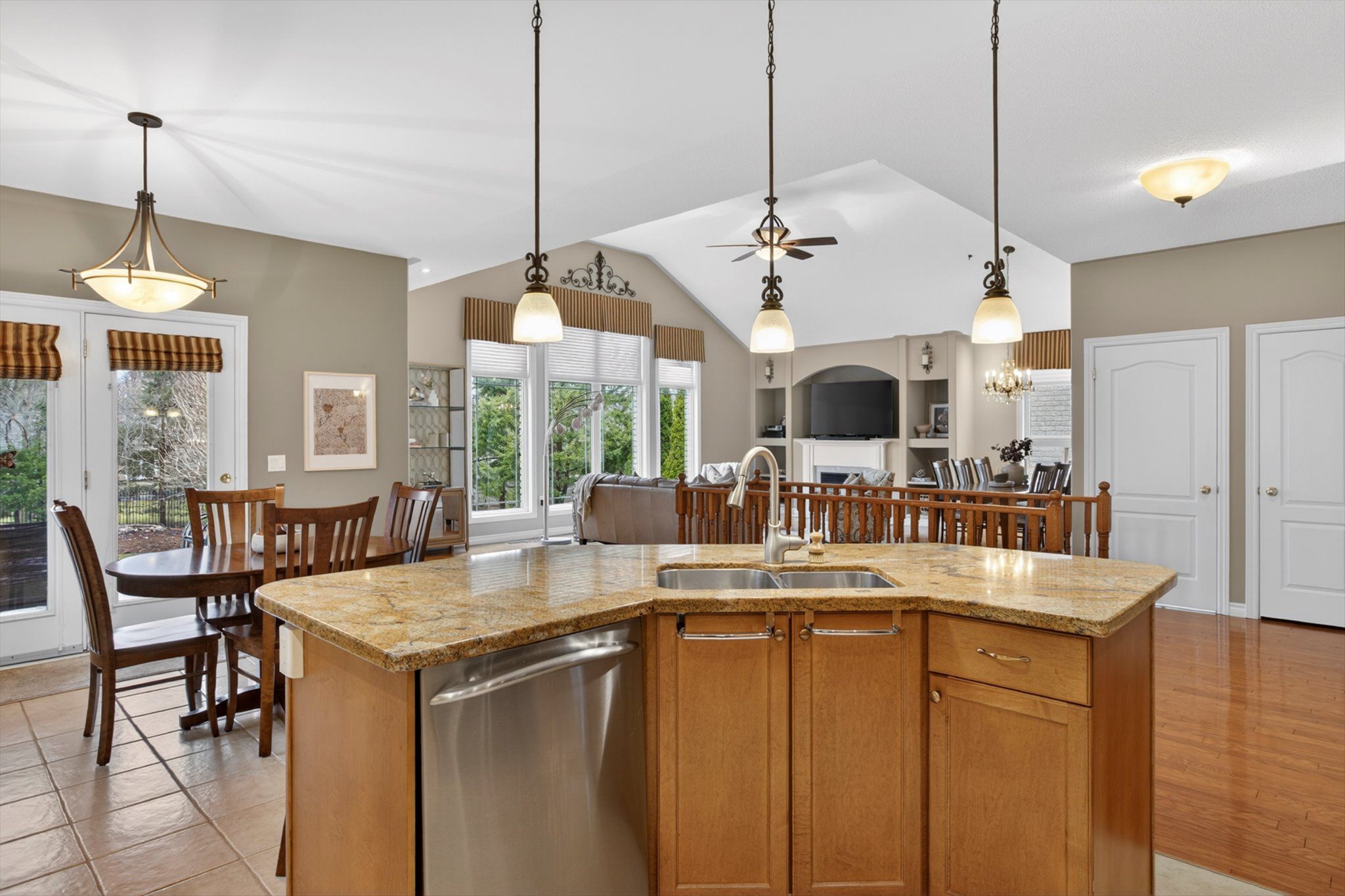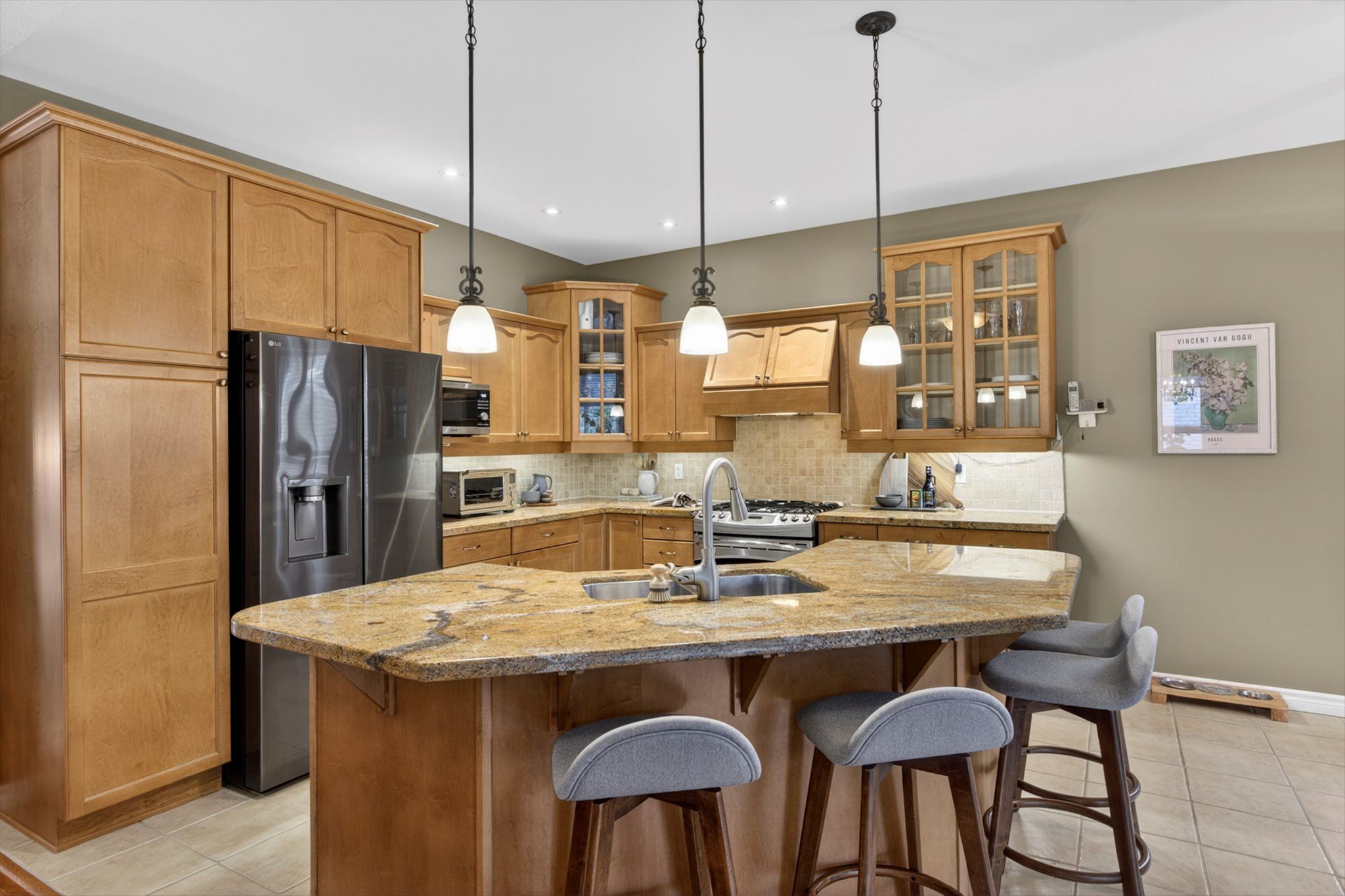 • Chef-inspired kitchen with breakfast bar and ample cabinetry.
