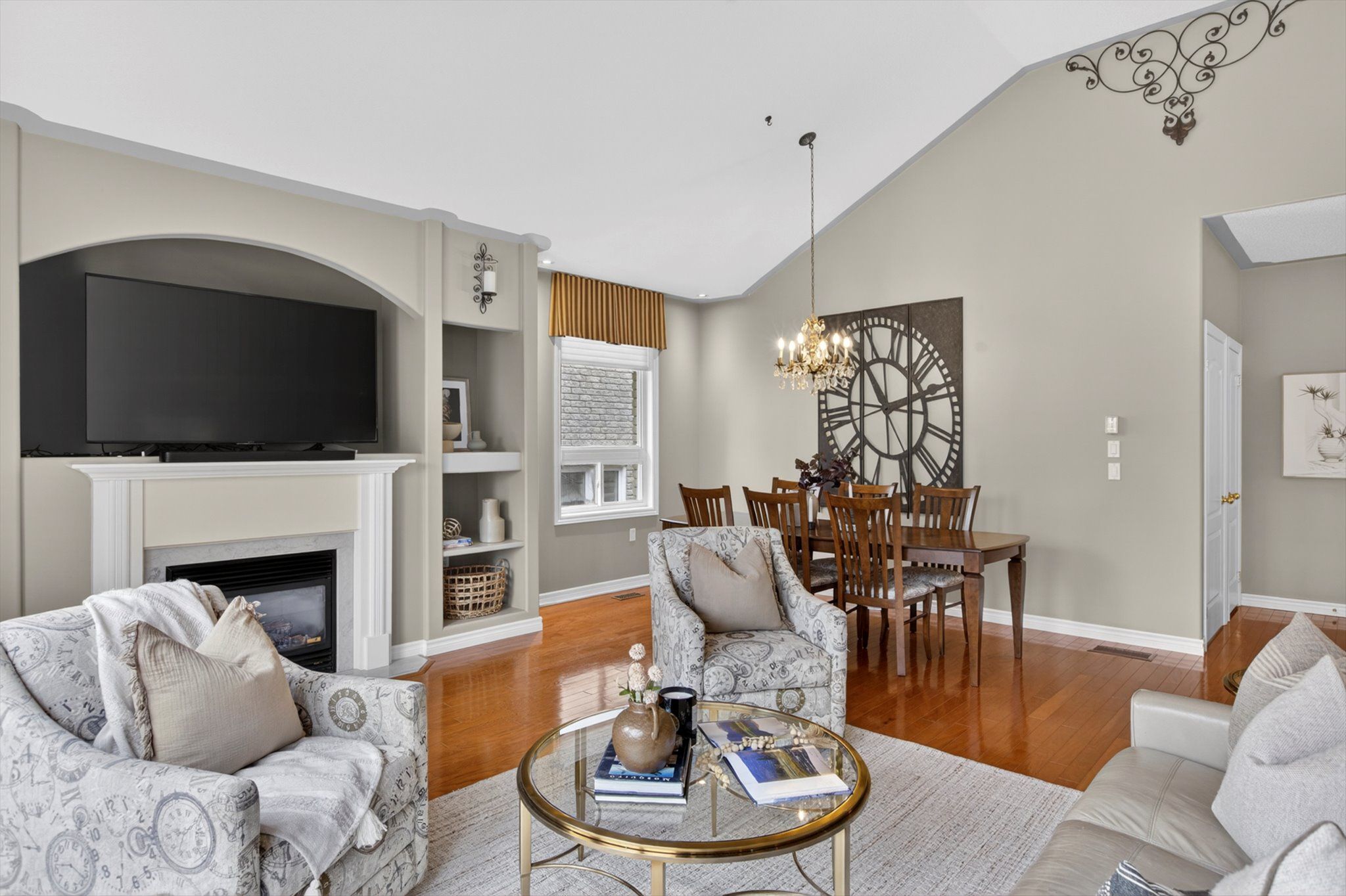 • Vaulted ceilings and gas fireplace create a warm atmosphere.