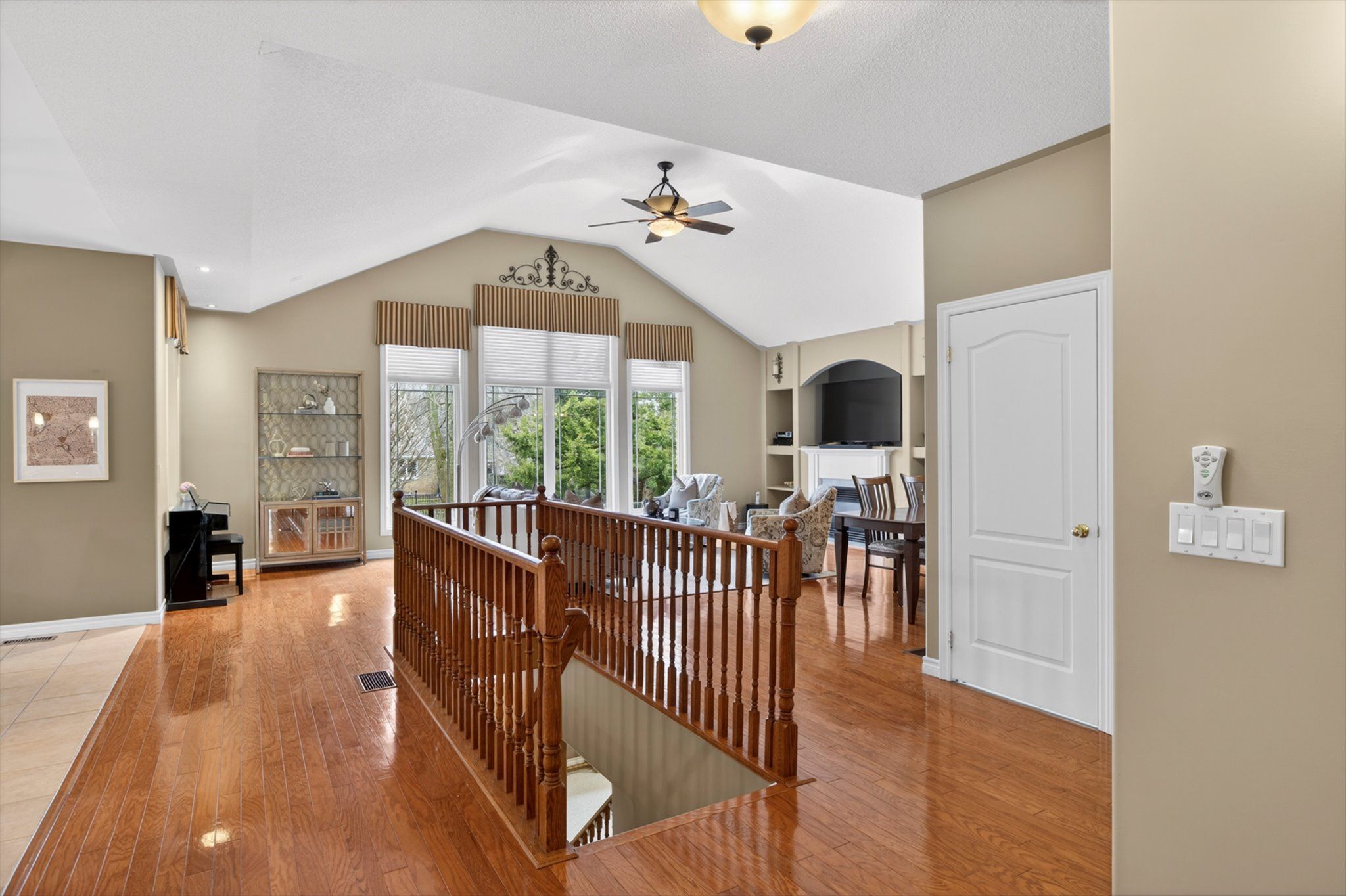 Fabulous 2+2 bedroom, 3 bath bungaloft built by parkview homes in peterborough's preferred west end. This hunter's ridge home offers open concept living space on the main floor with vaulted ceilings, gas fireplace and hardwood flooring along with a main floor bedroom being used as an office, full bath, main floor laundry as well as, large chef inspired eat-in kitchen with breakfast bar and loads of cabinetry. The loft level primary suite boasts a walk in closet ,as well as a full 5pc ensuite bath. The lower level is finished with a large recreation room as well as two guest bedrooms and a third full bath. This home is minutes to the #115 for commuting, schools, parks, nature trails, and all major amenities.