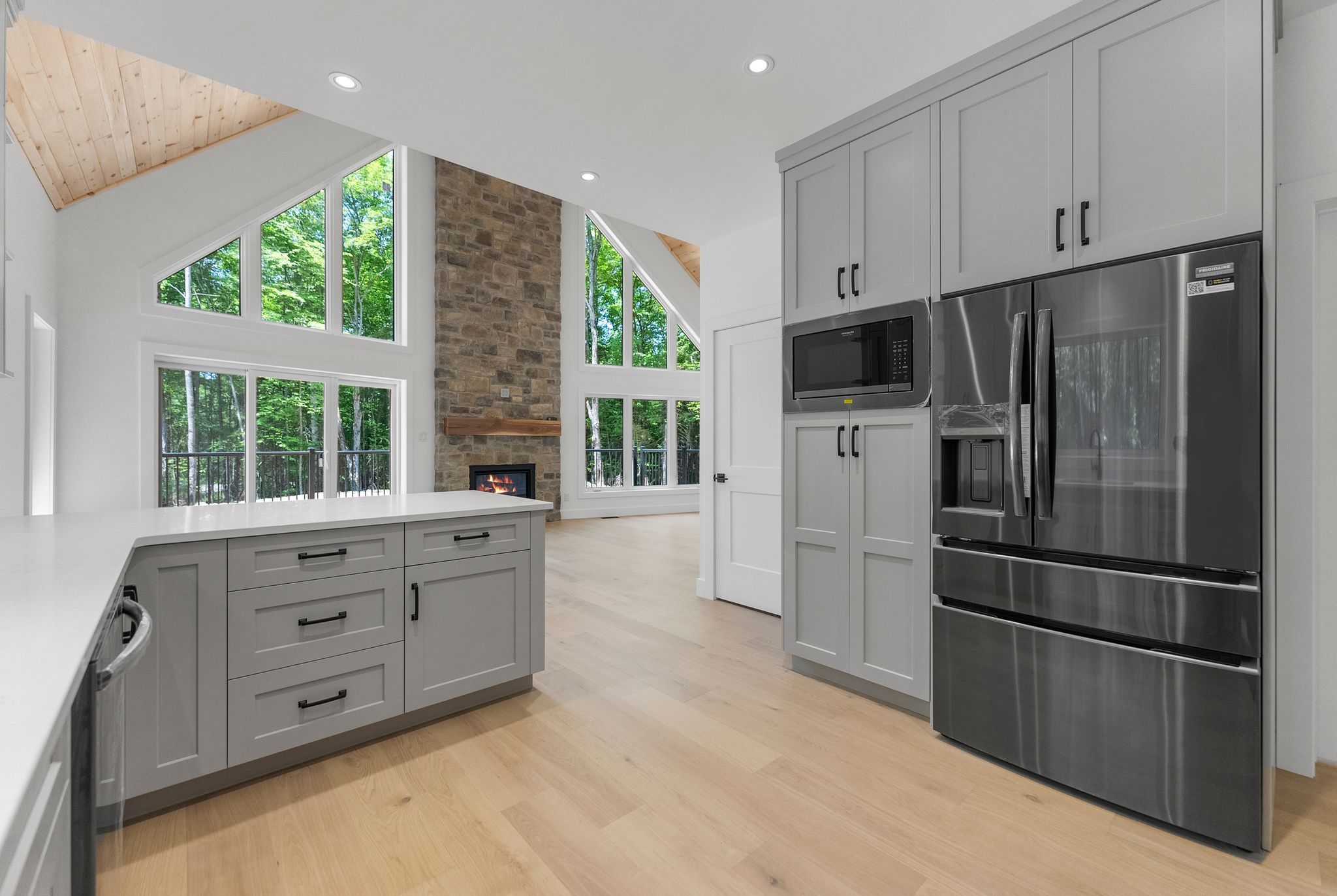 Welcome to 743 lakewoods drive, located in true north lakewoods estates steps from bark lake. Newly built 2 storey loft-style home set on 2. 77-acre lot. Year-round access via municipally maintained road, this home offers the perfect opportunity for full-time living, a weekend escape, or a lifestyle investment. The home features 3 bedrooms and 2. 5 bathrooms. The primary bedroom is located on the main level and includes a walk-in closet and ensuite, while two additional bedrooms upstairs, offering privacy and flexibility for guests or family. A bright and open-concept main living area is enhanced by floor-to-ceiling windows and a patio door that leads to a wrap-around deck. The kitchen offers generous cabinetry, complete with quartz countertops, a walk-in pantry, and brand-new stainless steel appliances. Engineered hardwood flooring brings warmth, while a striking stone fireplace with a classic mantle anchors the living room, creating a welcoming space to gather. This home features insulated icf foundation, in-floor heating, a forced air propane furnace, central air conditioning, and hot water on demand. The full, unfinished basement includes a rough-in for a future bathroom and offers abundant space for storage, or future development. A curved driveway adds privacy from the road, and the landscaped yard offers a blank canvas for your outdoor dreams. A generator transfer switch is already in place, providing peace of mind during every season. Optional dock slips and a public boat launch are just a short walk away, offering convenient access to one of the regions most scenic lakes. Bark lake is surrounded by is 90% crown land. A nearby waterfall and access to extensive atv & snowmobile make this a haven for outdoor enthusiasts in every season. Just 15 kilometres from barrys bay, this home offers the perfect balance of nature and convenience, with nearby access to shopping, dining, healthcare, and local amenities. This home comes equipped with tarion warranty.