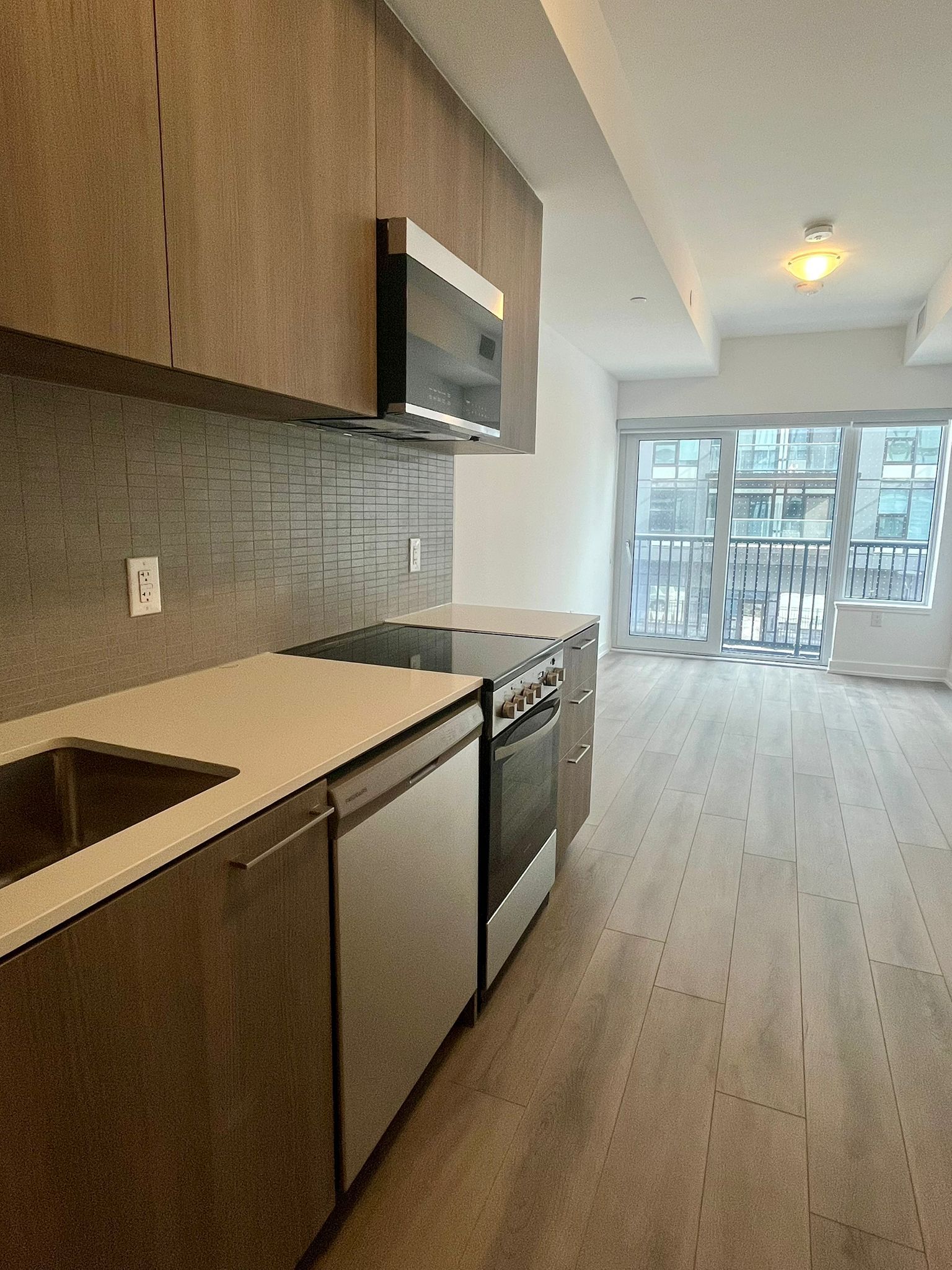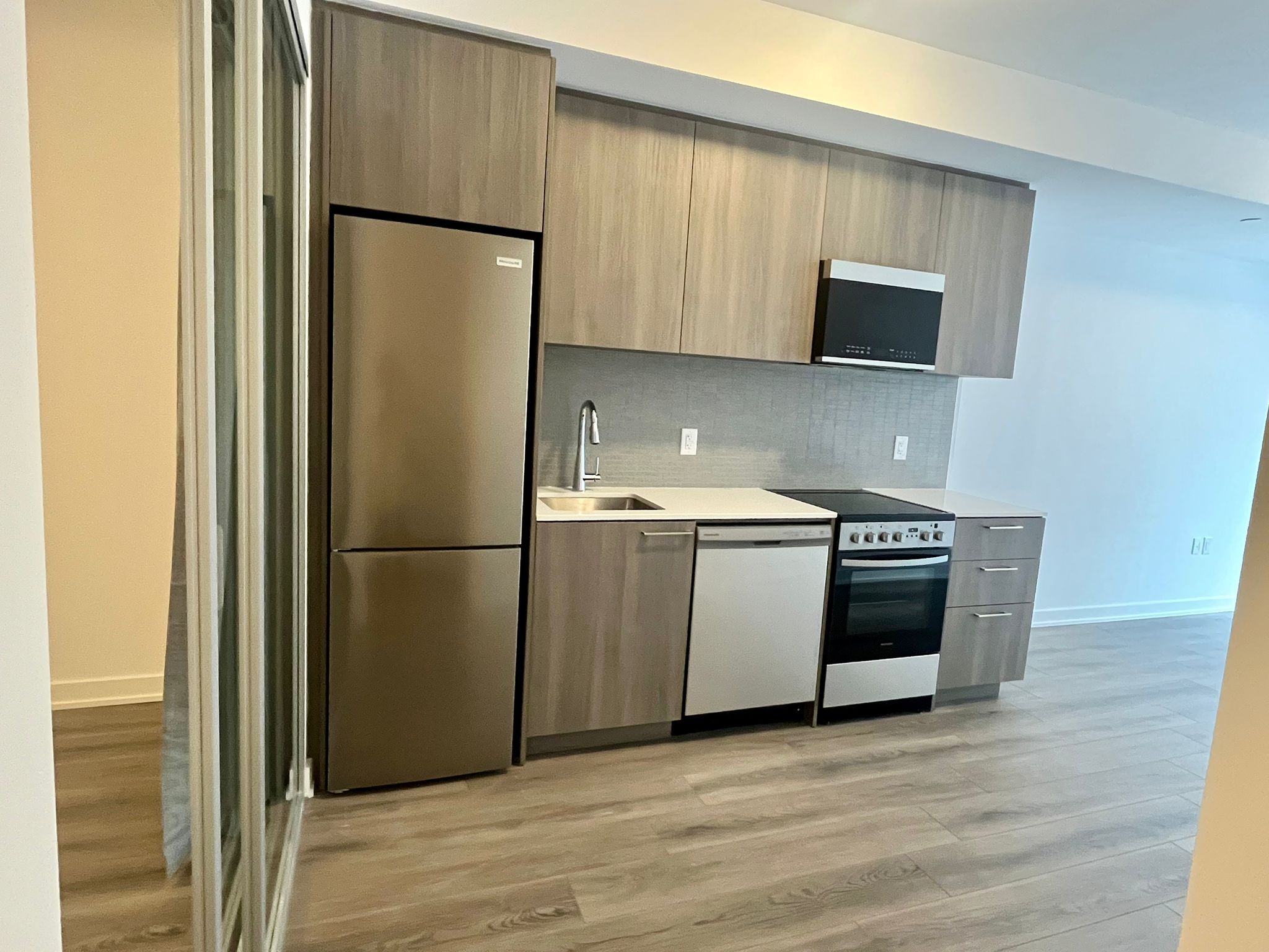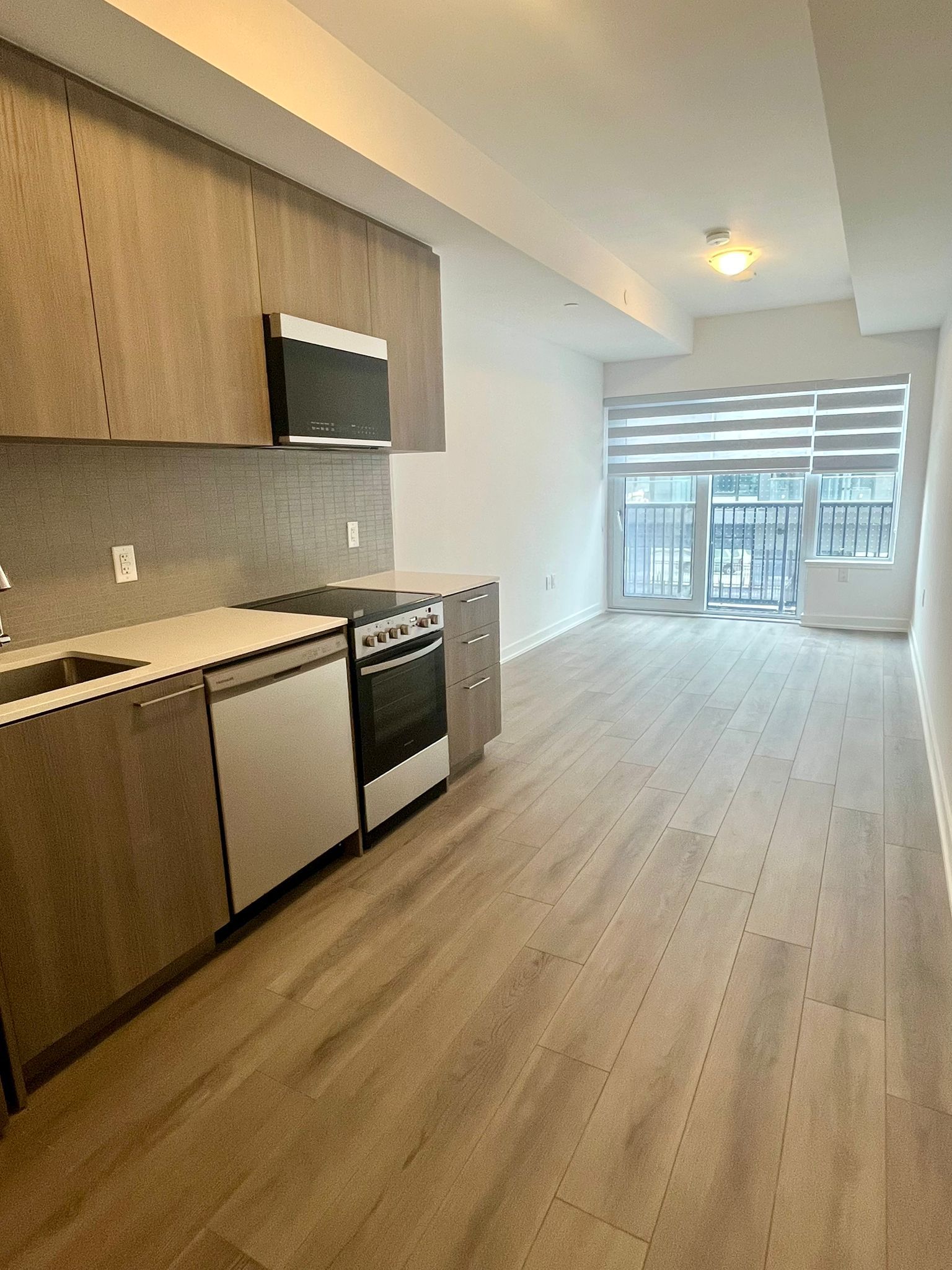 Welcome to this brand new 1-bedroom suite with parking (538sf)in the narrative condos(tower b), located in the vibrant and growing rouge community. Thoughtfully designed with a functional layout and modern finishes, this suite offers comfortable urban living with style and convenience. The contemporary kitchen features sleek quartz countertops, stainless steel appliances, and ample cabinetry, creating a perfect space for cooking and entertaining. The bright and inviting living area is complemented by premium laminate flooring throughout and a charming juliette balcony, allowing natural light to fill the space and providing a refreshing indoor-outdoor feel. The well-appointed 4-piece bathroom offers clean, modern finishes, while convenient in-suite laundry adds everyday practicality. Residents of the narrative enjoy access to a wide range of premium building amenities, including a concierge, fully equipped fitness center, yoga studio, coworking space, party room, games room, and an outdoor terrace complete with bbqs and a playground-perfect for relaxing, entertaining, or staying active without leaving home. Ideally situated just minutes from highway 401, ttc transit, rouge go station, shopping, schools, and beautiful parks, this location offers excellent connectivity while still being close to nature and everyday conveniences. An ideal opportunity for professionals or couples looking to enjoy modern living in a well-connected community.