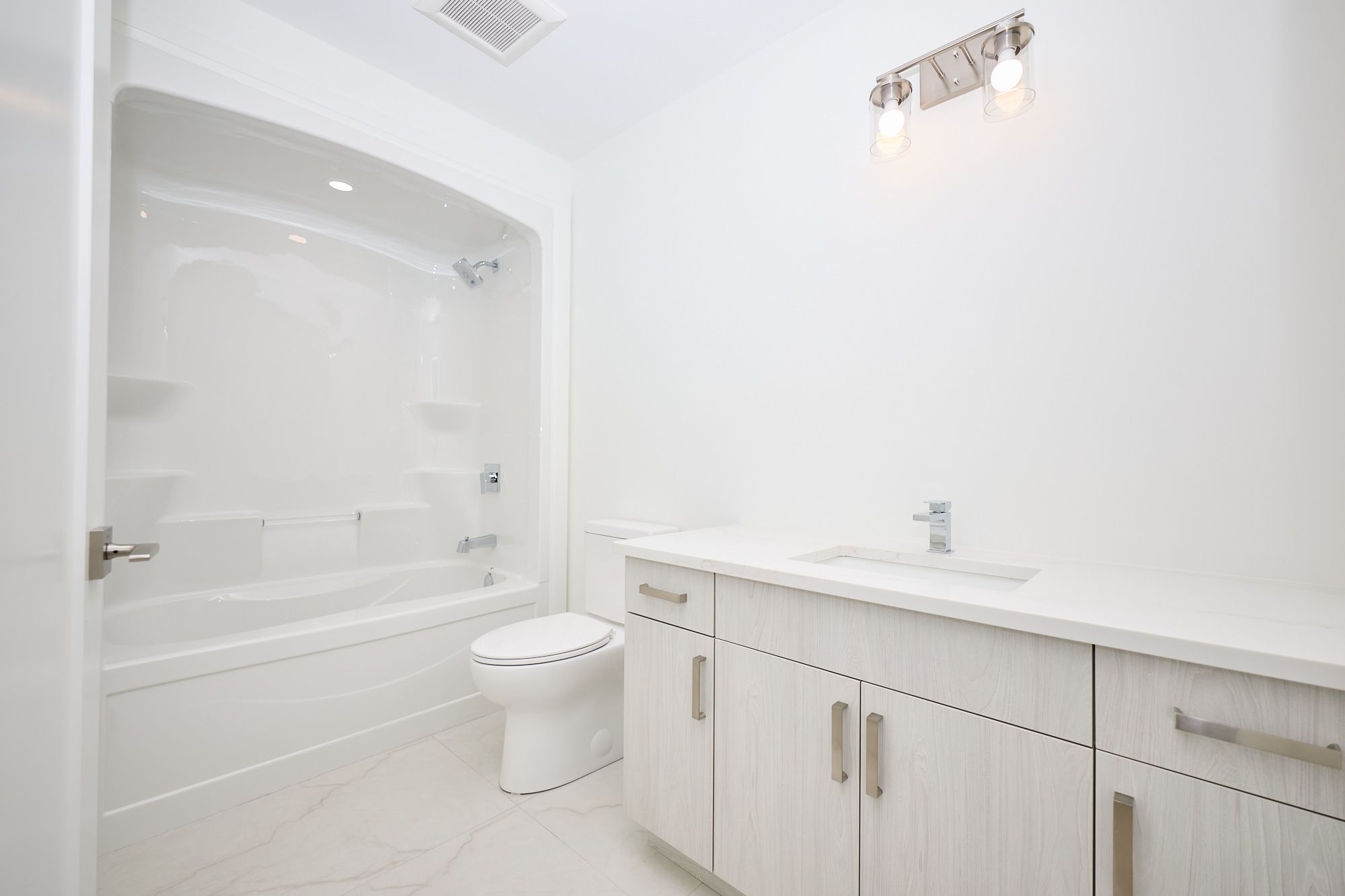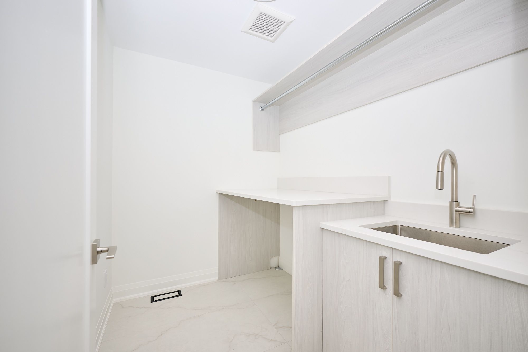 • Modern kitchen featuring quartz countertops and a large centre island.