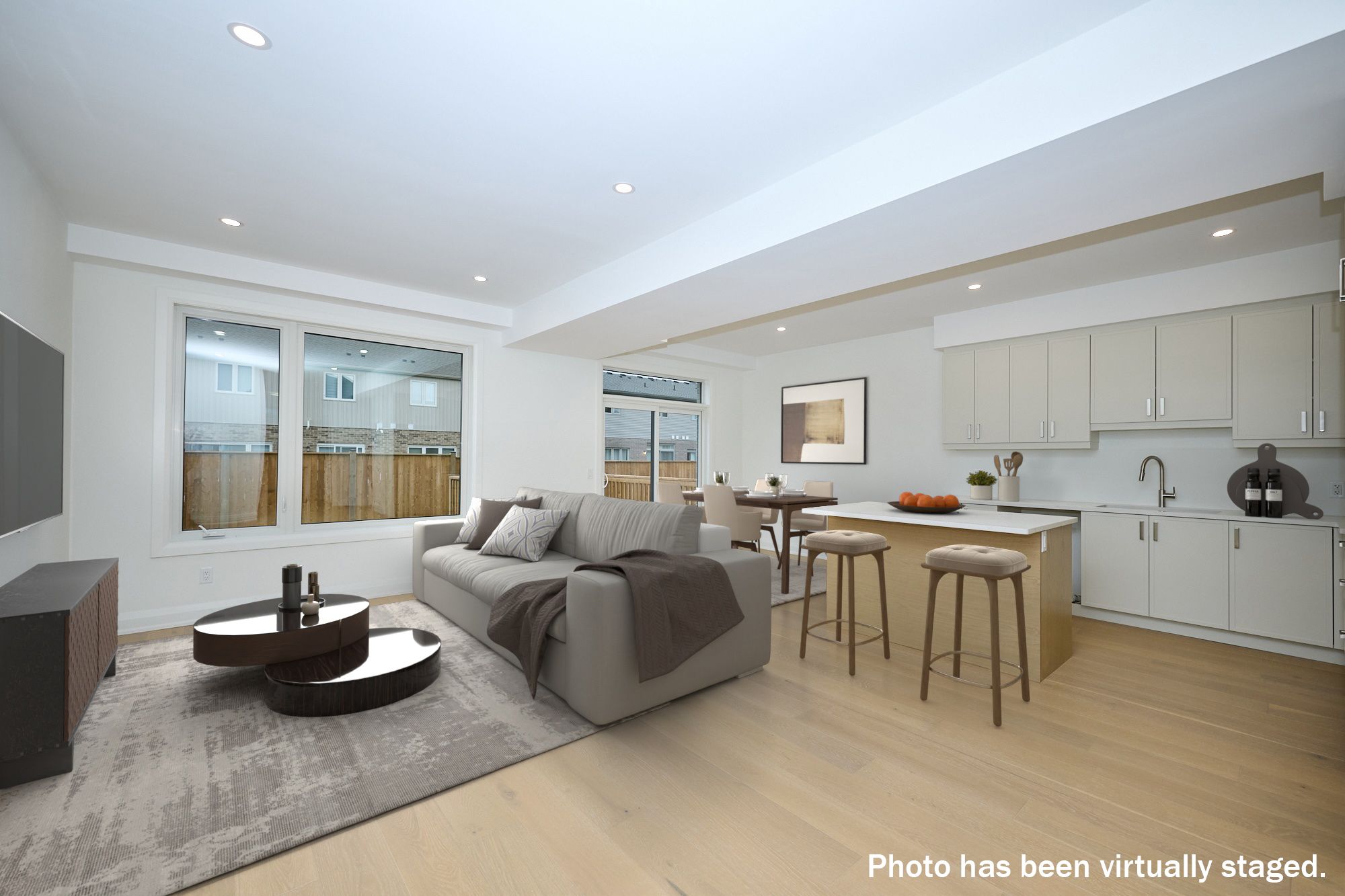 • Open-concept main floor with natural light and access to private yard.