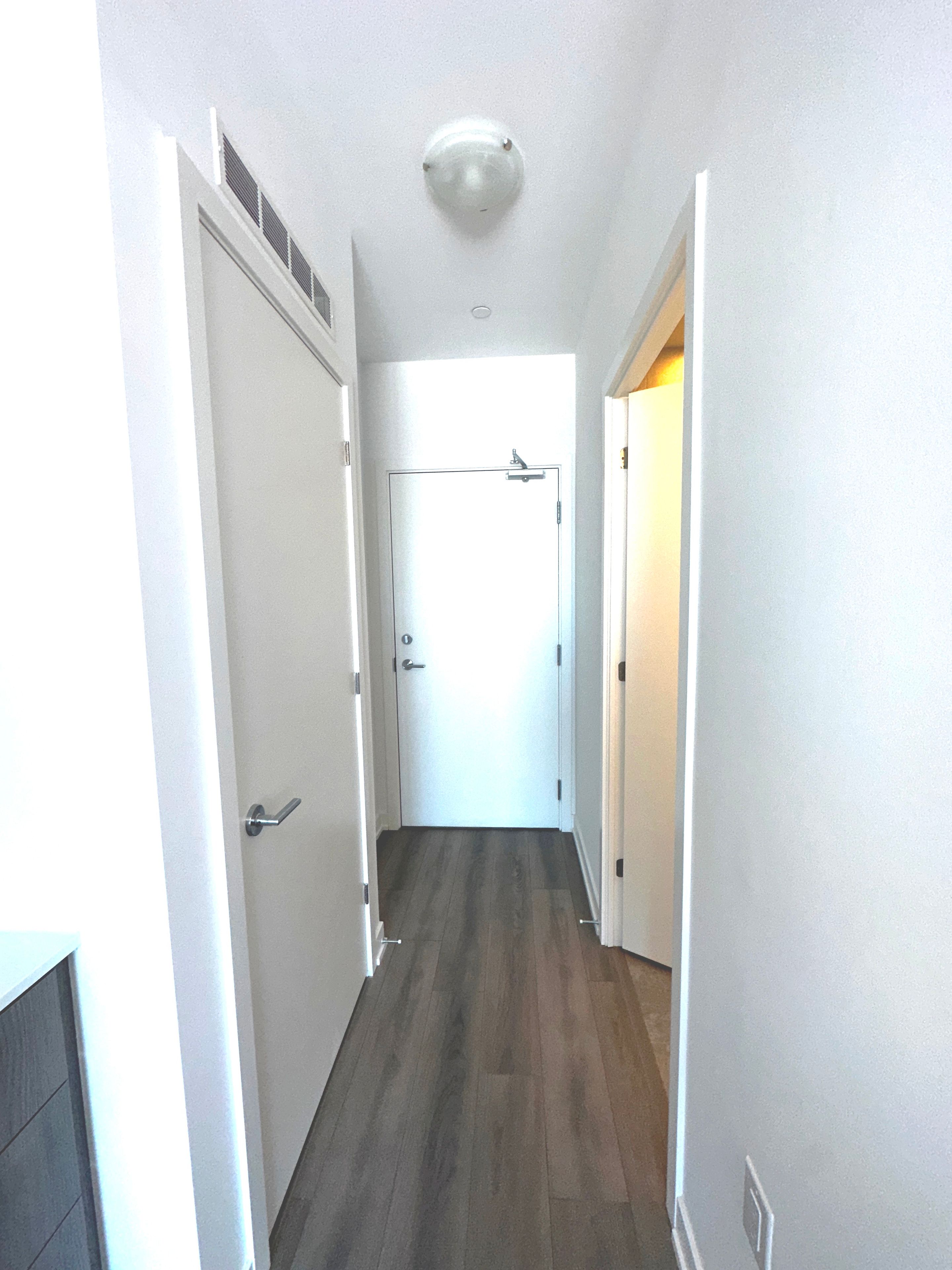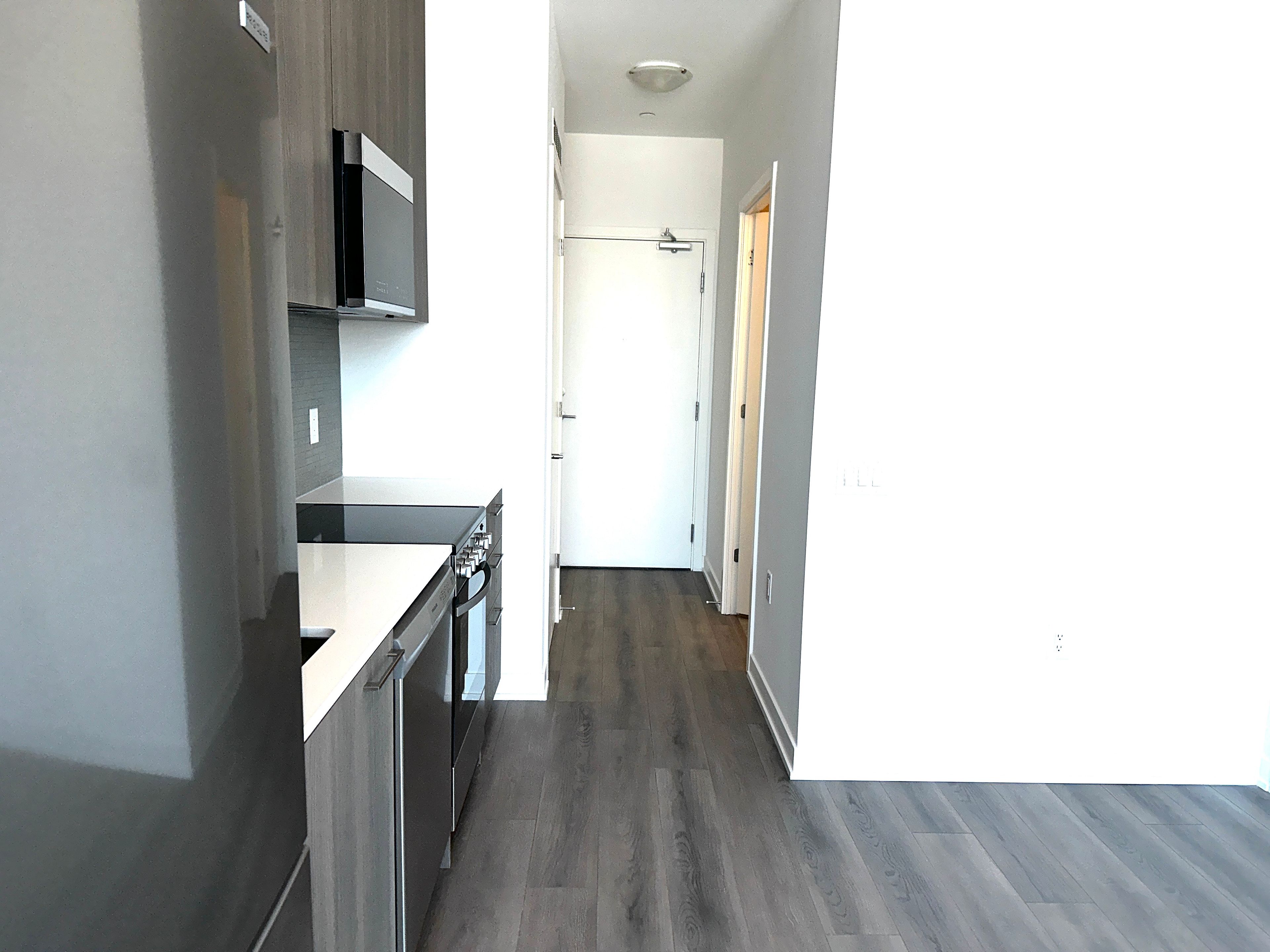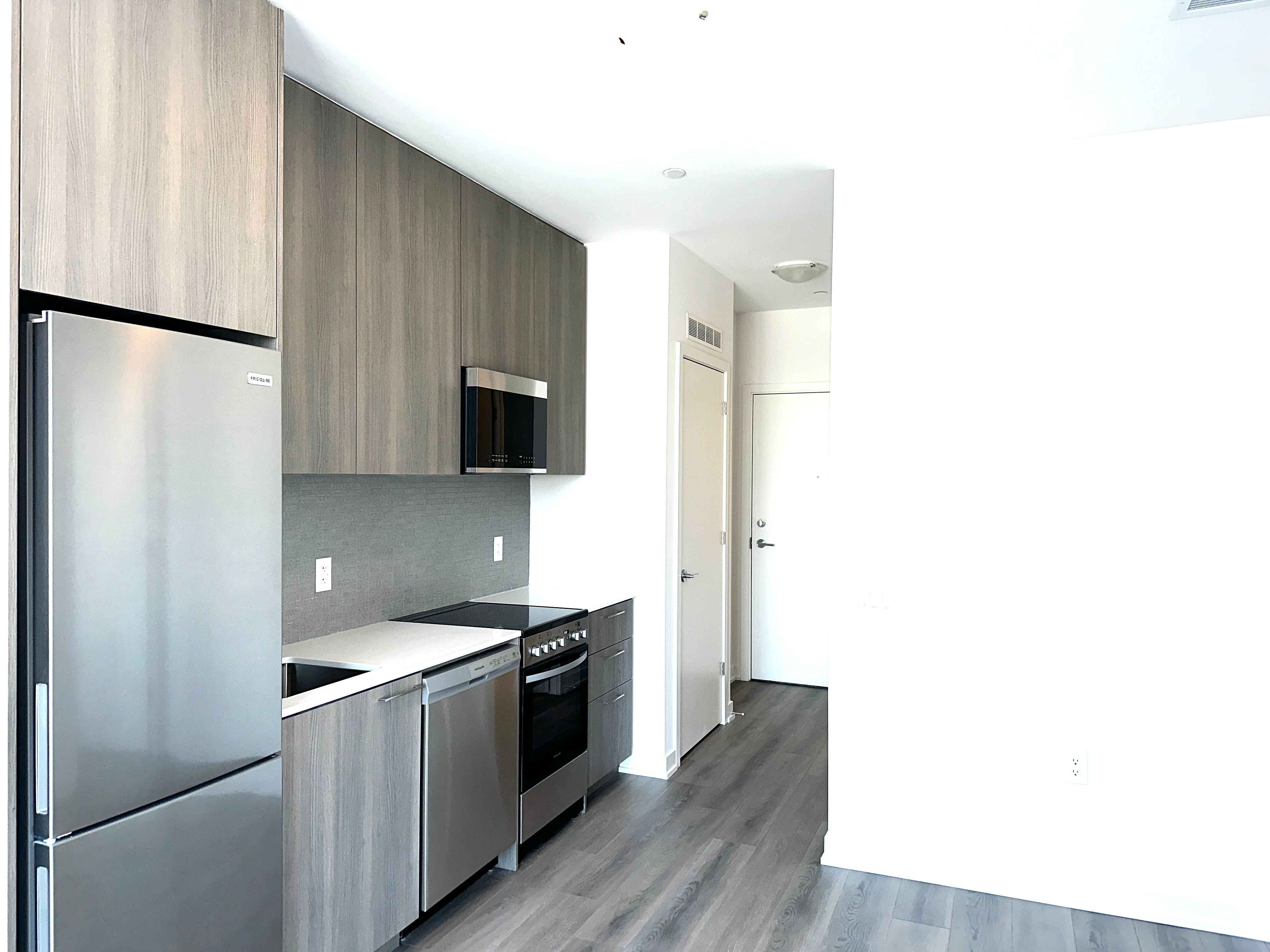 Brand new condo (narrative condos) located near scarborough/pickering border. Ideal for single or couple. Carpet-free unit with engineered laminate flooring throughout & soaring 10 ft ceilings. Bright open-concept layout with walk-out to balcony featuring beautiful open view. Modern kitchen with stainless steel appliances, quartz counters & backsplash. Spacious primary bedroom with oversized window . Convenient in-suite laundry. Building amenities include gym & party room. Minutes to hwy 401, transit, shopping, restaurants & trails.