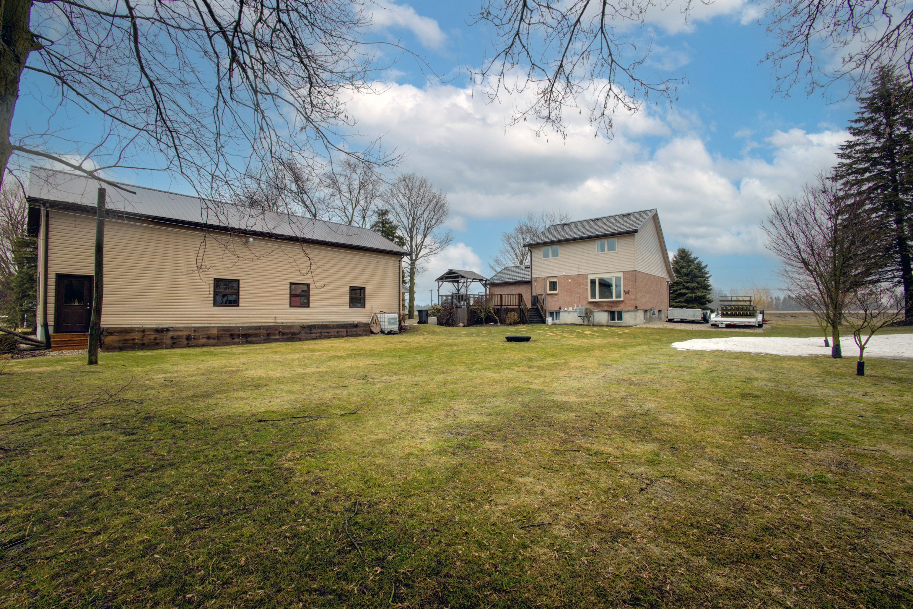 Country living at its best immaculate 3 plus 1 bedroom 1 1/2 storey cape cod style home approx 33 years old large eat in kitchen with newer cupboards, ceramic floor, living room with hardwood flooring, 2 pc bath, 3 bedrooms and 4 pc bath with new vanity, on 2nd level finished basement. 3 year old standby generator so your never without hydro. 4 year old insulated heated shop 26 x 54 with 12 x 14 roll up door and mezzanine for storage or party room. Property backs onto agriculture land for more privacy, call your realtor today to look at this beautiful property and all the updates including a 50 year steel roof in 2017(hygrade)