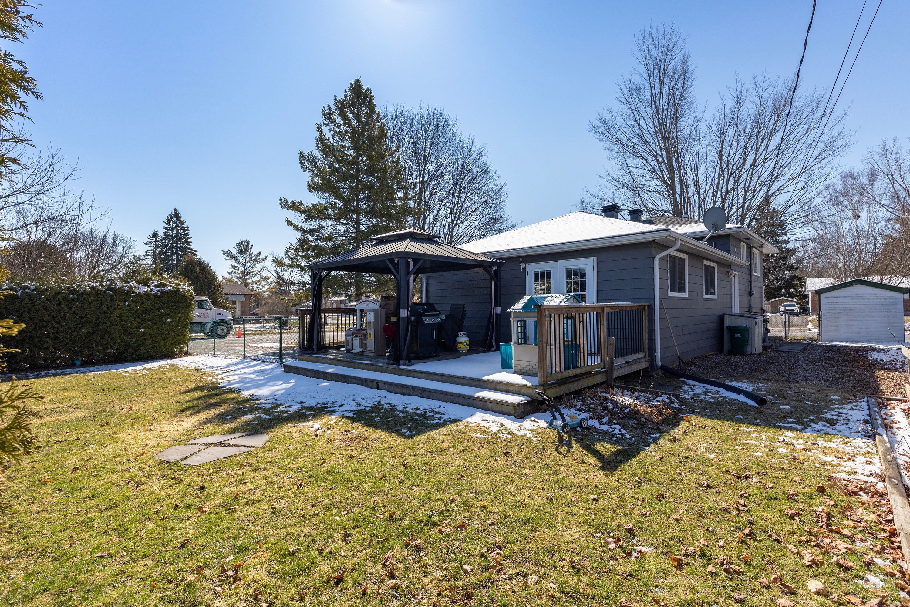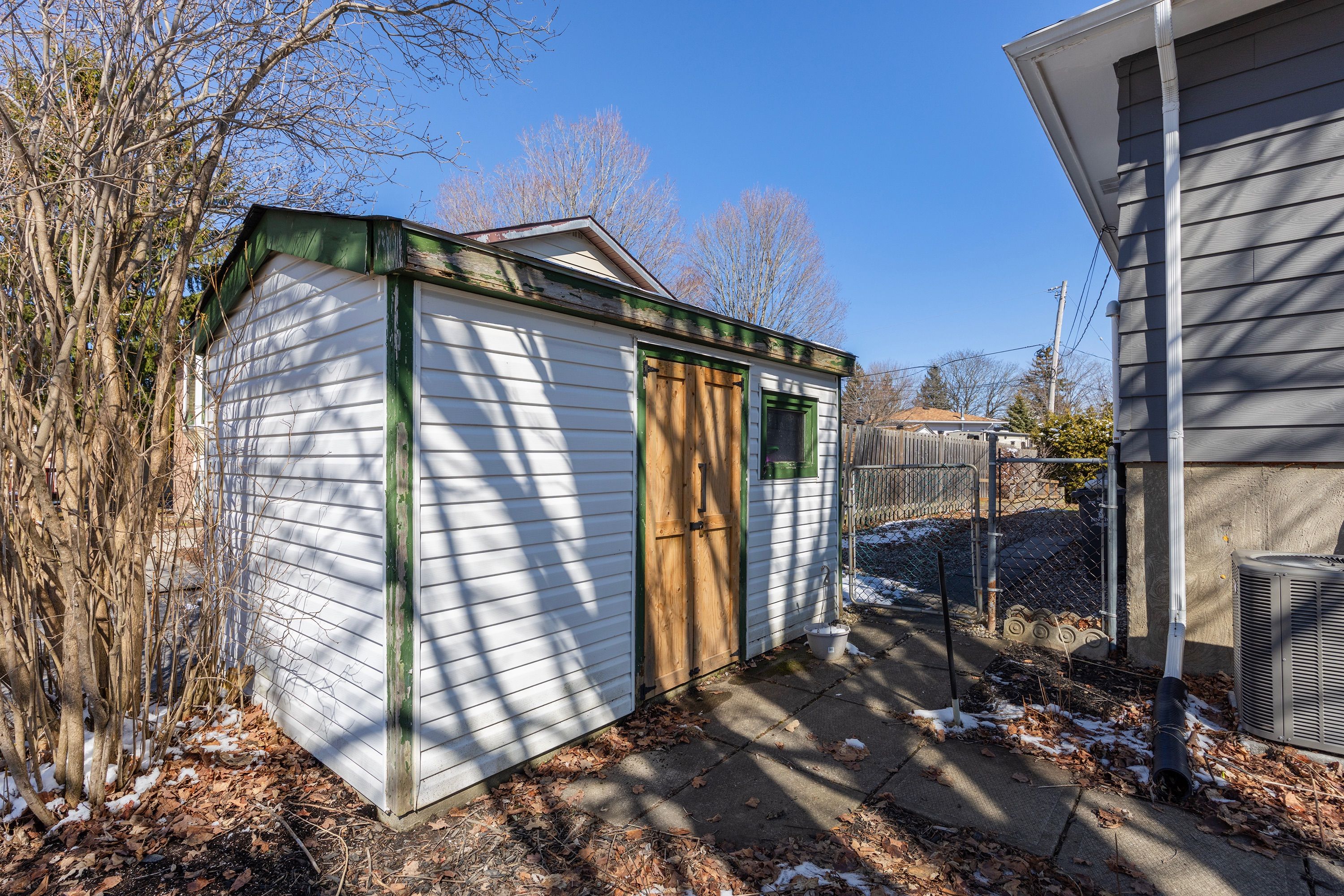 • Fenced yard with privacy, a garden shed, and nearby amenities.