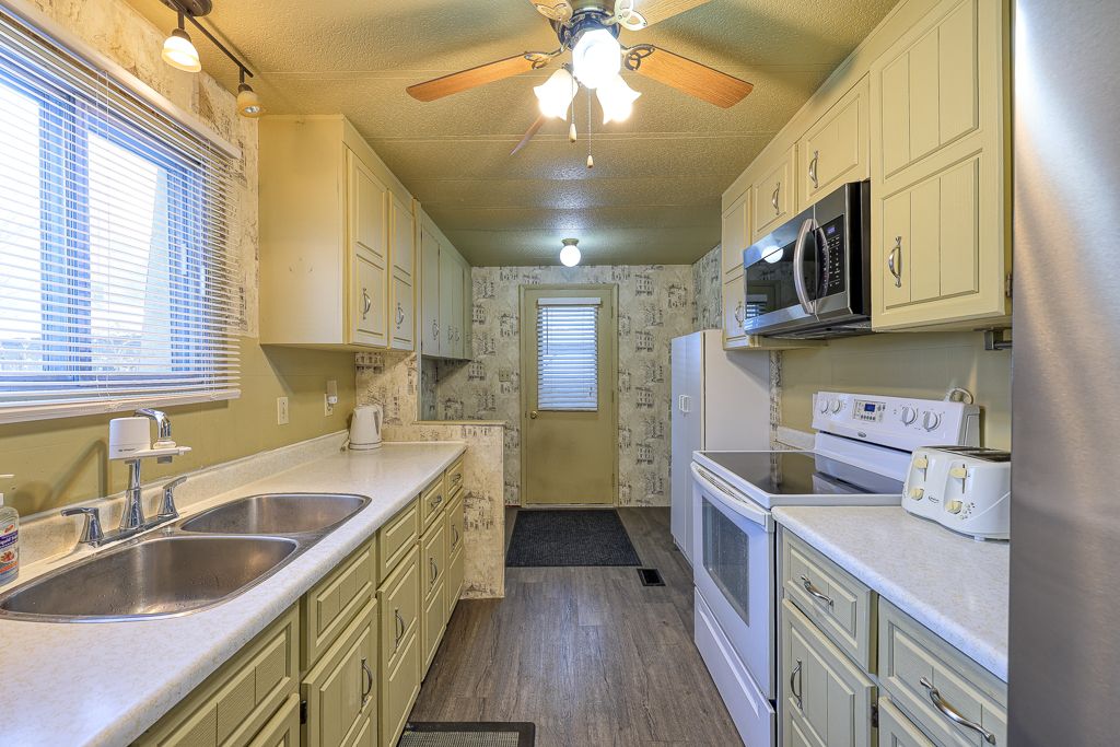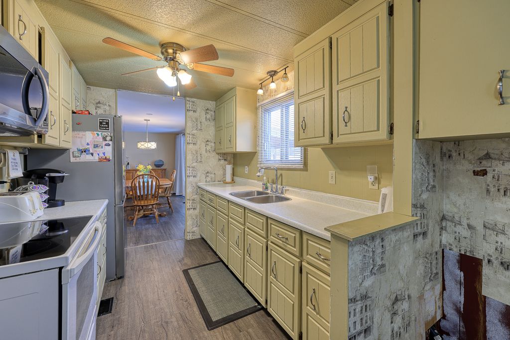 Welcome to the sought after friendly community of forest estates. This is one of the most affordable parks around, with low maintenance fees at $165/mth! This 2 bed, 2 bath house has ample space for relaxed and quiet living. Take yourself for a walk or bike ride on paved and lit streets, visit one of the 2 play grounds near by, play basketball on the court or baseball on the parks own diamond. This home has been very well cared for and is in impeccable condition. The home includes newer appliances, gas furnace(2019), 1 storage shed and a shop with power and lighting, as well as a generator to power the entire home if ever required. The property includes a large double wide asphalt driveway to park 8 cars, as well as a carport to protect some from the elements. Large covered rear deck ,to enjoy the quiet & private fully fenced backyard. With landscaping and a pond it gives the yard a tranquil feel. Small pond and mature gardens included. Inside you will find a large renovated living and dining room, that have all been drywalled, new vinyl flooring a massive new bay window and upgraded insulation. The primary bedroom has a 2pc ensuite with walk through closet and just steps away from the laundry closet. The beautiful updated main bathroom, has a stunning glass shower and an elegant new vanity. 1 ownership share to be transferred to buyer upon closing. Qualified buyers may be able secure financing.