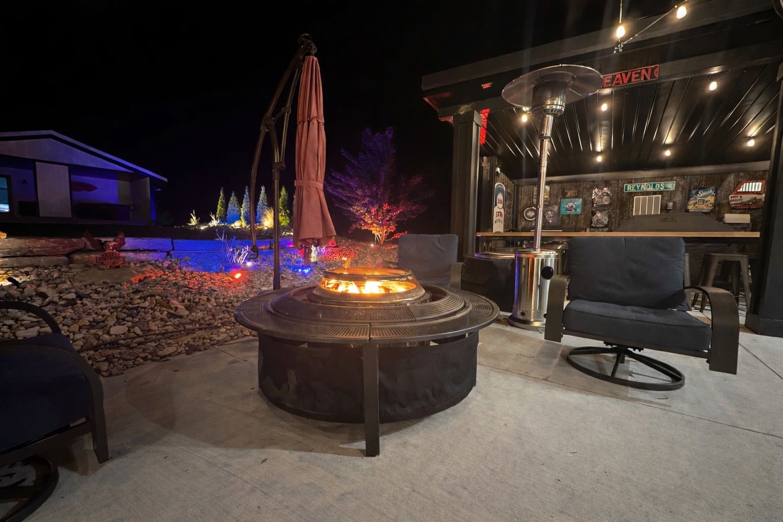 • Beautifully designed outdoor space with covered porch and fire trough.