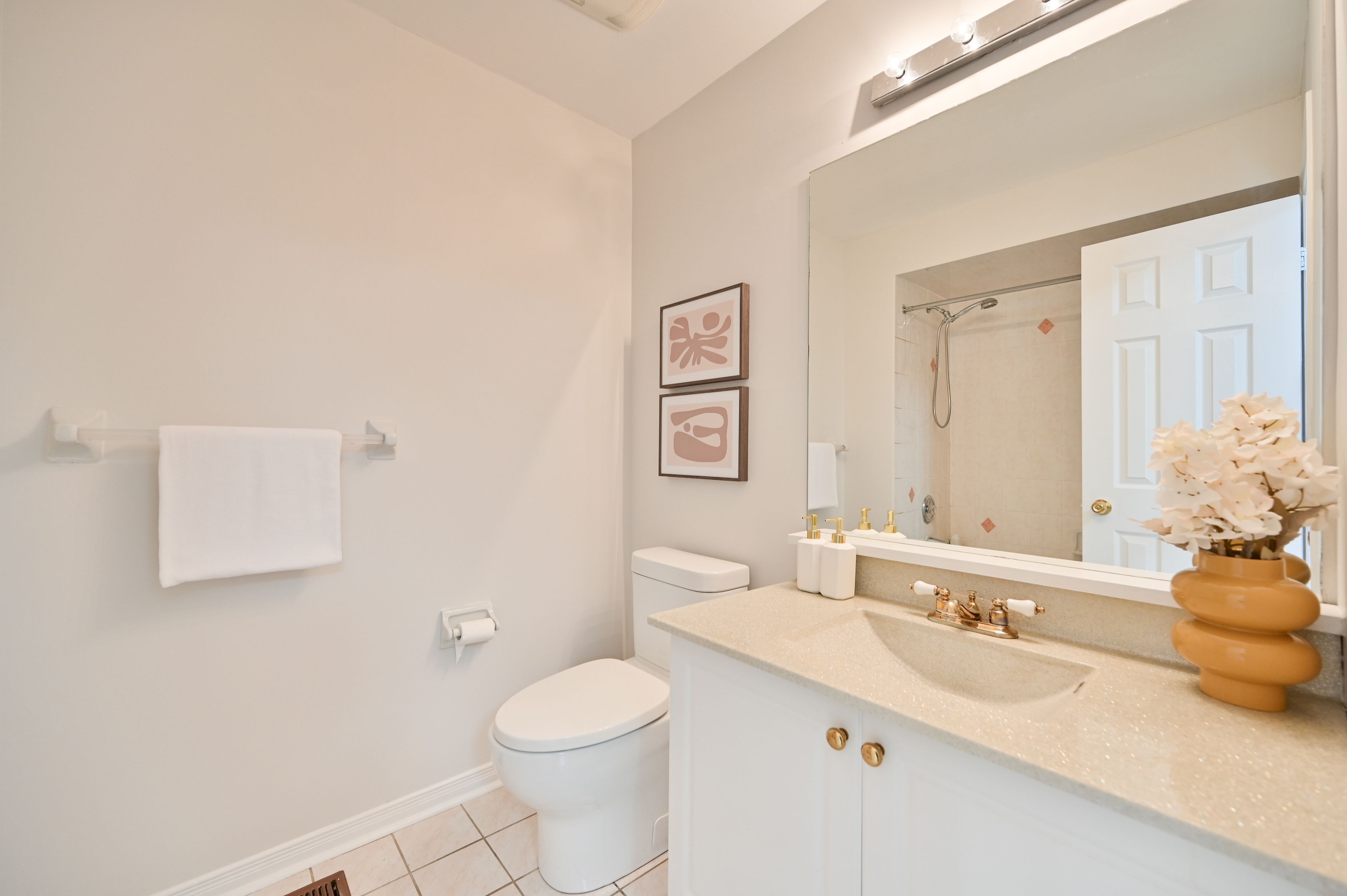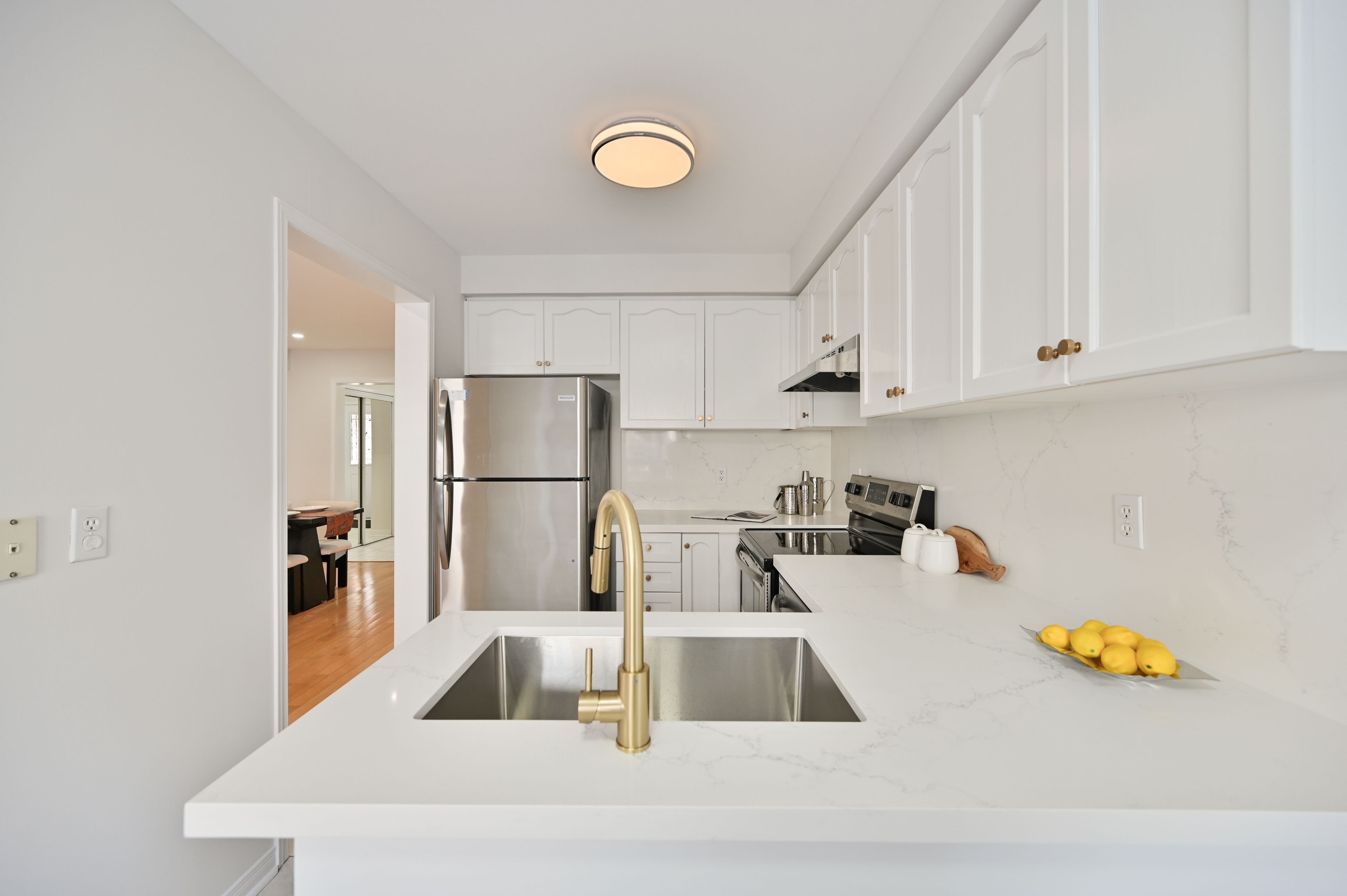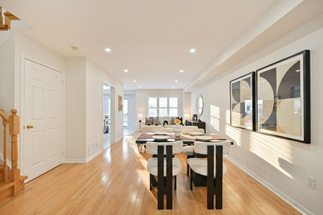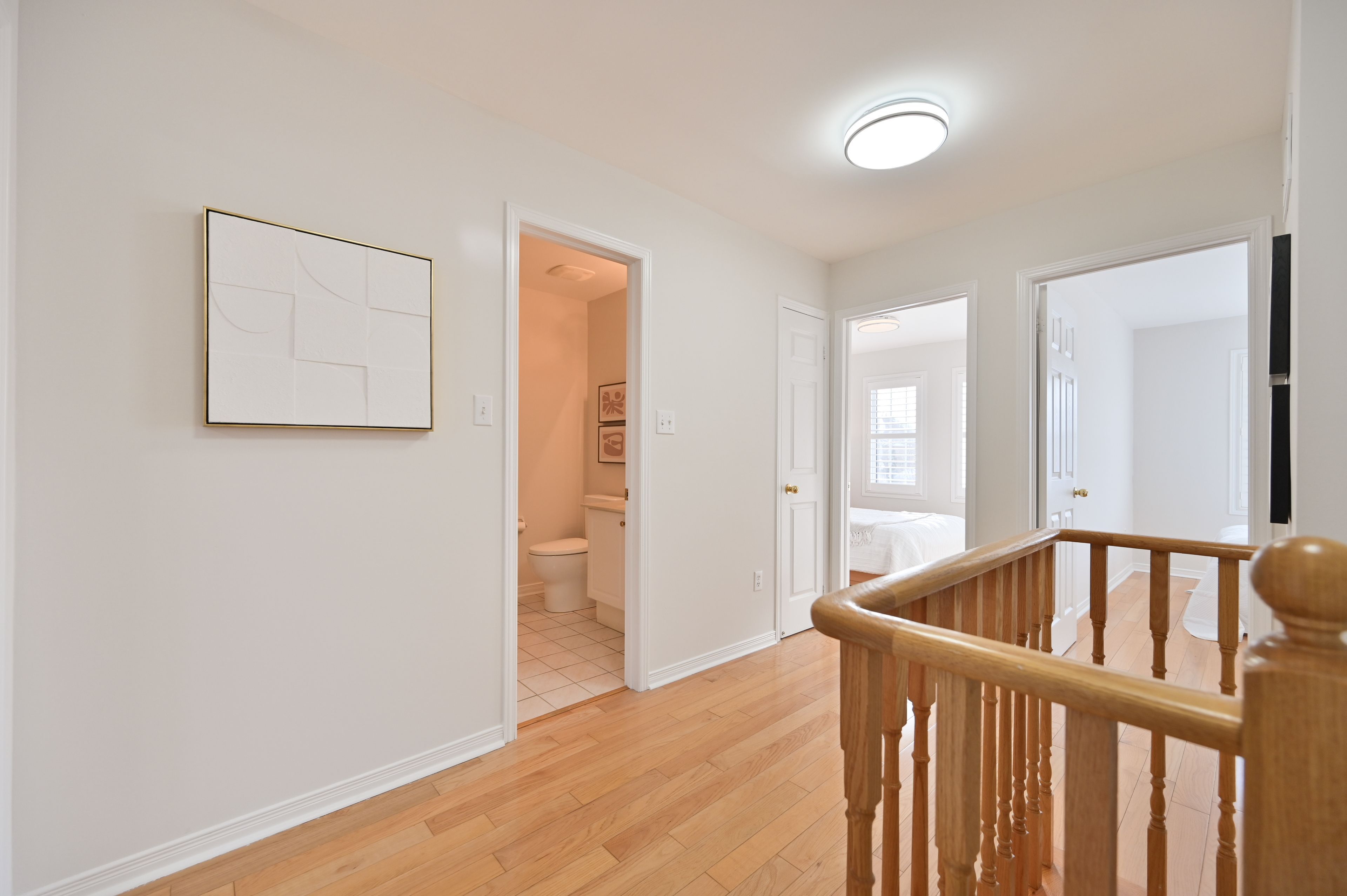 • Freshly painted interiors with smooth ceilings and hardwood flooring.