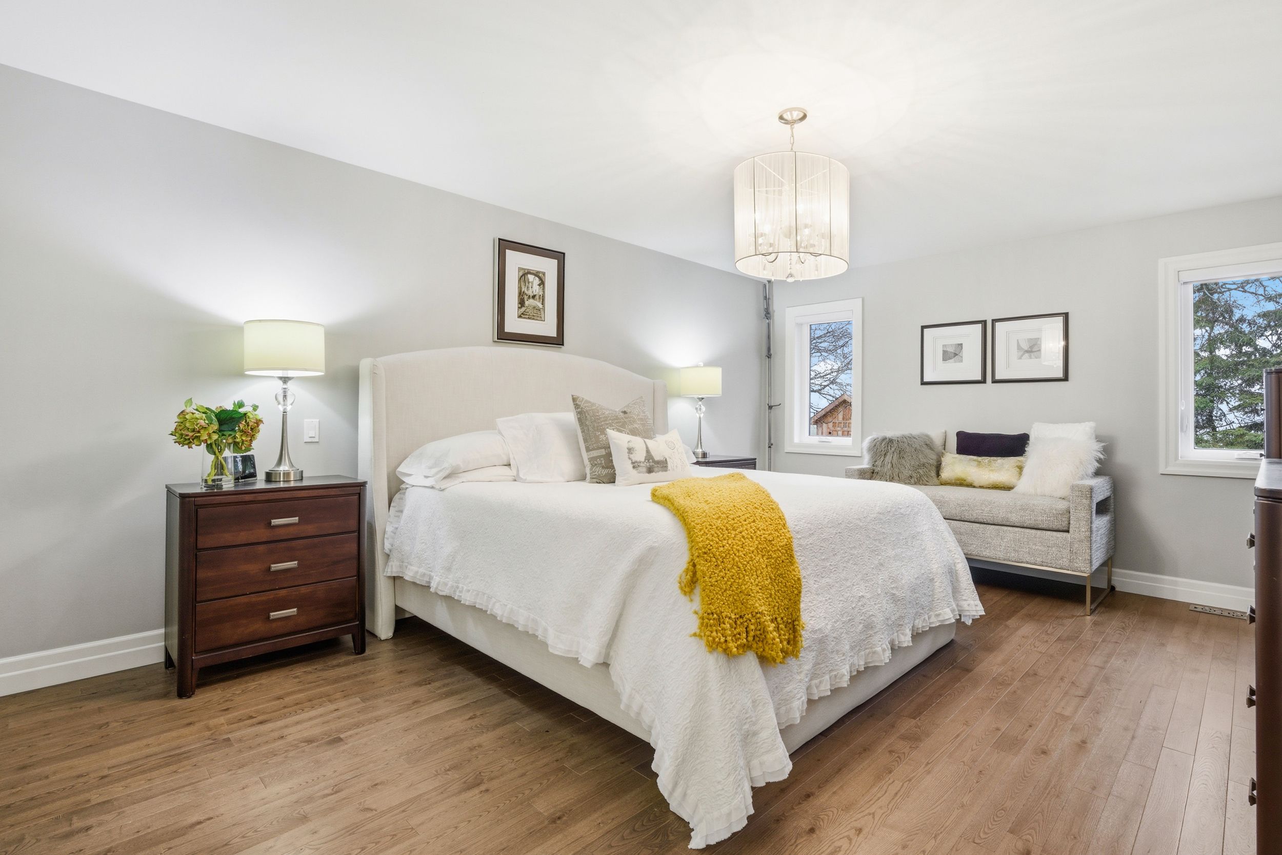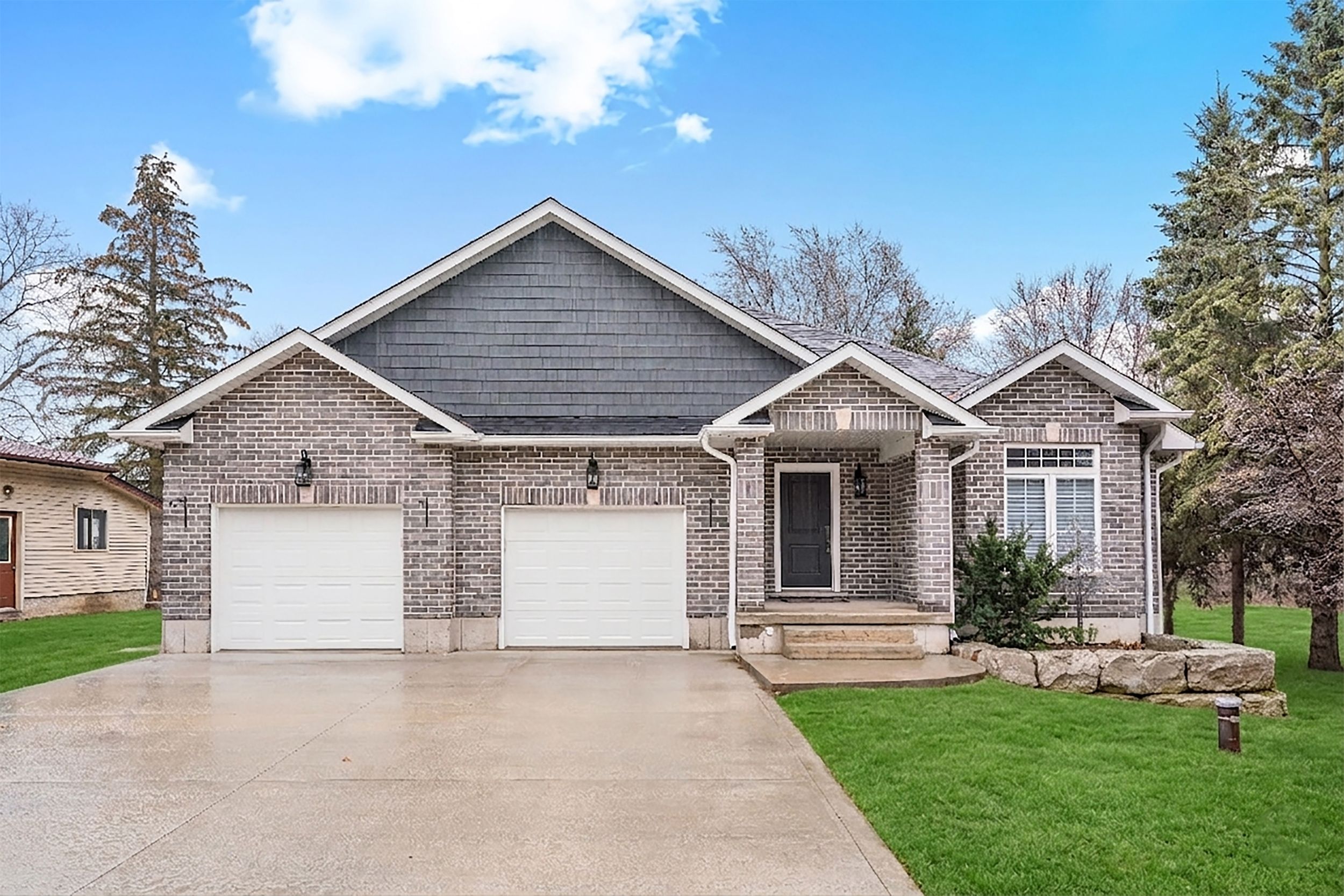 The owners custom-designed this spectacular 2,196-square-foot open concept bungalow on a large 80' x 200' lot, using top-quality materials throughout. The grand entrance shows the solid oak staircase with a wrought iron railing which leads to the basement. From the heated ceramic flooring in the ensuite bathroom to the hardwood and large ceramic tile flooring throughout, custom bamco kitchen cupboards and bathroom vanities with built-in bosch kitchen appliances, and quartz countertops throughout, with an expansive chef's kitchen overlooking the great room with a gas fireplace. The dining room with its sliding doors will invite you to walk out to the composite deck with a glass railing and ground-level access to a concrete patio. The principal bedroom boasts a large walk-in closet, large glass shower enclosure with a bench and a separate therapeutic bain ultra tub, giving a true spa atmosphere. The large main bathroom can even welcome your overnight guests in style. All closets have custom built-ins. The concrete driveway is 27' wide by 60' long, accommodating 6 vehicles. The garage is an oversized double with a back door leading to the backyard, as well as a walkdown to a framed basement with insulated walls, ready for your preferred design completion. Pride of ownership is evident in every inch of this meticulously maintained home. The lawn irrigation system will help with managing a fully sodded lot of this size, with large mature trees and shrubs, while maintaining the impressive curb appeal of this beautiful bungalow. A full list of upgrades is available upon request.