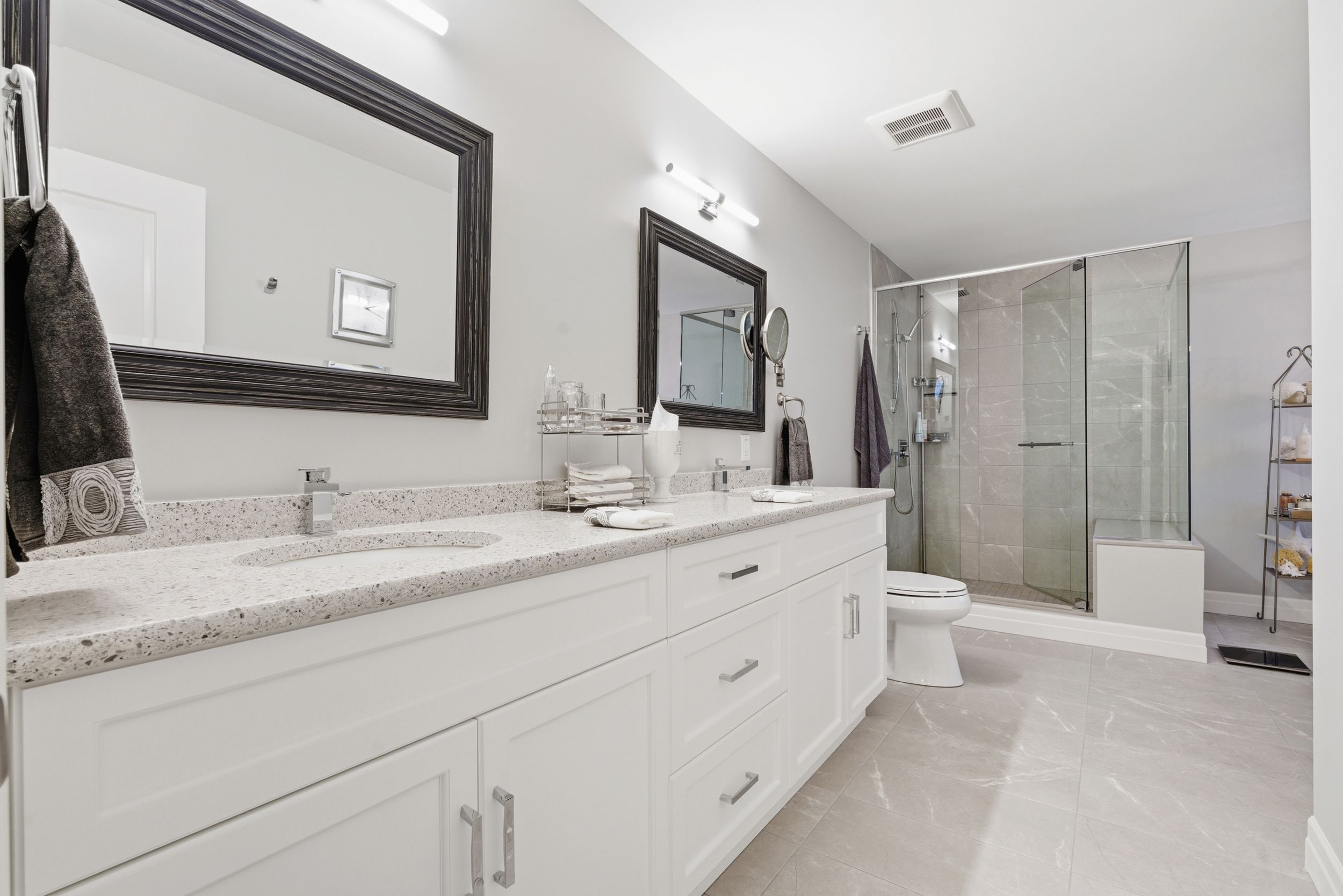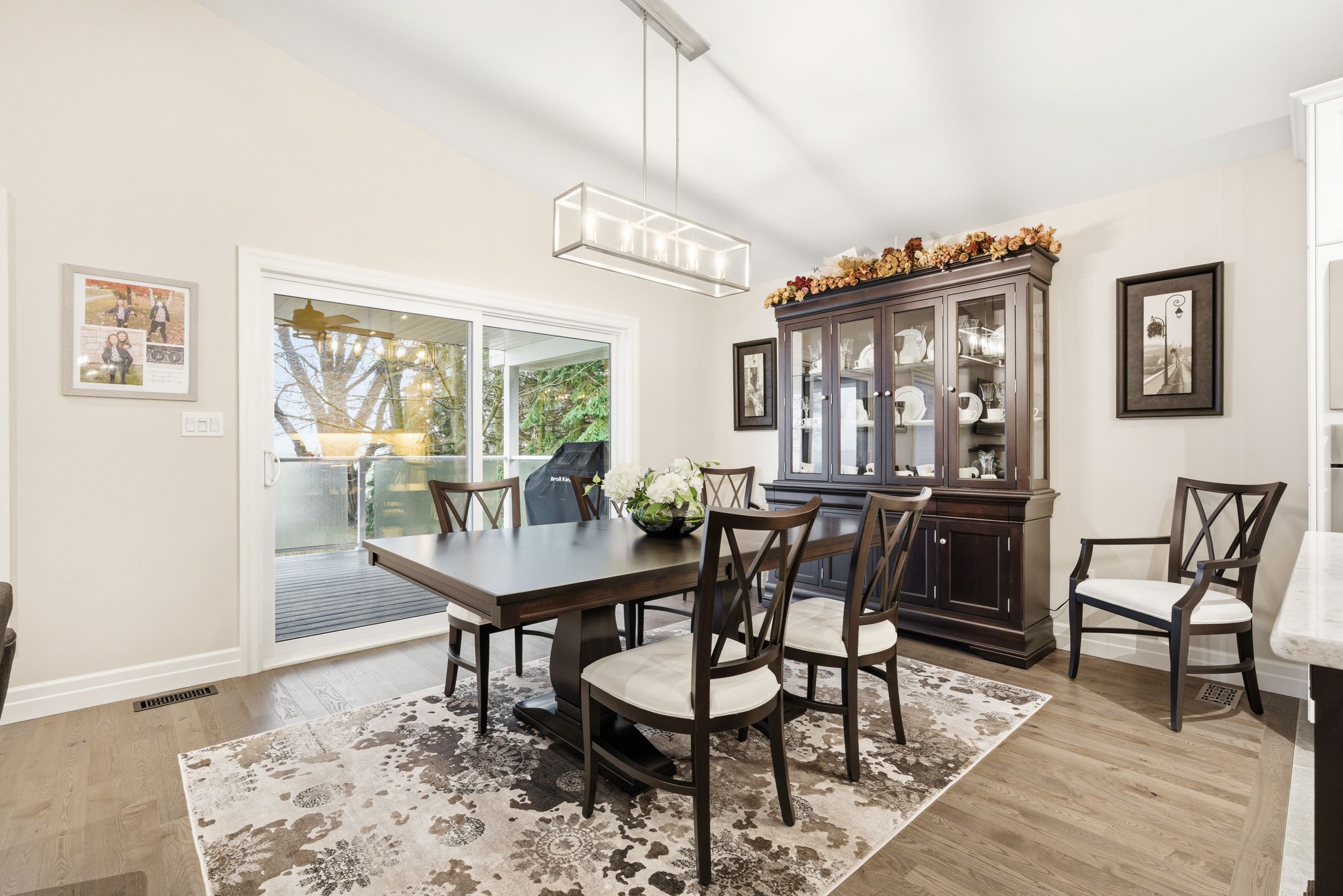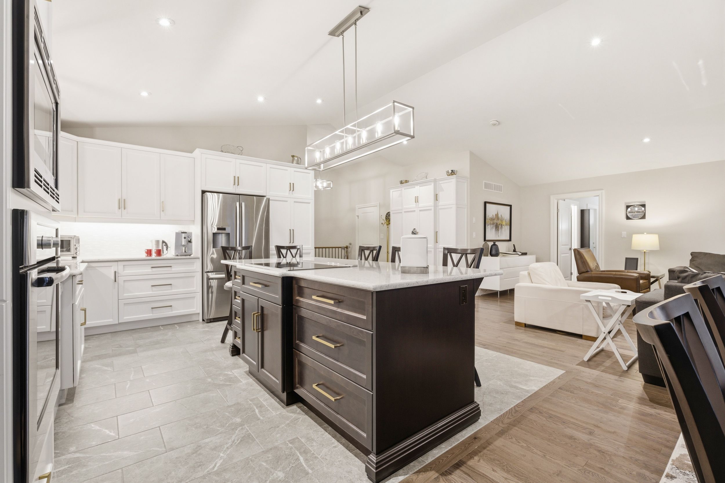 • Expansive chef's kitchen featuring built-in Bosch appliances and quartz countertops.