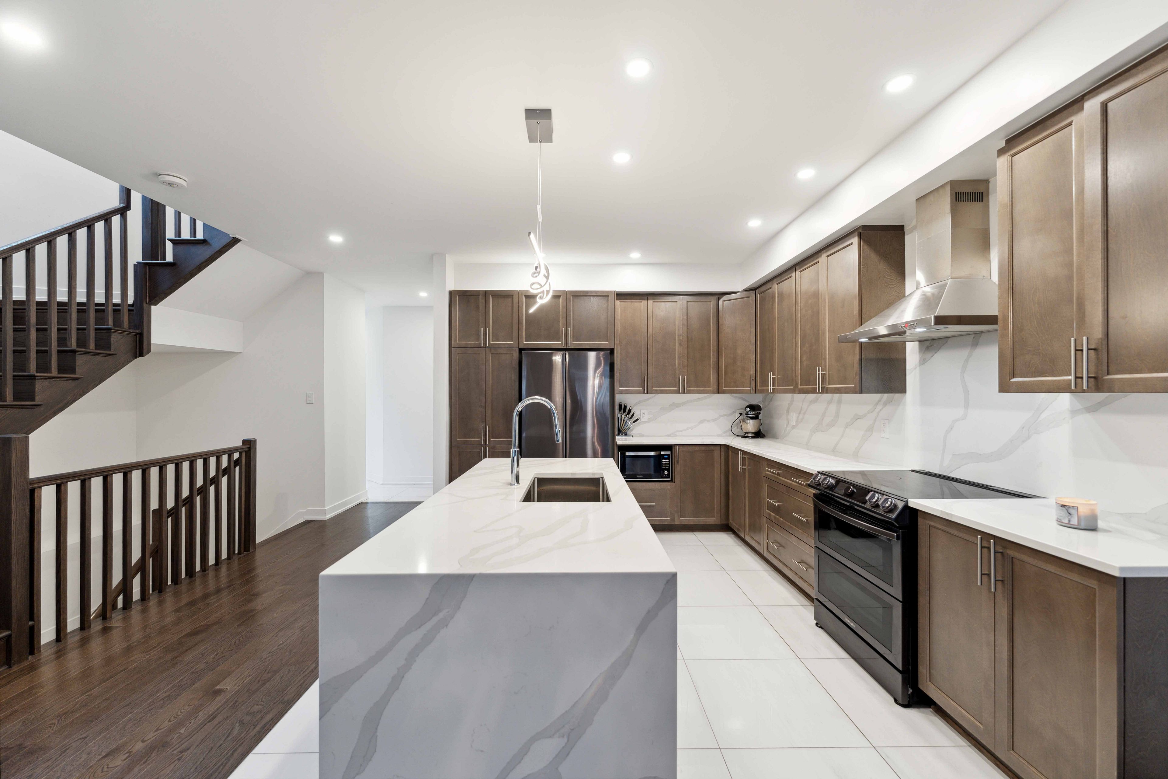 • Gourmet kitchen with high-end appliances and quartz finishes.