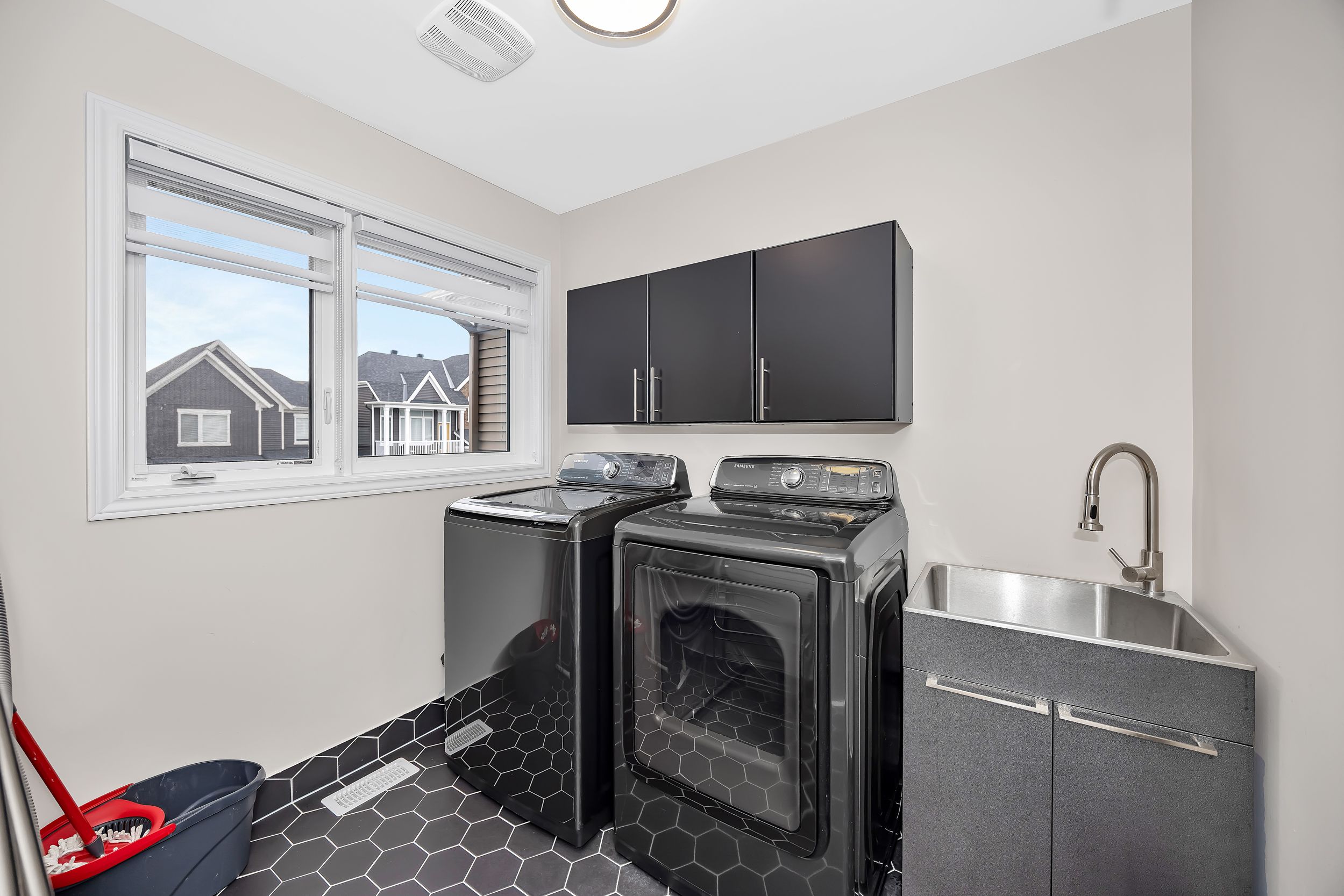 Welcome to this beautifully cared-for caivan home, situated on a premium 50-foot lot and built in 2021, offering the perfect blend of modern style and everyday family comfort. The bright, open-concept main level features an impressive chef-inspired kitchen complete with a gas range, dishwasher, and built-in microwave, flowing seamlessly into the spacious dining and living areas filled with natural light. A main-floor den provides the ideal space for a home office, study, or hybrid work setup. Upstairs, you'll find four generously sized bedrooms, including a stunning primary retreat with a walk-in closet and a luxurious five-piece ensuite, plus a second full bathroom for family convenience. The finished basement adds even more living space, including a third full bathroom and a versatile area that can easily be used as a fifth bedroom, home gym, or media room. Outside, enjoy over $60,000 in exterior upgrades, including front and rear interlock, a custom shed, and a fully fenced backyard, perfect for kids, pets, and entertaining. Located in a quiet, family-friendly neighbourhood, you're just a two-minute walk to a beautiful park and green space. Additional highlights include a double garage with opener, tankless water heater rental, and a true turnkey, move-in-ready experience.