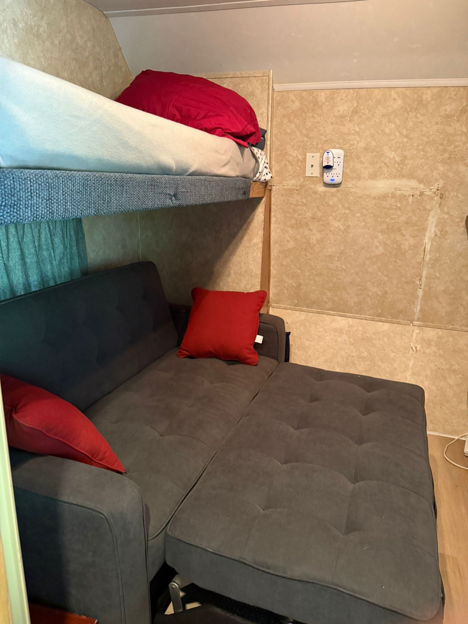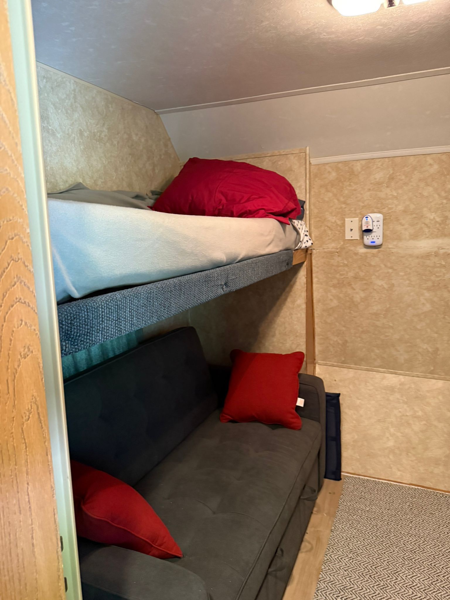• Renovated second bedroom with bunk and futon, perfect for guests.