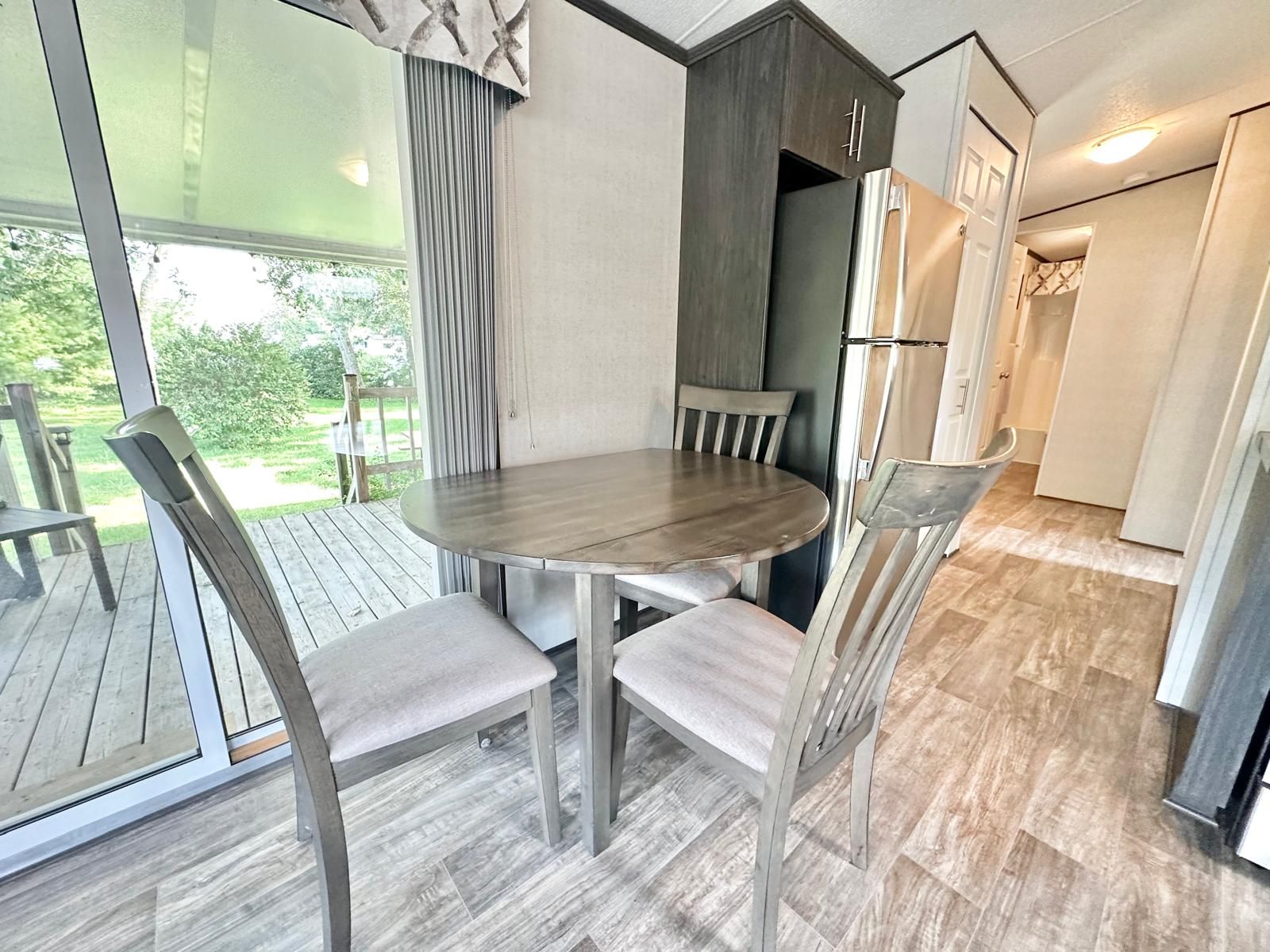 Looking for a perfect cottage alternative? Make this 2018 northlander park model with a hard awning yours for this summer's fun. Located in parkbridge's spring valley resort in mount forest on a very picturesque lot fronting onto greenwood lake. This non-motorized lake is great for fishing off your private dock, taking a paddleboat ride, or taking a kayak stroll around the lake! The lot is conveniently located next to the community's 2 pools (one family and one adult) and the park's rec hall, where all the fun happens. Spring valley offers many activities for both children and adults, making this park a great place for all ages. The trailer offers a beautiful lake view from your living room and a large covered deck area. This unit has 2 bedrooms and a full bathroom with a flushing toilet. Sit under the hard awning overlooking the lake or enjoy a campfire in the evenings lakeside. The 2026 season fees are $5635. 00 and include everything but the propane, hydro, and internet/cable (if you choose to install it). There is no additional charge for water, visitors to the resort, property taxes, etc. The season runs from the first friday in may to the third sunday in october. Please note there are no rentals allowed in the resort at all. Call for your viewing today and get into your cottage alternative recreational home away from home!