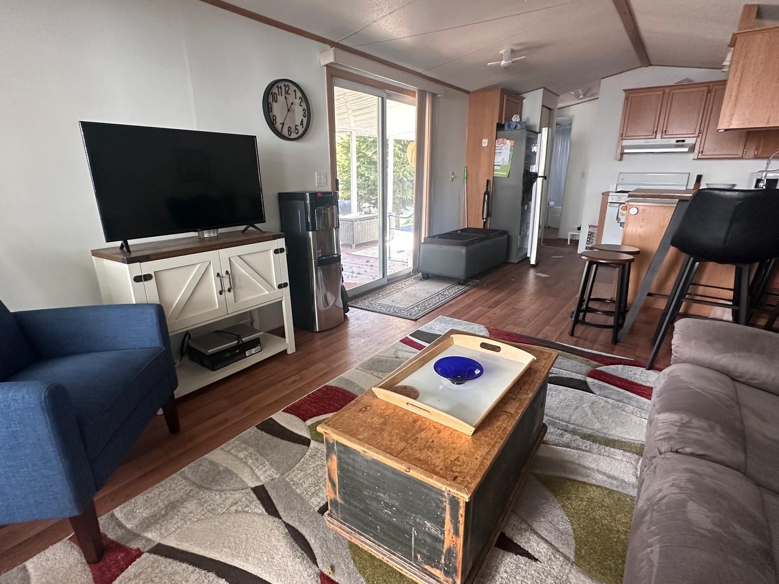 This seasonal 2007 northlander cottager escape presents a great opportunity for those in search of a vacation alternative. Nestled in parkbridge's spring valley resort, mount forest, this 12x37-foot gem boasts 1 bedroom, promising a cozy haven for summer retreats. The private lot on greenwood lake offers a serene waterfront experience perfect for lots of recreational activities. Picture yourself indulging in this summer experience by a campfire, by the firepit, or relaxing under the hard awning on your deck, soaking in the picturesque views. Greenwood lake, a non-motorized lake, invites fishing adventures from your private dock or paddleboat excursions. Take a stroll around the lake on a paddleboard & embrace the tranquility of the surroundings. Strategically positioned in proximity to the community's amenities, the property maintains a perfect balance between location & serenity. The two pools (1 family & 1 adult) are conveniently nearby, ensuring that the vibrancy of the parks and rec hall is within reach yet distant enough to preserve the peace & quiet of your retreat. Spring valley resort, hosting various activities for both children & adults, guarantees an inclusive & entertaining environment. From mini-putt & a beach area to horseshoes & special events, the resort caters to diverse interests, making it an ideal destination for individuals of all ages. Inside the unit, ample space and storage await, with a full kitchen, a generous living room, and a full-size washroom catering to your comfort needs. The covered deck provides a splendid vantage point overlooking greenwood lake, ensuring breathtaking views become a part of your everyday experience. Note: rentals are not permitted within the resort, preserving the exclusivity & privacy of this charming community. Don't miss the chance to own your summer sanctuary. Book your viewing for this waterfront retreat. The resort opens the first friday in may and closes the third sunday in october. 2026 fees are $5,095. 00
