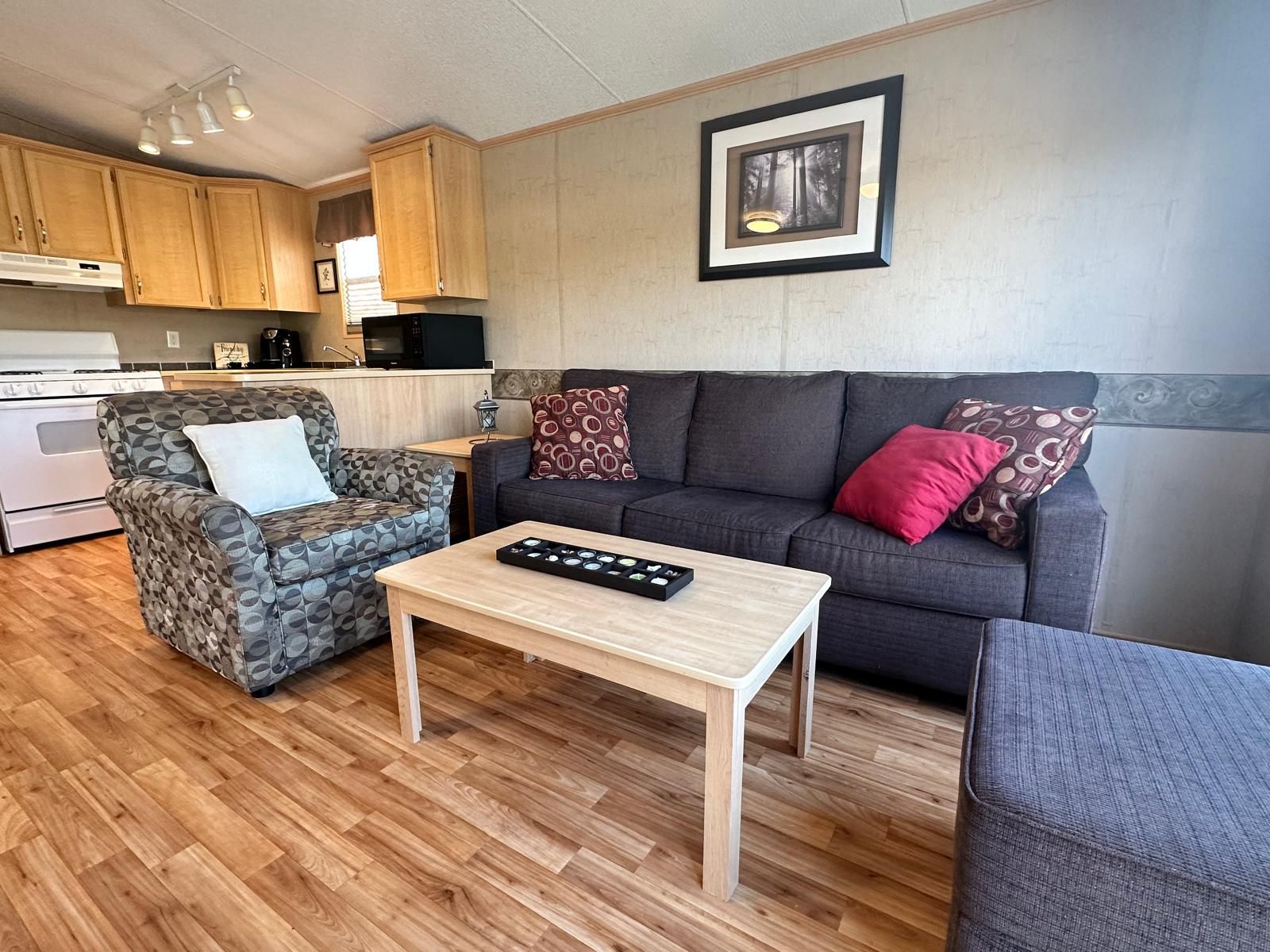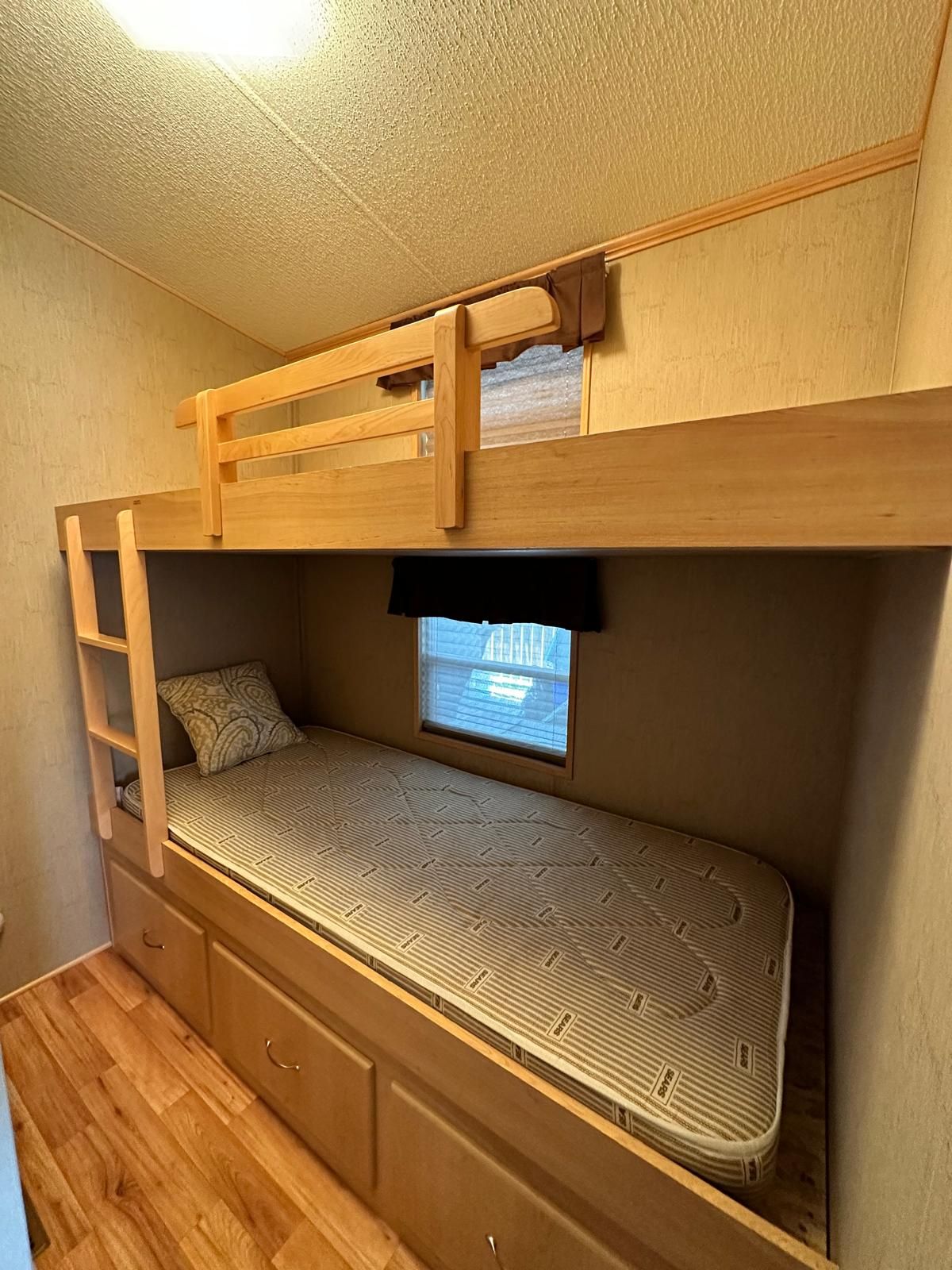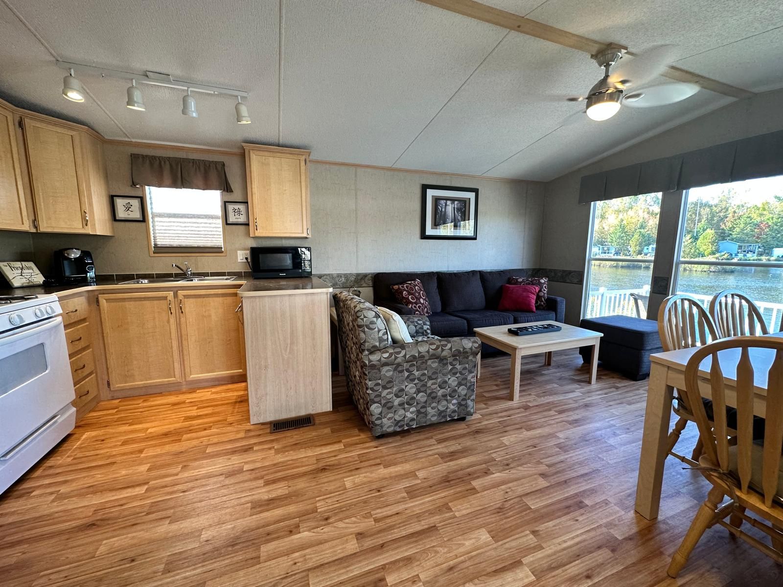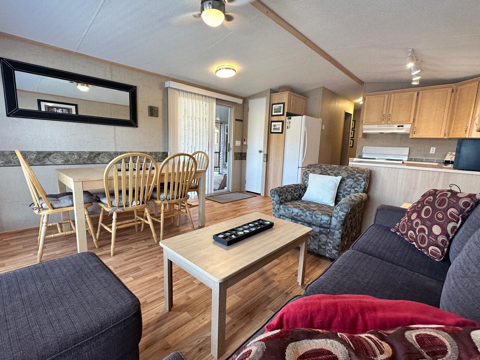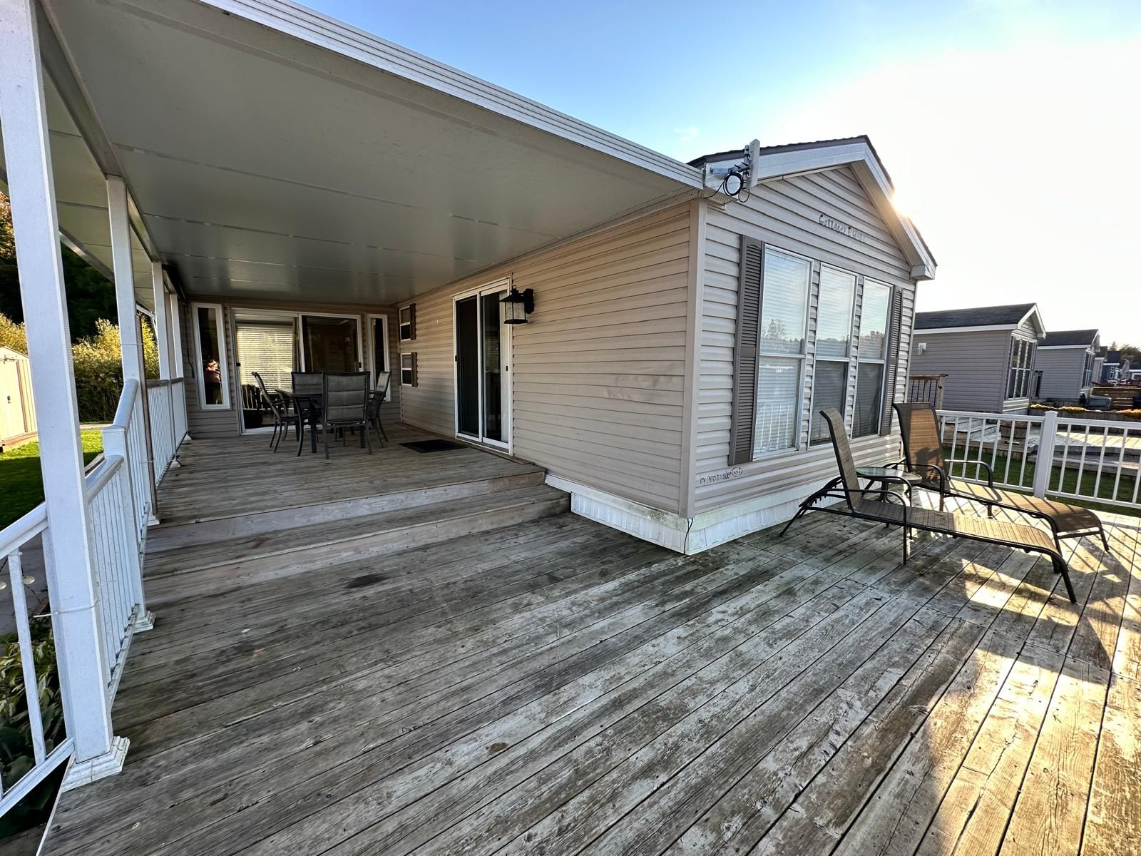This is your opportunity to own a beautiful cottage alternative! Located in parkbridge's spring valley resort, this well-maintained 3-bedroom 2008 northlander cottager (40' x 14') offers all the comforts of home in a peaceful waterfront setting. Inside, you'll find a bright and spacious layout featuring a well-equipped kitchen with a full-size fridge and stove, a comfortable living room overlooking tamarack lake, three bedrooms, and a full bathroom. The large primary bedroom features a king-size bed, creating a comfortable and relaxing retreat. The additional bedrooms are perfect for family and guests-one with double bunk beds and the other with single bunks, making it ideal for larger families. An additional sunroom provides extra living space with beautiful lake views, making it a perfect spot for relaxing, entertaining, or easily being used as a fourth bedroom or recreation room. Step outside to enjoy the large waterfront lot complete with your own wraparound deck and private dock. Spend your days paddle boating, kayaking, or paddle boarding around the lake; relaxing on a floatie; or sitting back on the dock casting a line for catch-and-release fishing. With no rear or front neighbors, this site offers added privacy and a wonderful setting to enjoy nature and watch local wildlife. Spring valley resort features fantastic amenities, including two pools (family and adult), a sandy beach and swimming lake, a rec hall with kids' clubs, mini putt, and a wide variety of activities for both children and adults, including a horseshoe club, pickleball, concerts in the park, etc. A perfect seasonal getaway for families looking to relax, explore, and create lasting summer memories. The season's fees are $5635. 00 and include everything but the hydro, propane, and internet, if you choose to install it. There are no additional fees for visitors, property taxes, water, etc.