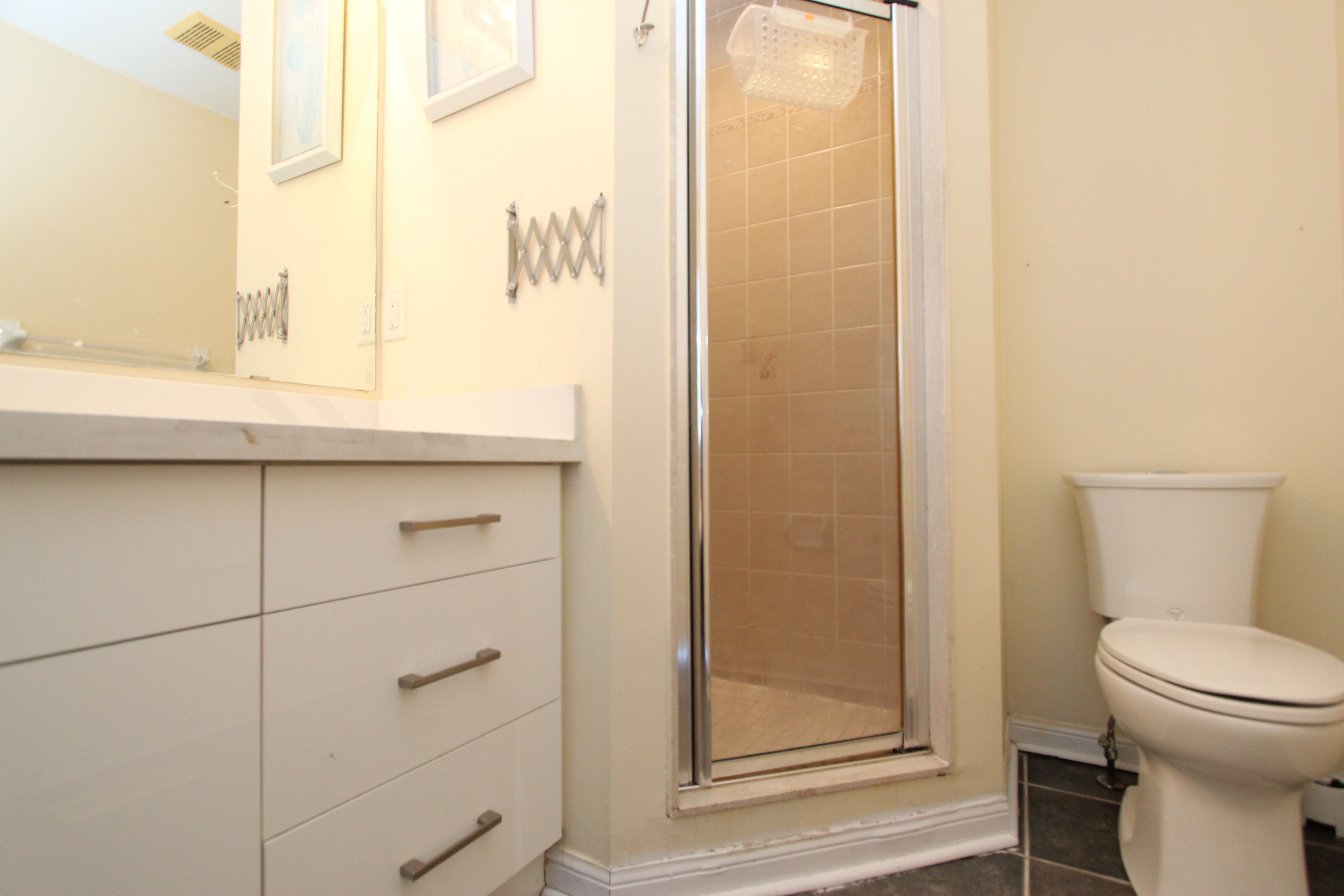 • Finished basement includes bedroom, bathroom, and recreation room.