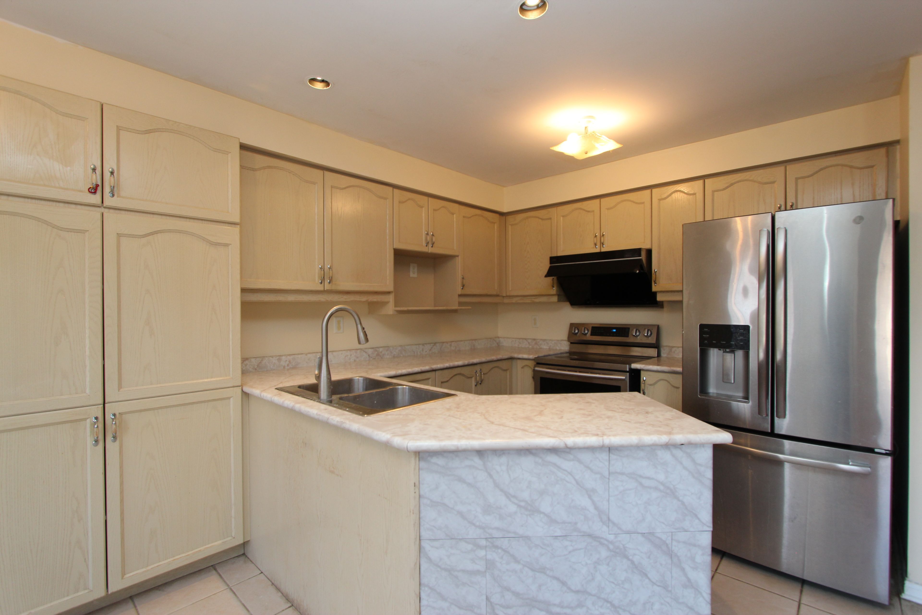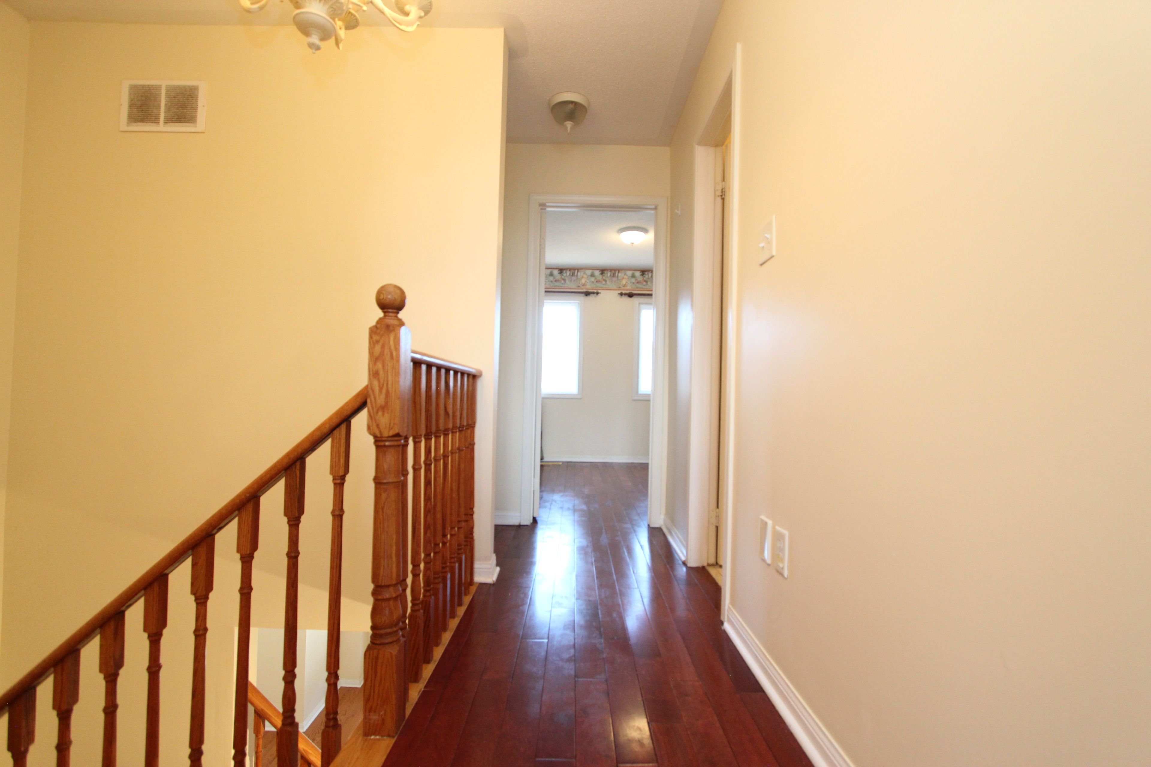 Double garage townhome, 9 feet ceiling, hardwood floor through-out, open concept, bright living room, kitchen with breakfast area, french doors walk out backyard, master bedroom with en-suite washroom, finished basement w/bedroom/bathroom/rec room, close to parks, playgrounds, ponds, shopping plaza, public transit, high ranking school zone, walk to bur oak secondary school.
