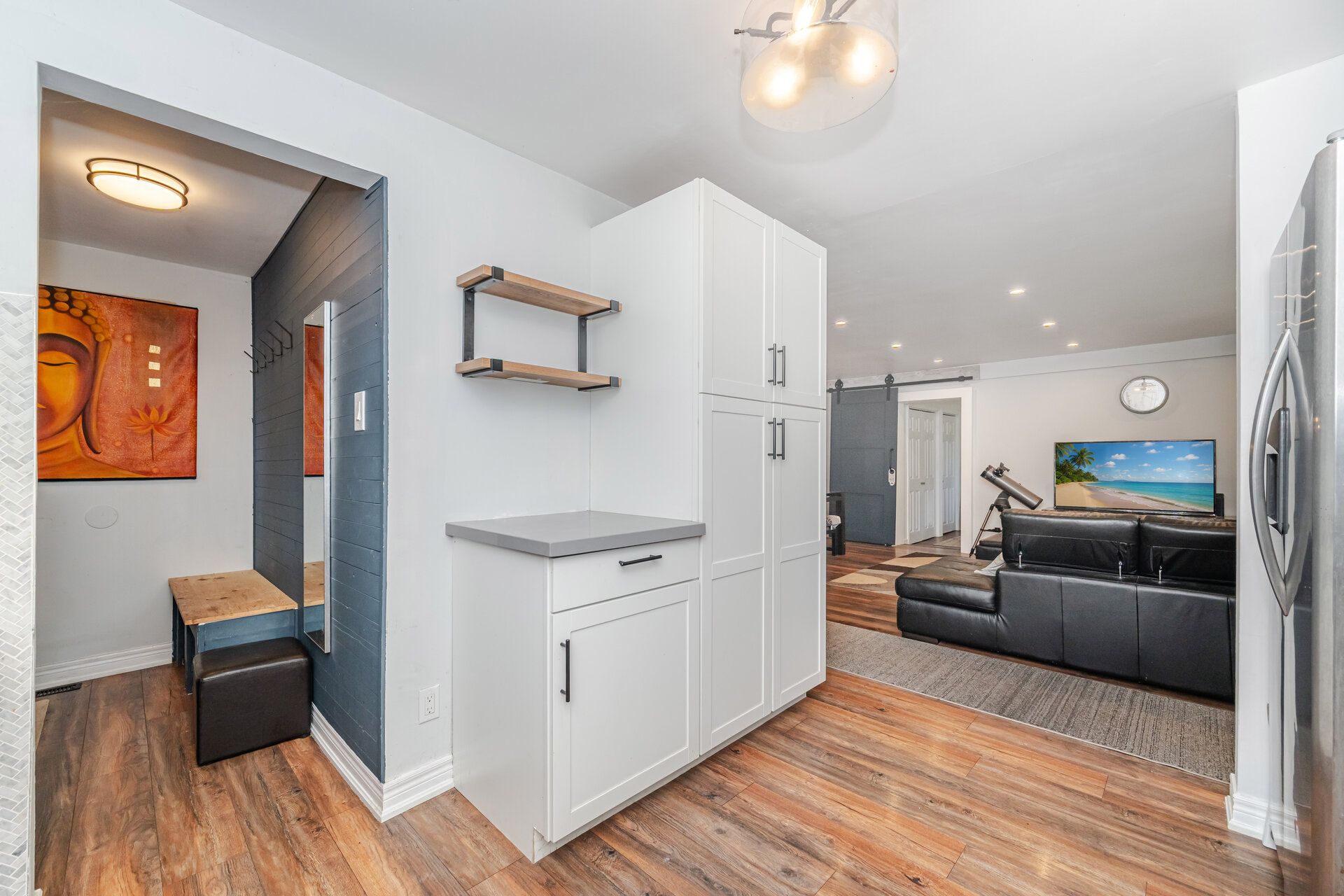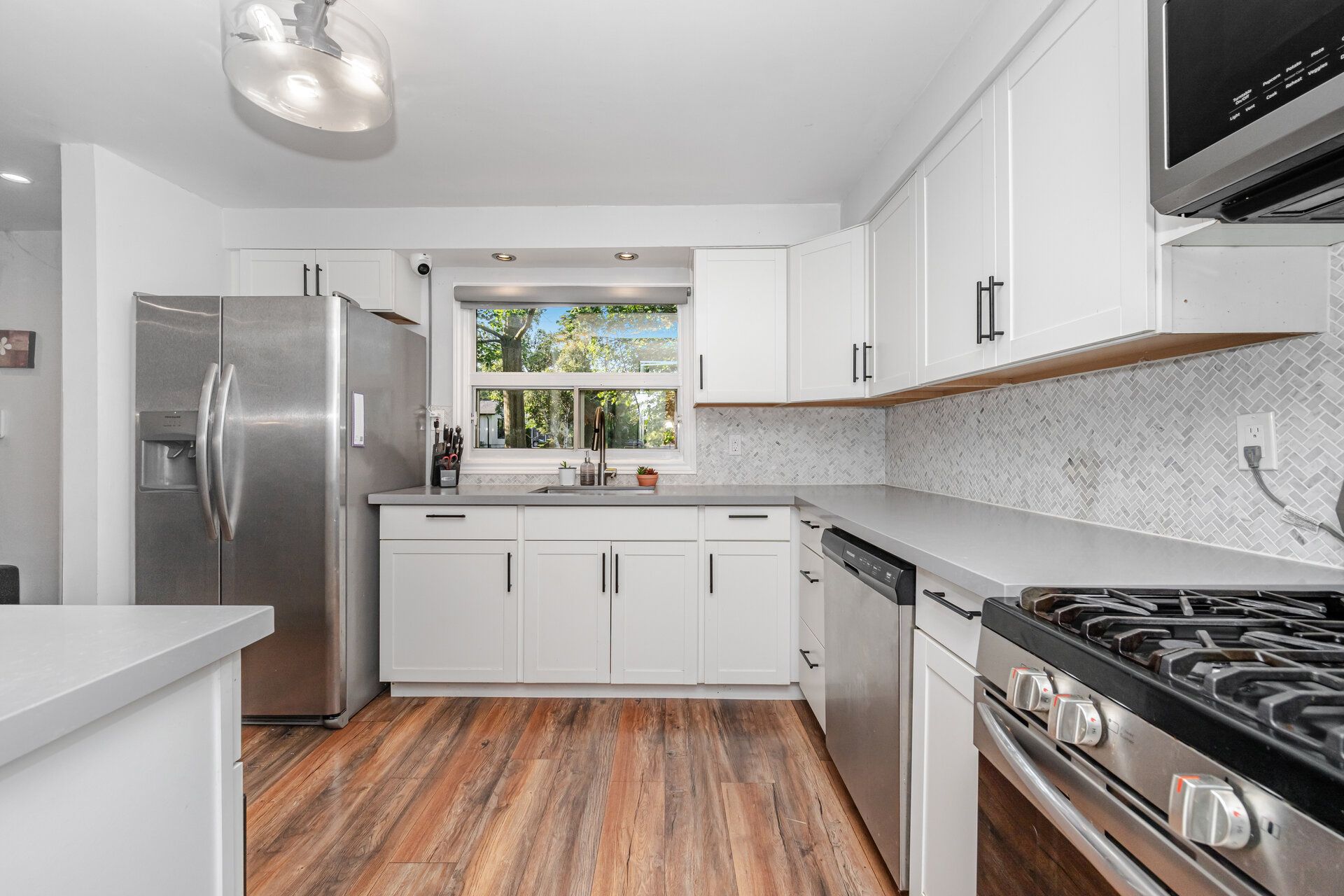 • Modern kitchen with stainless steel appliances and new fixtures.
