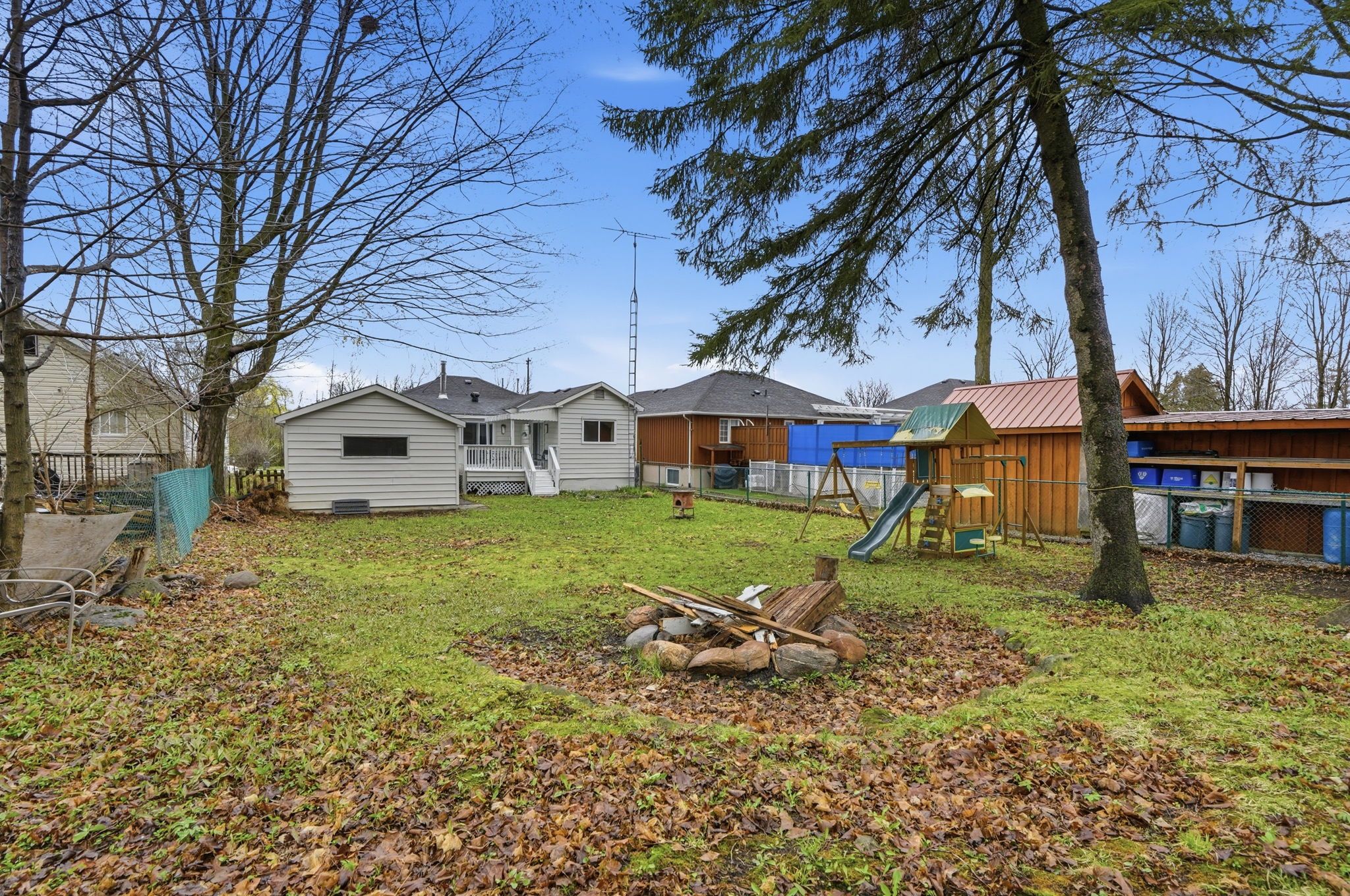 Welcome to your perfect blend of comfort, charm and location in the heart of innisfil! This beautifully renovated 1,243sq ft bungalow is ideally situated just steps from innisfil beach and within walking distance to downtown amenities- offering the ultimate lifestyle of convenience and lakeside living. Featuring, 3 spacious bedrooms and 2 updated bathrooms, this carpet-free home showcases potlights and modern finishes throughout while maintaining a warm and inviting feel. The spacious living room is anchored by a cozy wood-burning fireplace-perfect for relaxing evenings. The functional layout includes a stylish kitchen with walkouts to a covered deck from both the kitchen and primary bedroom, seamlessly blending indoor and outdoor living. Step outside to your private backyard retreat, surrounded by mature trees-ideal for entertaining, relaxing, or enjoying nature in peace. Additional highlights include a large driveway with ample parking and a detached 1-car garage. Whether you're looking for a year-round residence or a weekend escape, this move-in-ready home offers the best of innisfil living- close to the beach, shops, and everything you need. *furnace- 2025, ac- 2025, hwt- 2020, windows & roof- 2018*