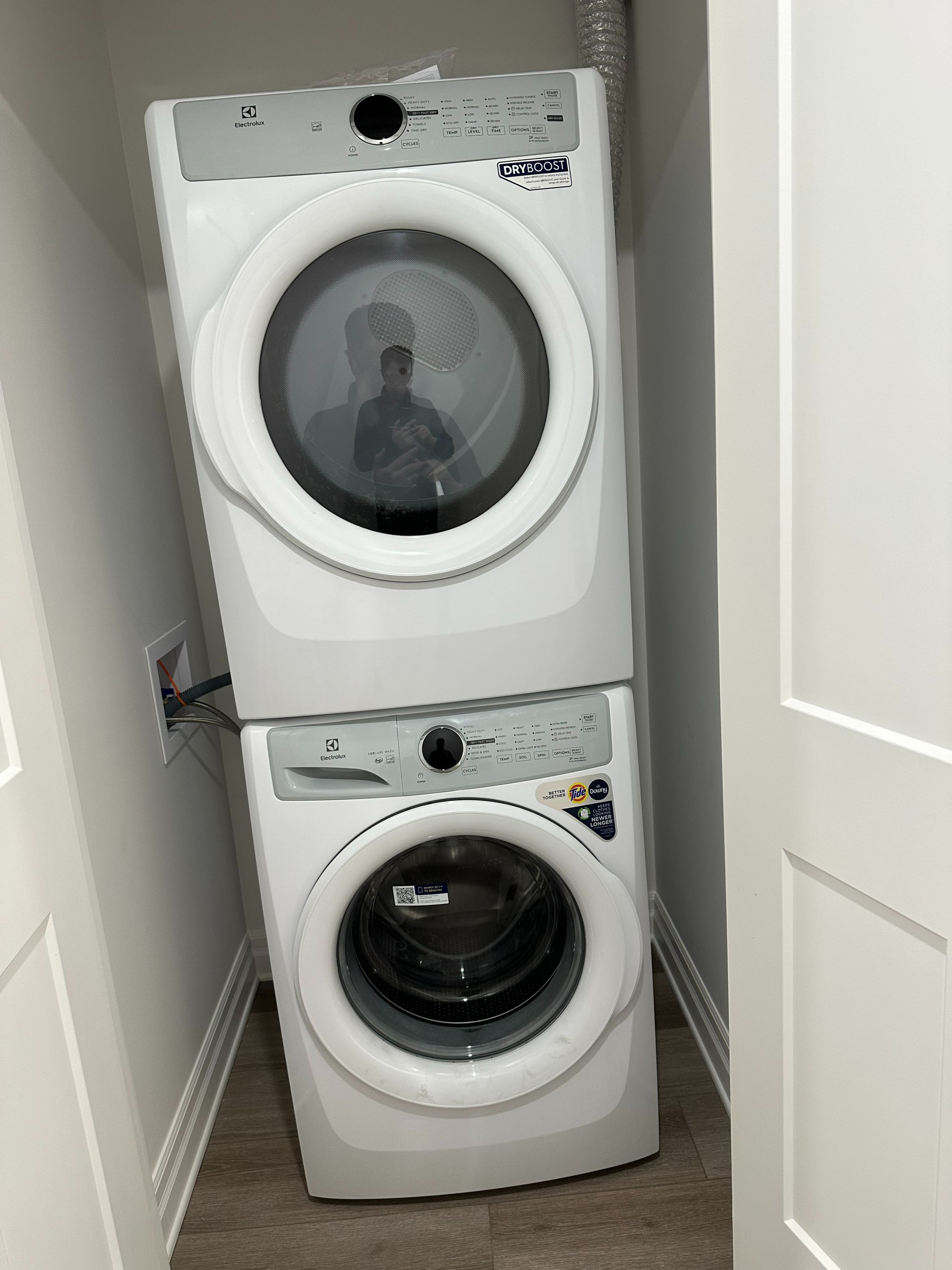 Beautiful 2-bedroom, 1-bath second floor apartment available for rent. This new-built unit features modern finishes, an open-concept kitchen, with a large center island and in-unit washer & dryer. The unit offers a private entrance. Conveniently located close to schools, amenities, shopping center, qew - ideal for a small family. This is an amazing must see unit.