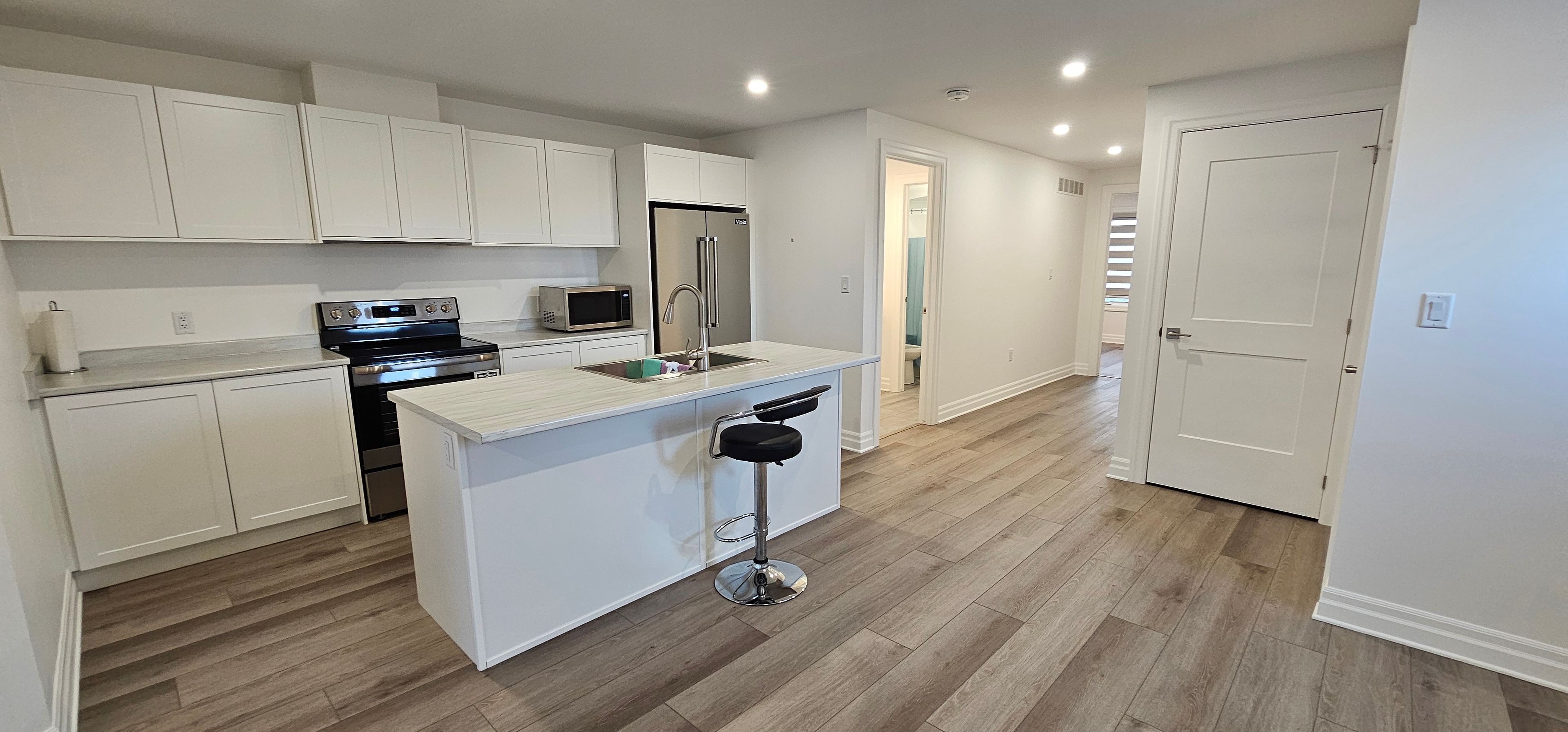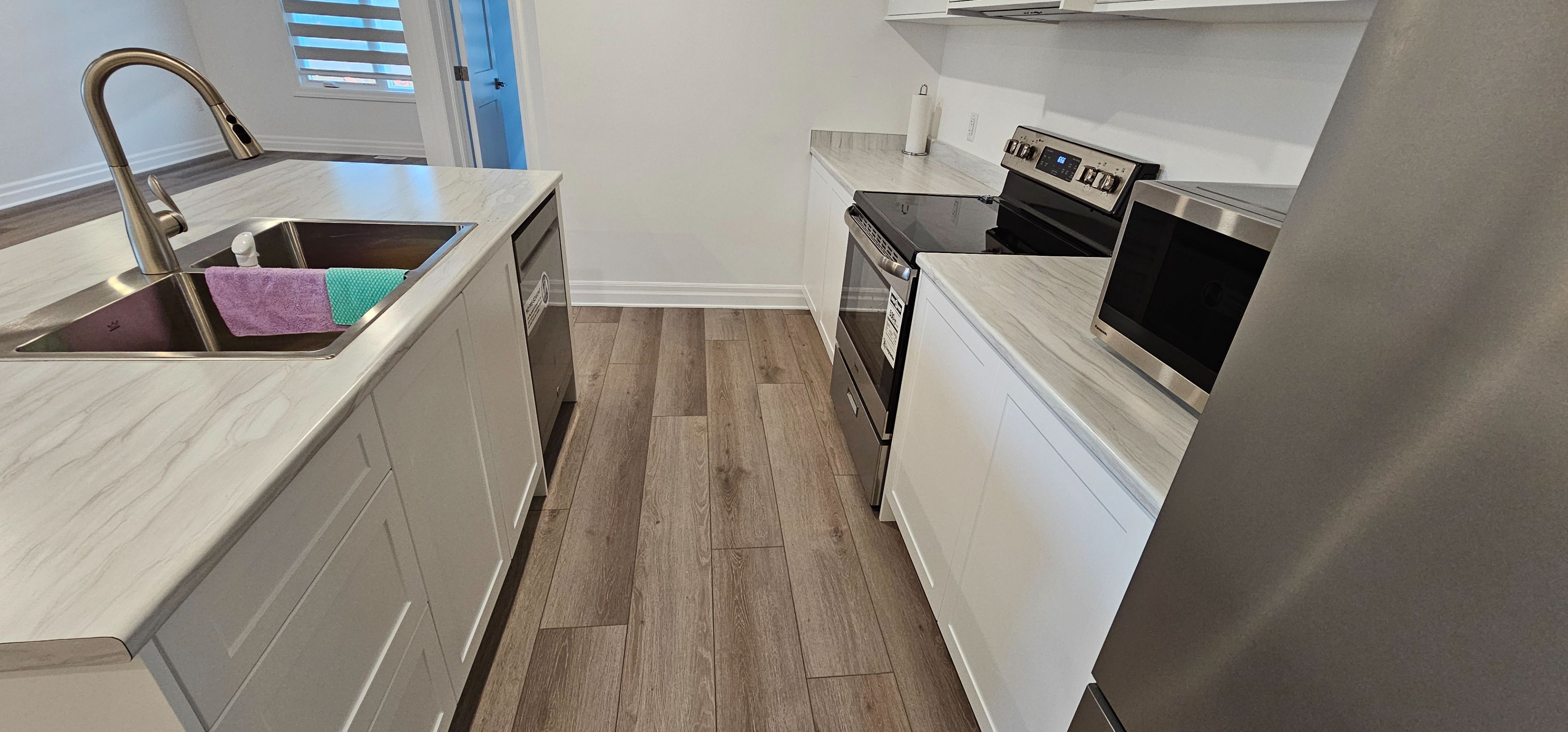 • Modern kitchen featuring stainless steel appliances and sleek finishes.
